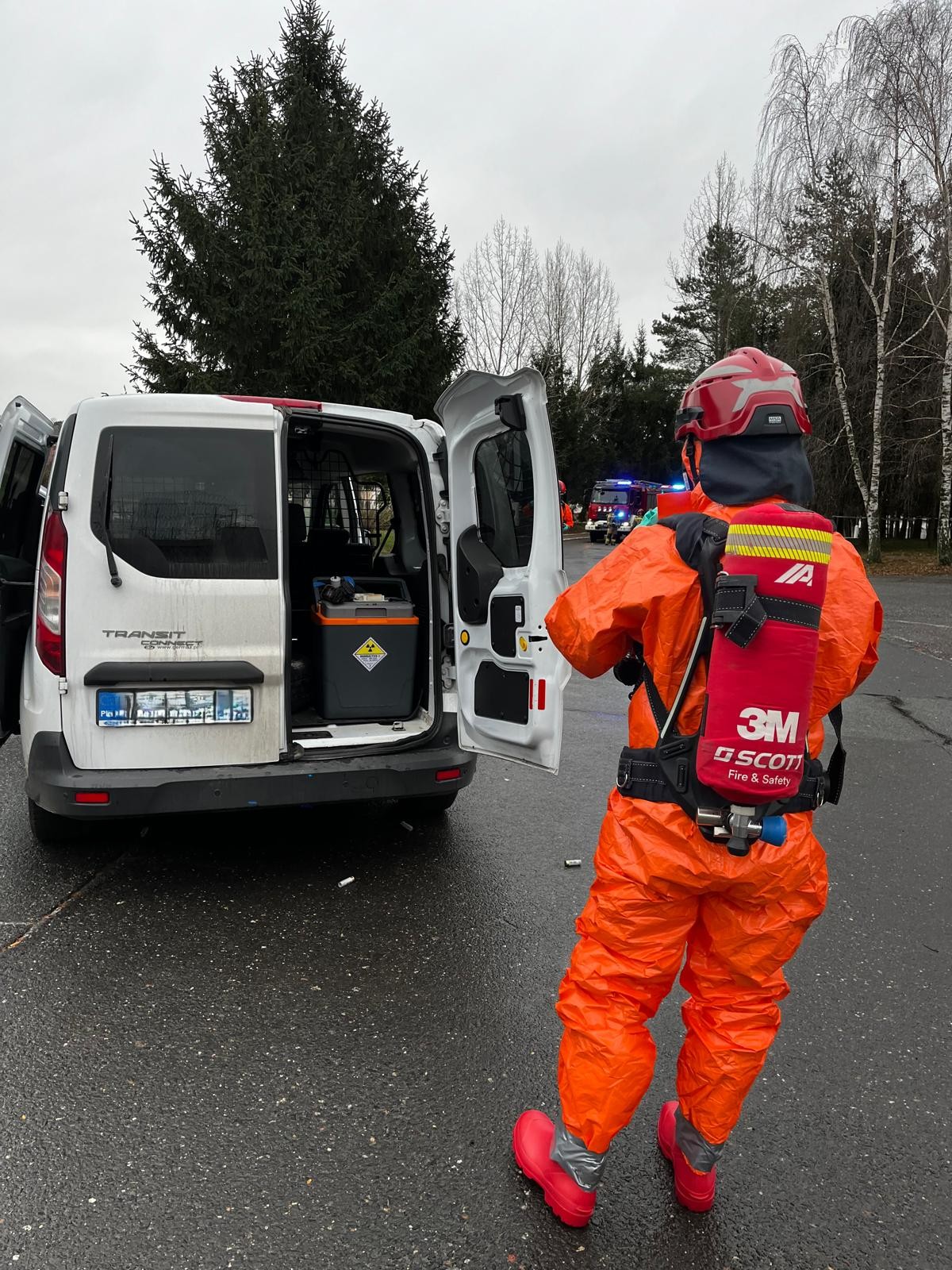 Jeden z epizodów ćwiczeń dotyczył przesyłki promieniotwórczej w samochodzie. Działania strażaków z Jednostki Ratowniczo-Gaśniczej w Strzelinie polegały na wykonaniu pomiarów dozymetrycznych, wyznaczeniu strefy gorącej oraz przeszukaniu miejsca zdarzenia pod kątem obecności osób poszkodowanych.