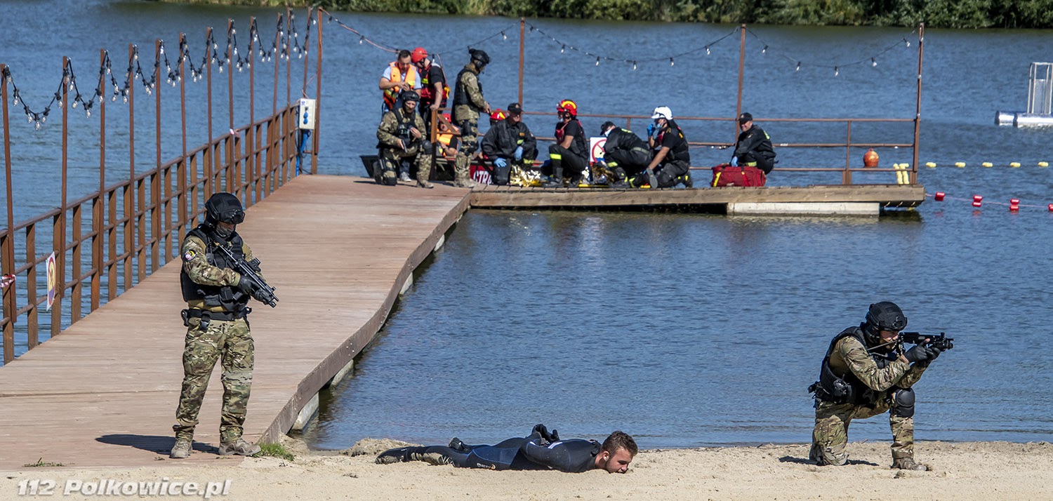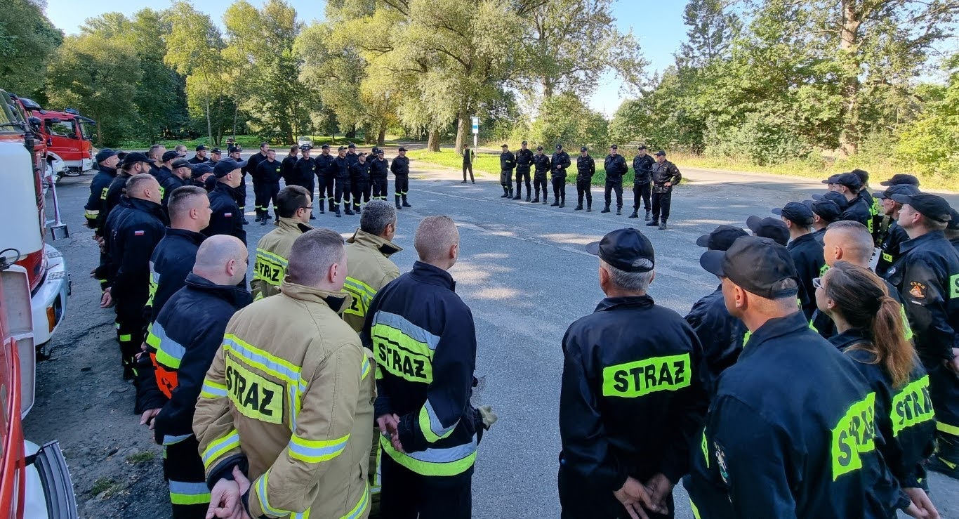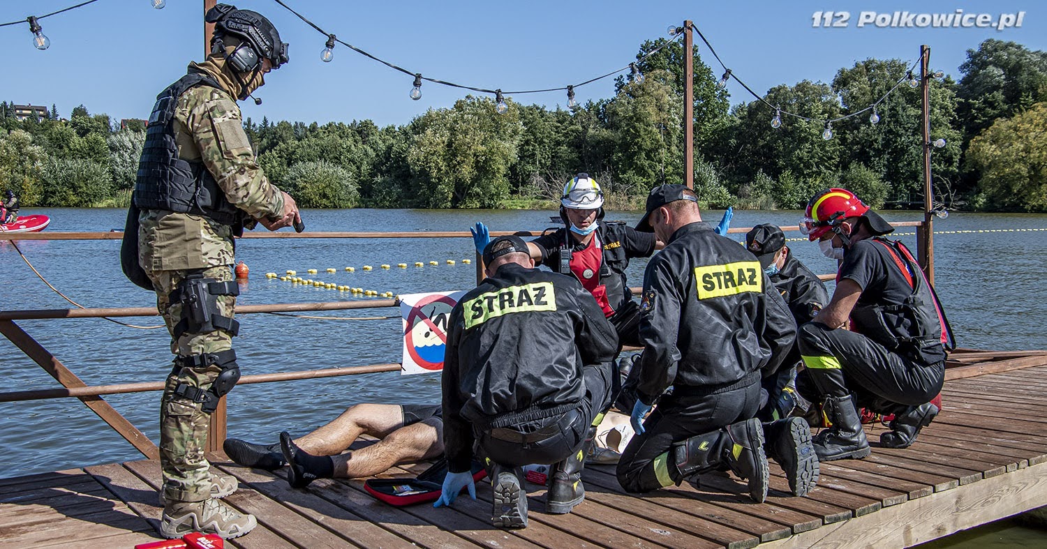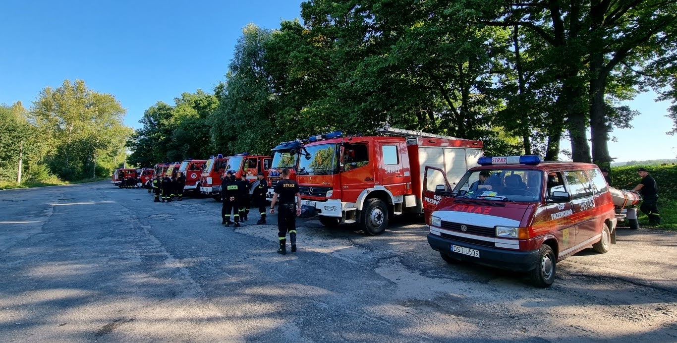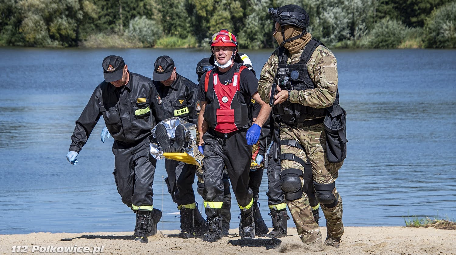 10 września bieżącego roku o godzinie 10:00 na terenie zbiornika wodnego Biały Kościół , zgodnie z Rozkazem nr 6 Komendanta Powiatowego Państwowej Straży Pożarnej w Strzelinie, rozpoczęły się powiatowe ćwiczenia pod kryptonimem „WIELKA WODA 2021”. W ćwiczeniach, których celem głównym było między innymi praktyczne sprawdzenie założeń i zapisów Powiatowego Planu Ratowniczego w warunkach prowadzenia działań przeciwpowodziowych na zbiorniku wodnym, udział wzięli strażacy jednostek ochrony przeciwpożarowej z terenu powiatu strzelińskiego, strażacy Komendy Powiatowej Państwowej Straży Pożarnej z Ząbkowic Śląskich ,funkcjonariusze Zakładu Karnego ze Strzelina, funkcjonariusze Komedy Powiatowej Policji ze Strzelinie, oraz przedstawiciele zarządzania kryzysowego szczebla gminnego oraz powiatowego. Po przybyciu uczestników ćwiczeń w miejsce koncentracji , służba operacyjna strzelińskiej komendy PSP przeprowadziła przegląd sprawności sprzętu i ukompletowania przybyłych zastępów. Następnie na zorganizowanej odprawie uczestników ćwiczeń przywitał zastępca komendanta powiatowego Państwowej Straży Pożarnej ze Strzelina, przedstawiając zakres ćwiczeń oraz cele do osiągnięcia. Ćwiczenia złożone były z czterech epizodów, a ich realizację zaplanowano jednocześnie. Pierwszy z nich dotyczył podniesienia korony wału, przy zastosowaniu mobilnej zapory przeciwpowodziowej oraz kilkudziesięciu worków z piaskiem, drugi epizod polegał na skutecznym i sprawnym uszczelnieniu przepustu. Strażacy prowadzący działania w ramach trzeciego epizodu mieli za zadanie przepompowanie wody ze zbiornika do rowu melioracyjnego, przy zastosowaniu pomp pożarniczych, stanowiących wyposażenie jednostek ochrony przeciwpożarowej. Epizod czwarty natomiast zakładał ucieczkę dwóch zbiegłych osadzonych, ukrywających się na terenie ośrodka wypoczynkowego „Nad stawami” w Białym Kościele. Podczas próby ich zatrzymania przez funkcjonariuszy Policji oraz Zakładu Karnego podjęli oni próbę pokonania zbiornika wodnego wpław. W wyniku tego, jeden z osadzonych zniknął z pola widzenia funkcjonariuszy pod powierzchnią wody, natomiast drugi przebywa około 50 m od brzegu. Funkcjonariusze Zakładu Karnego proszą o wsparcie ich działań Państwową Straż Pożarną. Ponadto funkcjonariusze Komendy Powiatowej Policji w Strzelinie prowadzą działania zmierzające do zatrzymania przebywających na obiekcie osób cywilnych pomagających w ukrywaniu skazanym. Wspólne działania strażaków, Grupy Interwencyjnej Służby Więziennej sprawiły, że poszkodowanych znajdujących się w wodzie szybko udało się ewakuować w miejsce bezpieczne, udzielając jednemu z nich kwalifikowanej pierwszej pomocy. Podczas realizacji wyżej wymienionych założeń ćwiczeń, strażacy mieli możliwość doskonalenia swoich umiejętności z zakresu prowadzenia działań na zbiorniku wodnym, koordynowania złożonych działań ratowniczych doskonaląc, również współpracę w tym zakresie z przedstawicielami Zakładu Karnego, Policji czy zarządzania kryzysowego.