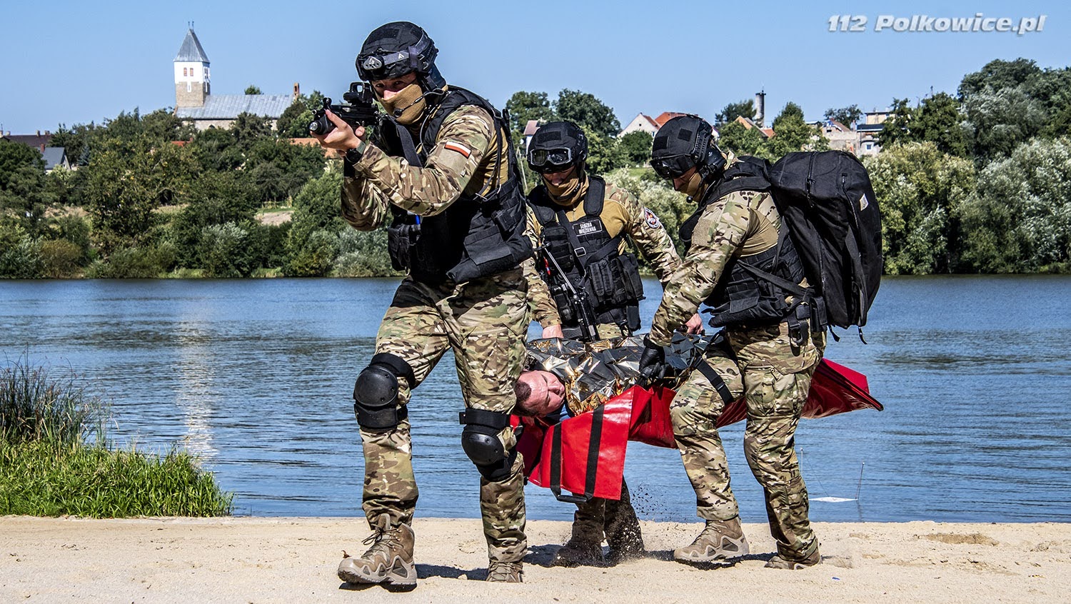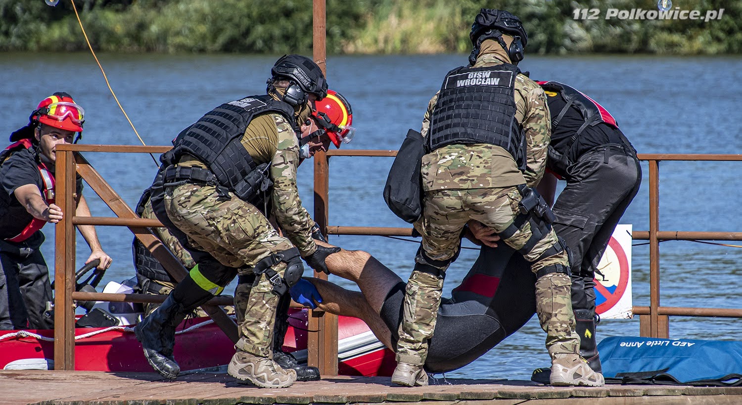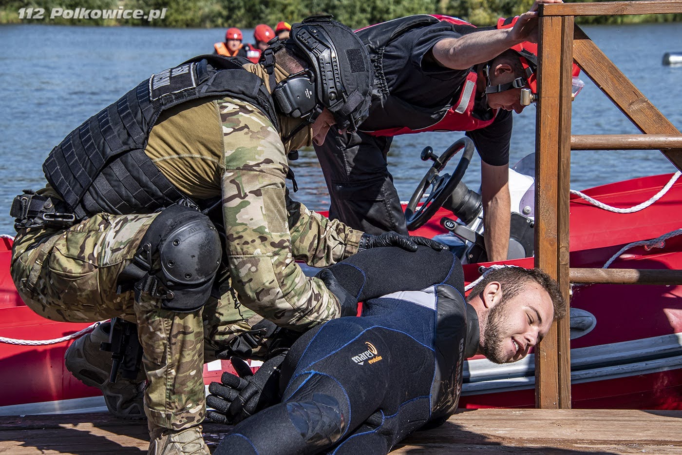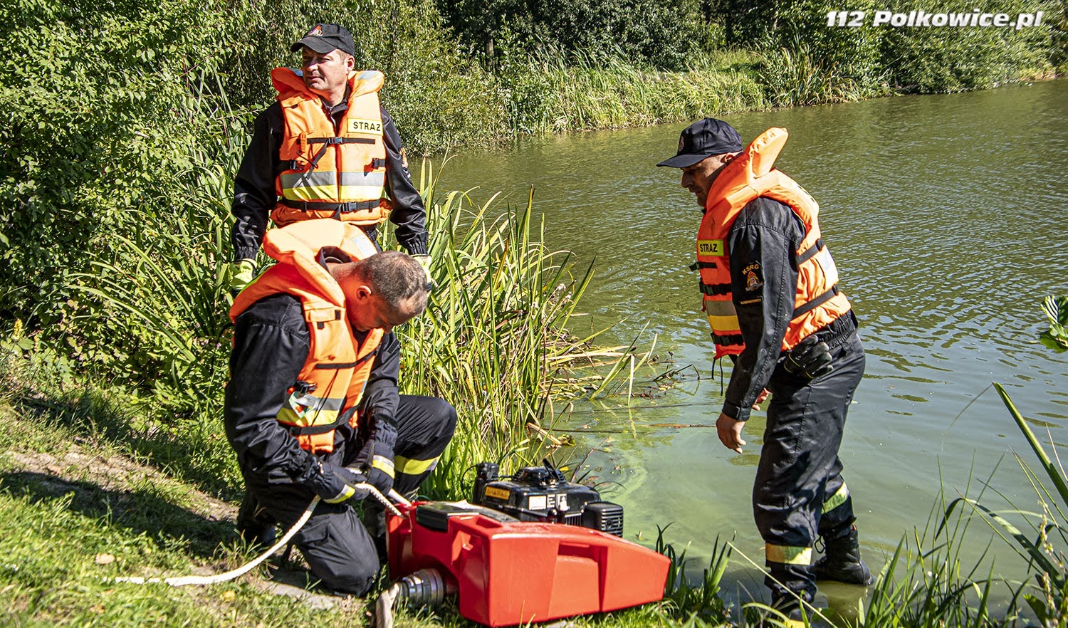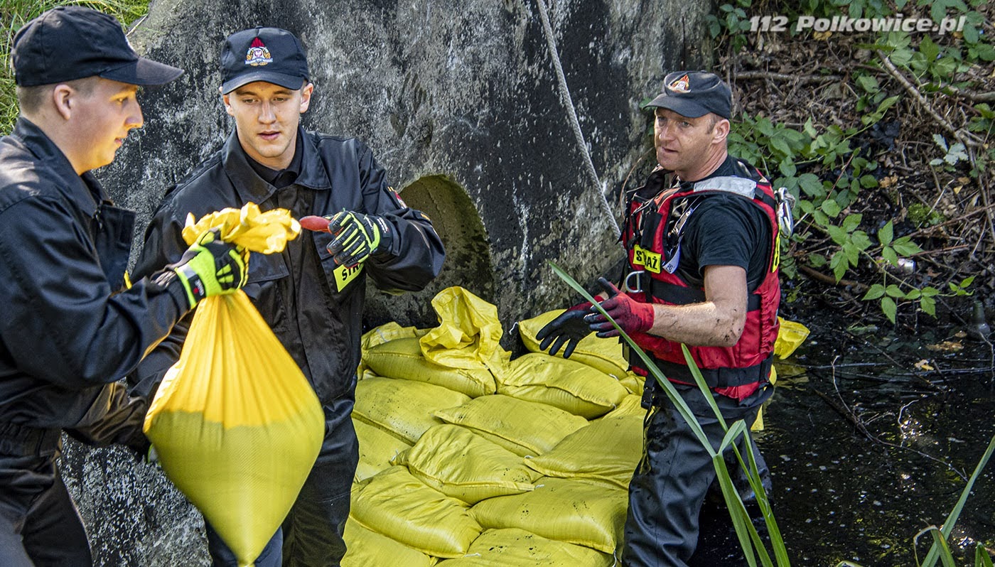 10 września bieżącego roku o godzinie 10:00 na terenie zbiornika wodnego Biały Kościół , zgodnie z Rozkazem nr 6 Komendanta Powiatowego Państwowej Straży Pożarnej w Strzelinie, rozpoczęły się powiatowe ćwiczenia pod kryptonimem „WIELKA WODA 2021”. W ćwiczeniach, których celem głównym było między innymi praktyczne sprawdzenie założeń i zapisów Powiatowego Planu Ratowniczego w warunkach prowadzenia działań przeciwpowodziowych na zbiorniku wodnym, udział wzięli strażacy jednostek ochrony przeciwpożarowej z terenu powiatu strzelińskiego, strażacy Komendy Powiatowej Państwowej Straży Pożarnej z Ząbkowic Śląskich ,funkcjonariusze Zakładu Karnego ze Strzelina, funkcjonariusze Komedy Powiatowej Policji ze Strzelinie, oraz przedstawiciele zarządzania kryzysowego szczebla gminnego oraz powiatowego. Po przybyciu uczestników ćwiczeń w miejsce koncentracji , służba operacyjna strzelińskiej komendy PSP przeprowadziła przegląd sprawności sprzętu i ukompletowania przybyłych zastępów. Następnie na zorganizowanej odprawie uczestników ćwiczeń przywitał zastępca komendanta powiatowego Państwowej Straży Pożarnej ze Strzelina, przedstawiając zakres ćwiczeń oraz cele do osiągnięcia. Ćwiczenia złożone były z czterech epizodów, a ich realizację zaplanowano jednocześnie. Pierwszy z nich dotyczył podniesienia korony wału, przy zastosowaniu mobilnej zapory przeciwpowodziowej oraz kilkudziesięciu worków z piaskiem, drugi epizod polegał na skutecznym i sprawnym uszczelnieniu przepustu. Strażacy prowadzący działania w ramach trzeciego epizodu mieli za zadanie przepompowanie wody ze zbiornika do rowu melioracyjnego, przy zastosowaniu pomp pożarniczych, stanowiących wyposażenie jednostek ochrony przeciwpożarowej. Epizod czwarty natomiast zakładał ucieczkę dwóch zbiegłych osadzonych, ukrywających się na terenie ośrodka wypoczynkowego „Nad stawami” w Białym Kościele. Podczas próby ich zatrzymania przez funkcjonariuszy Policji oraz Zakładu Karnego podjęli oni próbę pokonania zbiornika wodnego wpław. W wyniku tego, jeden z osadzonych zniknął z pola widzenia funkcjonariuszy pod powierzchnią wody, natomiast drugi przebywa około 50 m od brzegu. Funkcjonariusze Zakładu Karnego proszą o wsparcie ich działań Państwową Straż Pożarną. Ponadto funkcjonariusze Komendy Powiatowej Policji w Strzelinie prowadzą działania zmierzające do zatrzymania przebywających na obiekcie osób cywilnych pomagających w ukrywaniu skazanym. Wspólne działania strażaków, Grupy Interwencyjnej Służby Więziennej sprawiły, że poszkodowanych znajdujących się w wodzie szybko udało się ewakuować w miejsce bezpieczne, udzielając jednemu z nich kwalifikowanej pierwszej pomocy. Podczas realizacji wyżej wymienionych założeń ćwiczeń, strażacy mieli możliwość doskonalenia swoich umiejętności z zakresu prowadzenia działań na zbiorniku wodnym, koordynowania złożonych działań ratowniczych doskonaląc, również współpracę w tym zakresie z przedstawicielami Zakładu Karnego, Policji czy zarządzania kryzysowego.