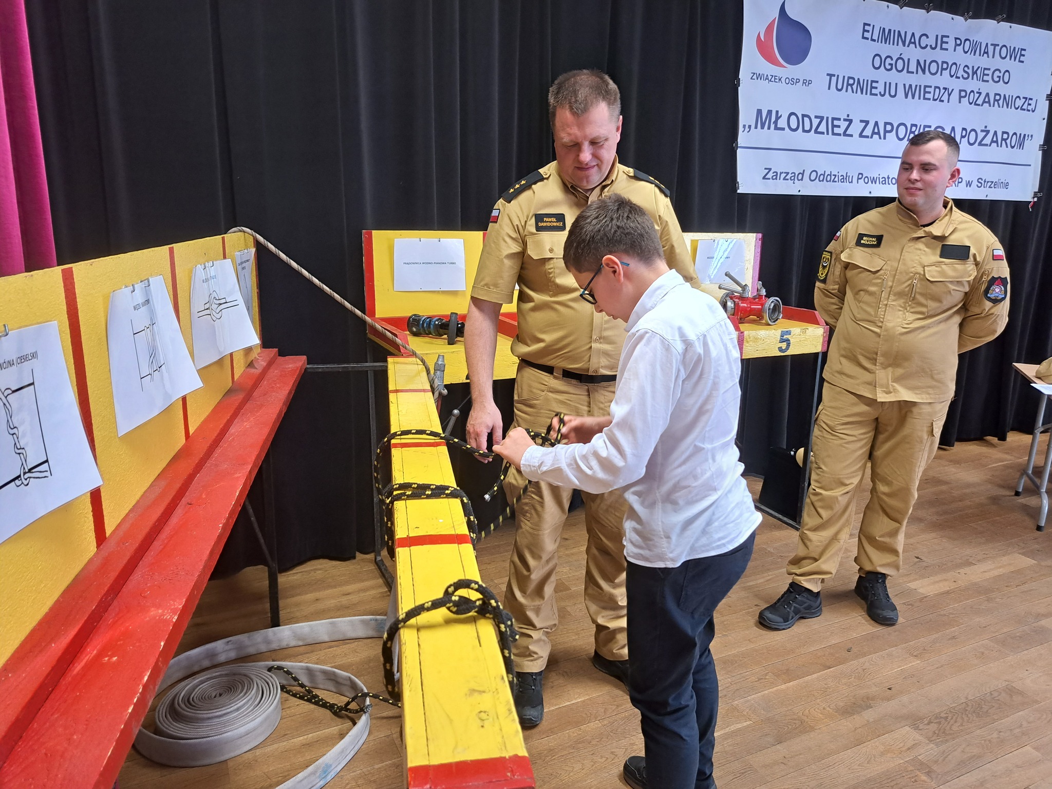 i młodzieży wiedzy ze znajomości przepisów przeciwpożarowych, zasad postępowania na wypadek pożaru, praktycznych umiejętności posługiwania się podręcznym sprzętem gaśniczym, wiedzy na temat techniki pożarniczej, organizacji ochrony przeciwpożarowej, szeroko rozumianego ratownictwa oraz wiedzy z zakresu bezpieczeństwa powszechnego, a także historii i tradycji ruchu strażackiego. w których udział wzięło 45 uczniów ze szkół podstawowych i ponadpodstawowych z powiatu strzelińskiego, w trzech grupach wiekowych:
