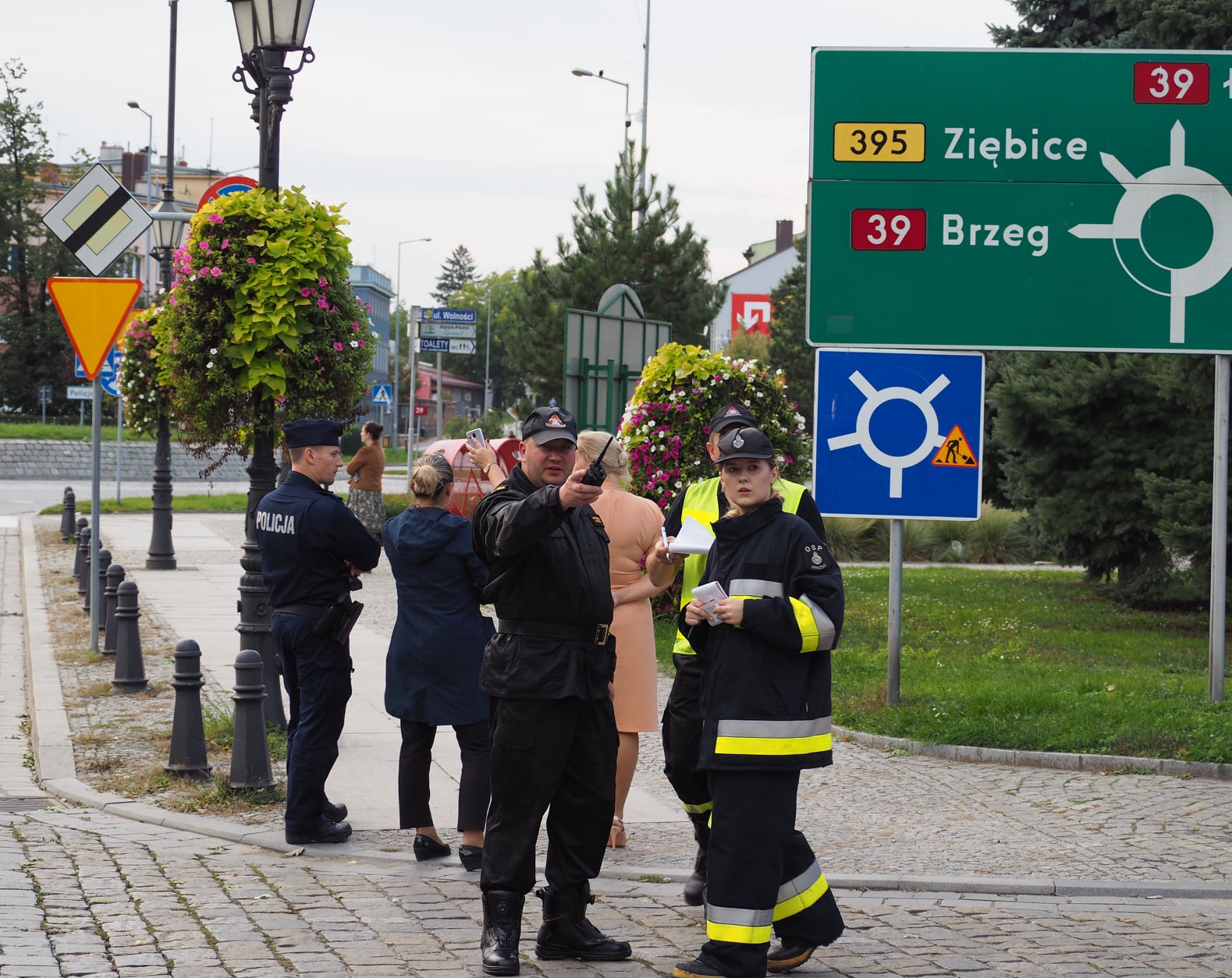5 października 2021 roku o godzinie 15.12 służba dyżurna Stanowiska Kierowania Komendanta Powiatowego Państwowej Straży Pożarnej w Strzelinie, otrzymała zgłoszenie od dyżurnego Komendy Powiatowej Policji w Strzelinie, dotyczące odkrycia niewybuchu na remontowanym odcinku drogi wojewódzkiej 395 przy ul. Wolności w Strzelinie. Dyżurny Stanowiska Kierowania natychmiastowo na miejsce zdarzenia skierował zastępy jednostek ochrony przeciwpożarowej : dwa zastępy Państwowej Straży Pożarnej oraz trzy zastępy Ochotniczej Straży Pożarnej z Brożca, Kuropatnika oraz Nowolesia. Na miejsce udał się również, zastępca komendanta powiatowego strzelińskiej straży mł. bryg. Jarosław Łuczak . Krótko potem ustalono, że wskutek prowadzonych prac na drodze wojewódzkiej 395 przy ul. Wolności natrafiono na pocisk artyleryjski z czasów drugiej wojny światowej, który znajdował się w bardzo bliskim sąsiedztwie gazociągu. Po przeprowadzeniu szczegółowego rozpoznania, przez saperów z I Brzeskiego Pułku Saperów im. Tadeusza Kościuszki z Brzegu miejsca, w jakim natrafiono na pocisk oraz jego rodzaju i wielkości, wyznaczono strefę zagrożenia o promieniu 200 metrów oraz podjęto decyzję o natychmiastowej ewakuacji ludności i wstrzymaniu ruchu pojazdów. Wśród ewakuowanej ludności znajdowały się osoby z ograniczaną możliwością poruszania się, które na czas prowadzonej akcji przewieziono do sali konferencyjnej Starostwa Powiatowego, gdzie otoczono je opieką. Bardzo istotnym czynnikiem wpływającym na bezpieczne usunięcie pocisku przez saperów, było zabezpieczenie sieci gazociągowej przed wybuchem. Po zakończeniu tych czynności przez pracowników Pogotowia Gazowego, którym pomocy udzielali strzelińscy strażacy, saperzy przystąpili do zabezpieczenia niewybuchu oraz przewiezienia w bezpieczne miejsce na ternie brzeskiej bazy. Po zakończonych czynnościach osoby ewakuowane mogły wrócić do swoich mieszkań, a ruch pojazdów na strzelińskich drogach został wznowiony. W sprawne i bezpieczne przeprowadzenie akcji usunięcia pocisku, które było również cennym sprawdzianem wielopłaszczyznowej współpracy, zaangażowanych było wiele służb i podmiotów współdziałających tj.; saperzy z I Brzeskiego Pułku Saperów im. Tadeusza Kościuszki z Brzegu, strażacy Państwowej Straży Pożarnej, druhny i druhowie Ochotniczych Straży Pożarnych, funkcjonariusze Policji, przedstawiciele zarządzania kryzysowego szczebla powiatowego oraz gminnego, pracownicy Pogotowia Gazowego, pracownicy Pogotowia Energetycznego. Słowa uznania skierować należy również, do mieszkańców Strzelina, przedsiębiorców, sprzedawców, przejezdnych, którzy podczas prowadzonej przez służby ewakuacji wykazali się dużym zdyscyplinowaniem i zrozumieniem.