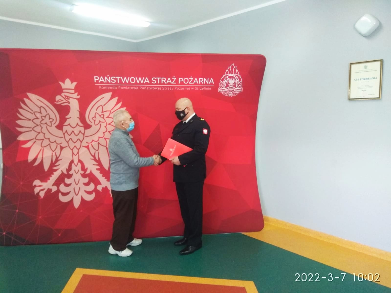 7 marca 2022 roku w siedzibie Komendy Powiatowej Państwowej Straży Pożarnej w Strzelinie mł. bryg. Jarosław Łuczak wręczył, w imieniu Komendanta Powiatowego pierwszą decyzję o przyznaniu świadczenia ratowniczego długoletniemu druhowi Ochotniczej Straży Pożarnej w Karnkowie.