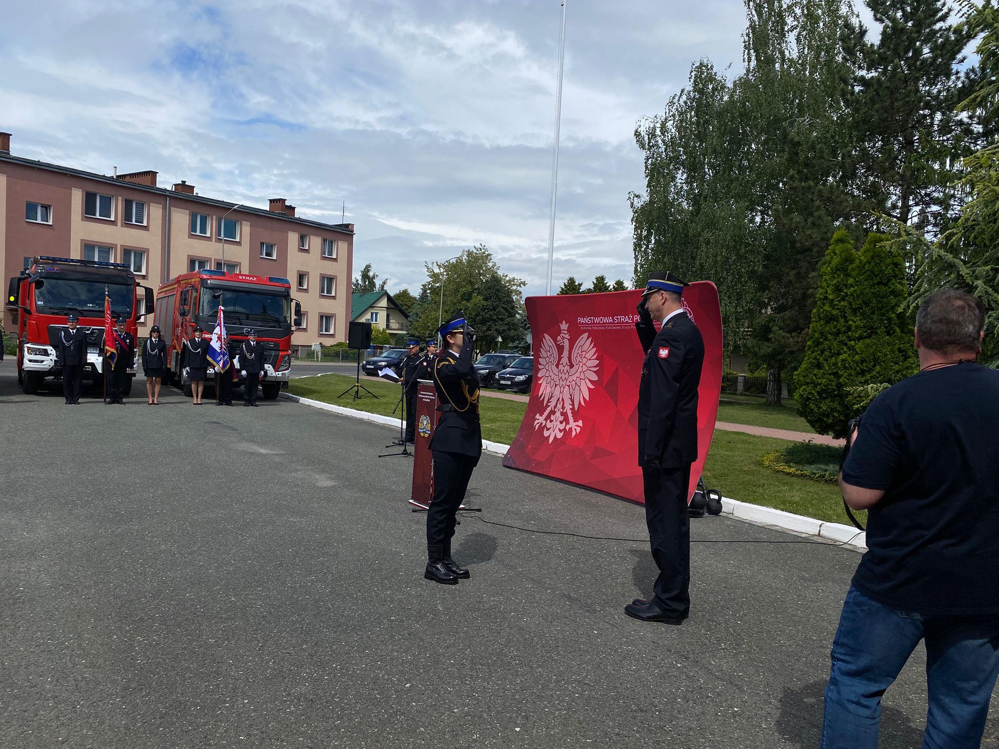 Uroczystość rozpoczęła się od złożenia meldunku Zastępcy Dolnośląskiego Komendanta Wojewódzkiego st. bryg. Andrzejowi Fischerowi.