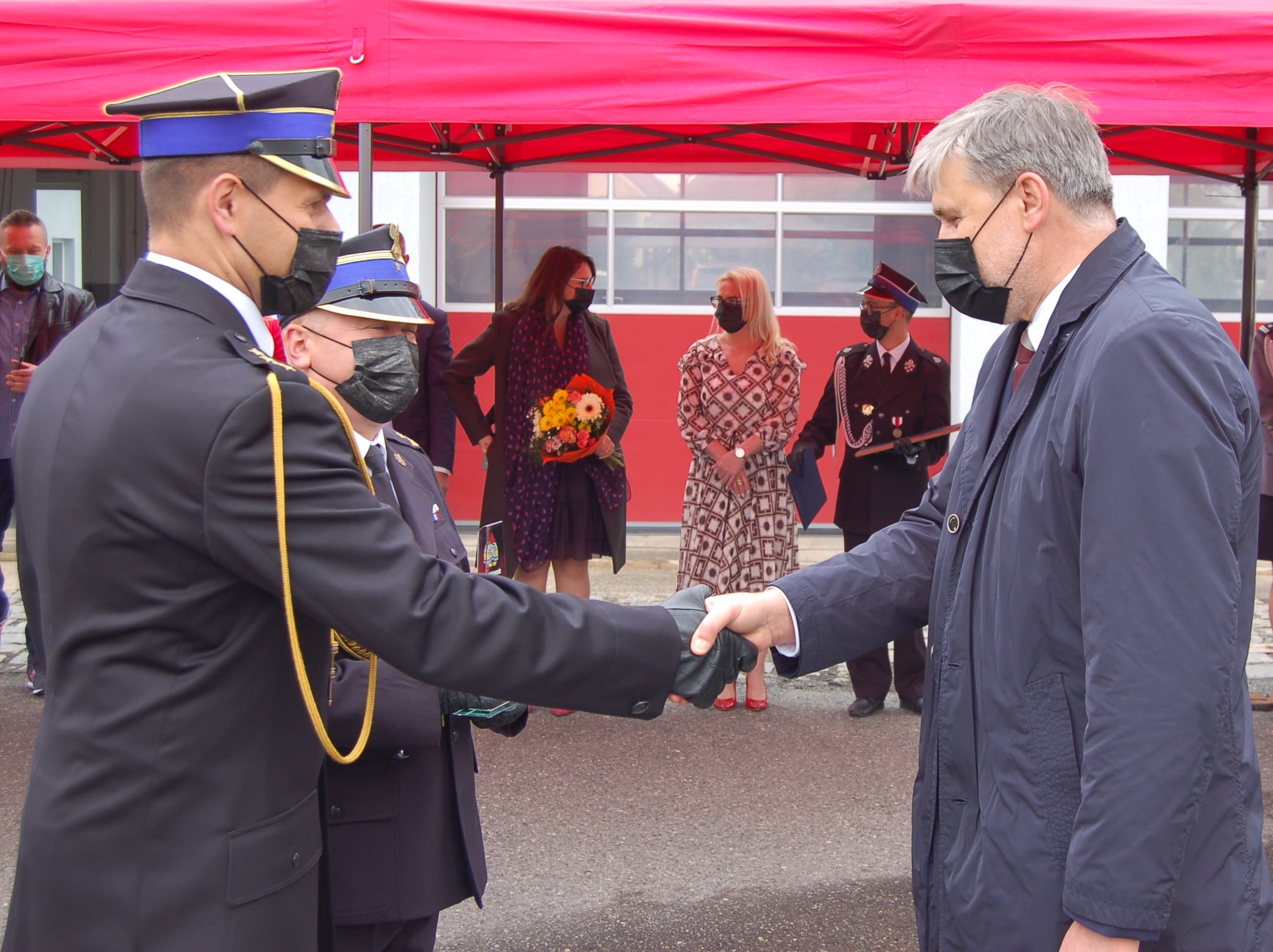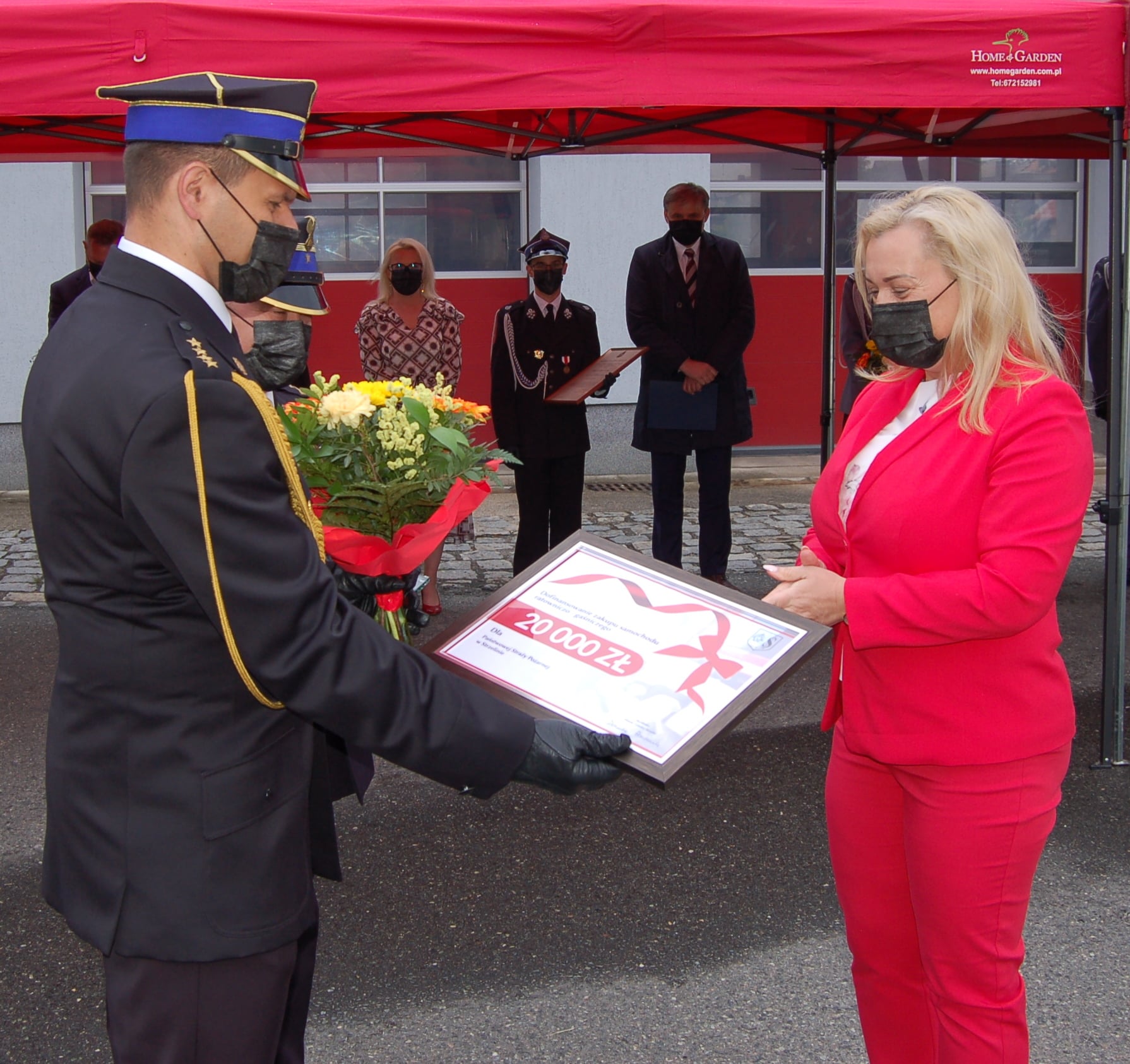 Bardzo istotnym elementem tegorocznych obchodów było poświęcenie 3 pojazdów pożarniczych pozyskanych przez komendę w 2020 r. Poświęcenia dokonał ksiądz kanonik Andrzej Porębny – proboszcz Parafii Rzymskokatolickiej pod wezwaniem Podwyższenia Krzyża Świętego w Strzelinie. Szczególnie kosztownym i trudnym zadaniem był zakup średniego samochodu ratowniczo-gaśniczego, który został zrealizowany przy wydatnym wsparciu wszystkich samorządów. W dowód uznania staroście, a także włodarzom miast i gmin wręczono pamiątkowe statuetki z podziękowaniami.
