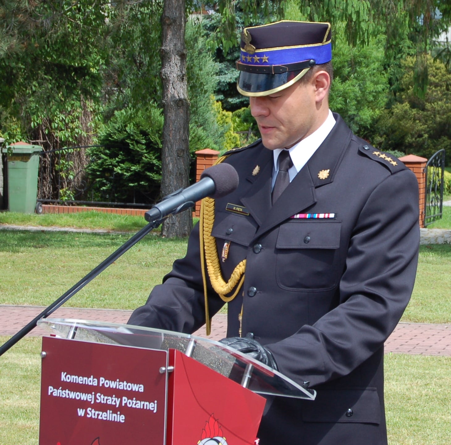 Następnie komendant przywitał gości którzy uświetnili tegoroczne obchody. W uroczystości, obok strażaków PSP i ochotniczych straży pożarnych z terenu powiatu strzelińskiego, udział wzięli przedstawiciele władz samorządowych w osobach Pani Anny Horodyskiej - Starosty Powiatu Strzelińskiego, Pani Doroty Pawnuk – Burmistrza Miasta i Gminy Strzelin, Pana Waldemara Grochowskiego – Wójta Gminy Borów i jednocześnie Prezesa Zarządu Oddziału Powiatowego Związku Ochotniczych Straży Pożarnych Rzeczpospolitej Polskiej w Strzelinie, Pana Andrzeja Łuczaka – Wójta Gminy Przeworno, Pana Tomasza Gracza – Wójta Gminy Kondratowice oraz Pani Małgorzaty Pluty –przybyłej w imieniu Burmistrza Miasta i Gminy Wiązów.
