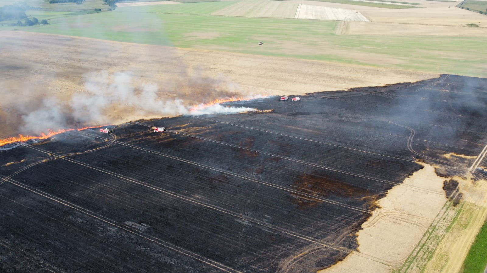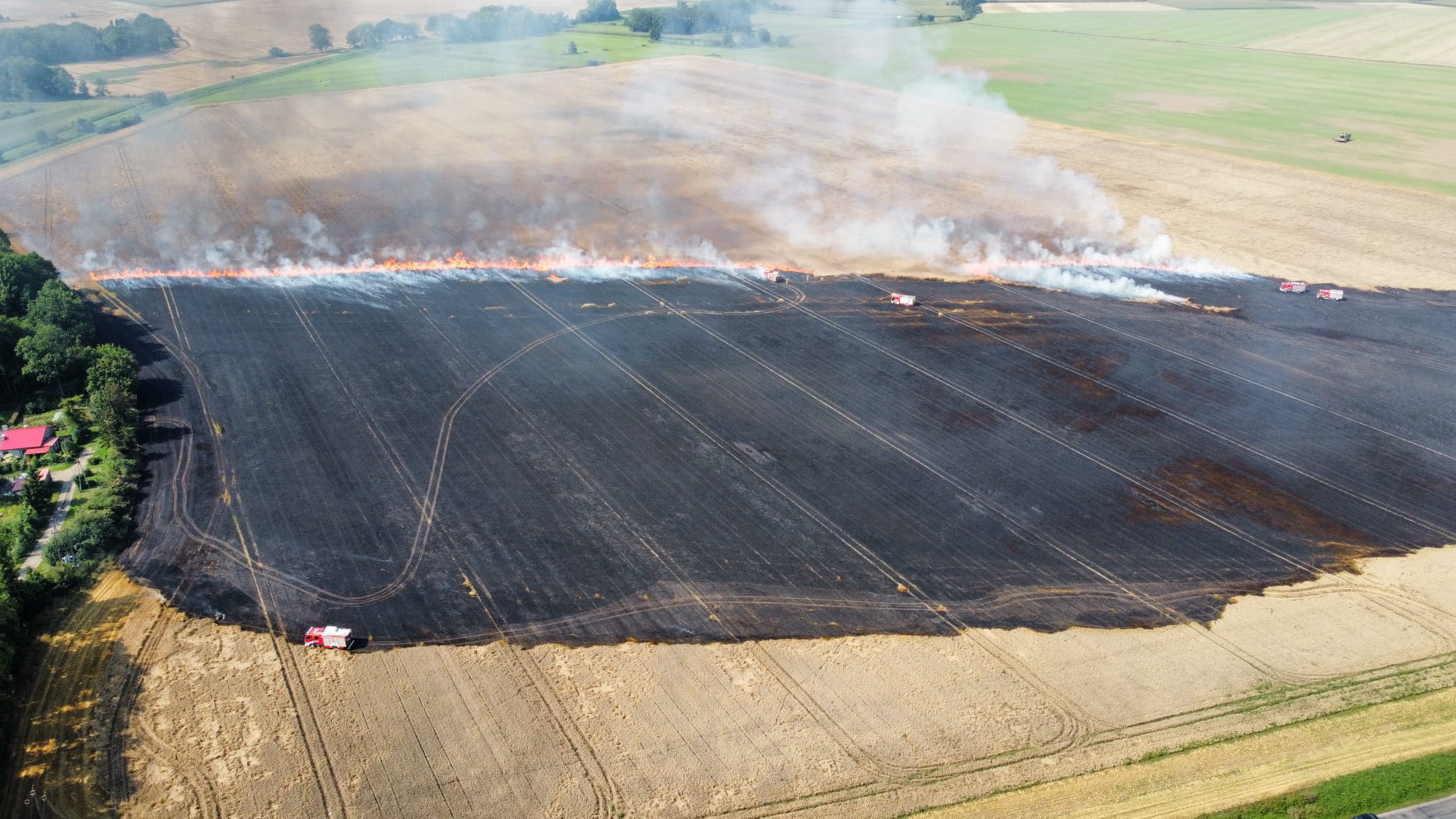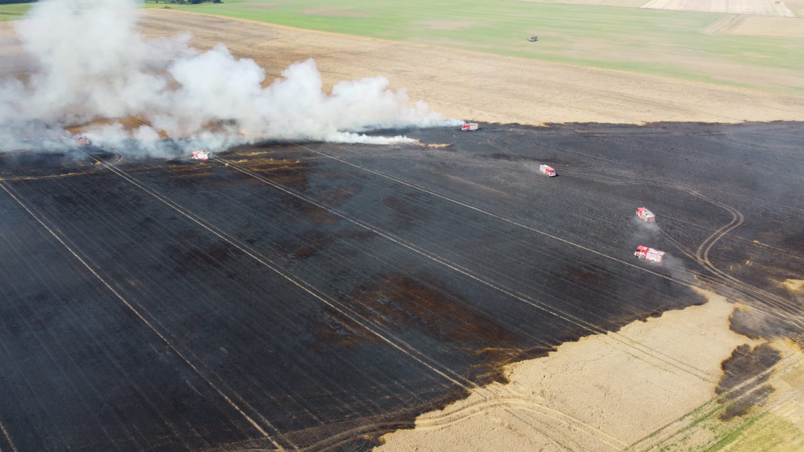 14 sierpnia 2021 roku o godzinie 10.08 służba dyżurna Stanowiska Kierowania Komendanta Powiatowego Państwowej Straży Pożarnej w Strzelinie, otrzymała zgłoszenie od dyspozytora Wrocławskiego Centrum Powiadamiania Ratunkowego dotyczące pożaru zboża na polu za miejscowością Bierzyn. Dyżurny Stanowiska Kierowania natychmiastowo na miejsce pożaru skierował cztery zastępy jednostek ochrony przeciwpożarowej : dwa zastępy Państwowej Straży Pożarnej oraz dwa zastępy Ochotniczej Straży Pożarnej. Już po ośmiu minutach na miejsce dotarli pierwsi strażacy z Jednostki Ratowniczo Gaśniczej PSP ze Strzelina. Krótko potem na podstawie przeprowadzonego rozpoznania ustalono, że pali się około 2 ha pszenicy na 46 ha polu. Silnie wiejący wiatr powodował bardzo szybki rozwój i rozprzestrzenienie się ognia na większy obszar, a występujące przy tym duże zadymienie, wymusiło na strażakach konieczność zastosowania sprzętu ochrony układu oddechowego. Pożar w którym udział wzięło 47 strażaków oraz 12 samochodów gaśniczych z jednostek ochrony przeciwpożarowej udało się opanować już po niespełna 40 minutach. Przyczynę jego powstania ustala strzelińska policja.
