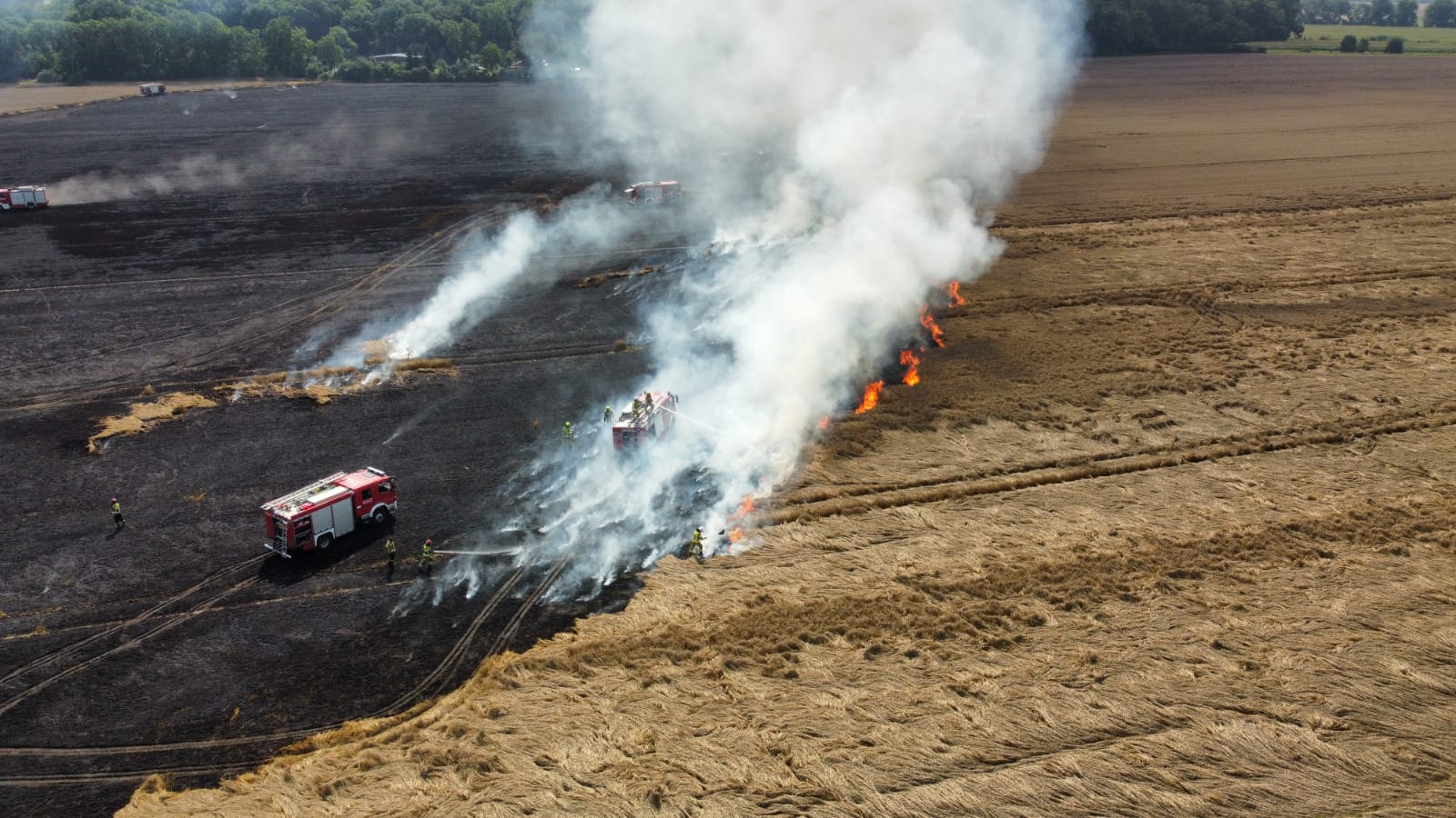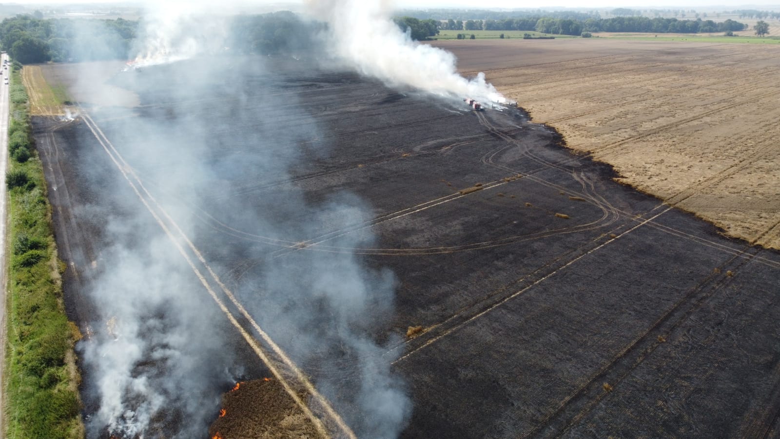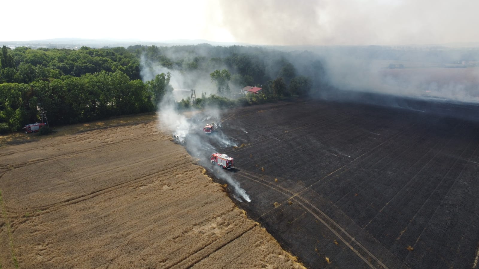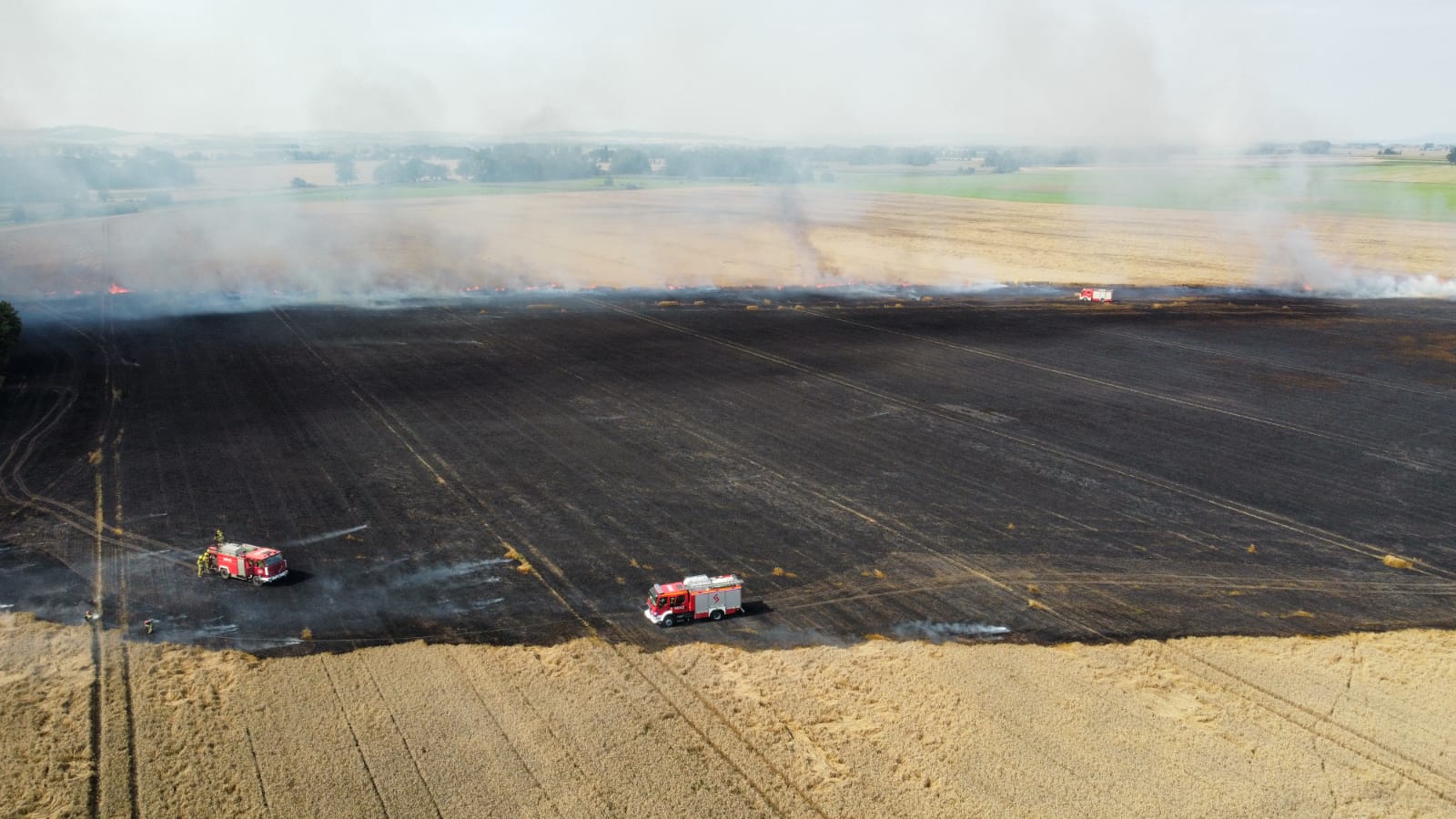 14 sierpnia 2021 roku o godzinie 10.08 służba dyżurna Stanowiska Kierowania Komendanta Powiatowego Państwowej Straży Pożarnej w Strzelinie, otrzymała zgłoszenie od dyspozytora Wrocławskiego Centrum Powiadamiania Ratunkowego dotyczące pożaru zboża na polu za miejscowością Bierzyn. Dyżurny Stanowiska Kierowania natychmiastowo na miejsce pożaru skierował cztery zastępy jednostek ochrony przeciwpożarowej : dwa zastępy Państwowej Straży Pożarnej oraz dwa zastępy Ochotniczej Straży Pożarnej. Już po ośmiu minutach na miejsce dotarli pierwsi strażacy z Jednostki Ratowniczo Gaśniczej PSP ze Strzelina. Krótko potem na podstawie przeprowadzonego rozpoznania ustalono, że pali się około 2 ha pszenicy na 46 ha polu. Silnie wiejący wiatr powodował bardzo szybki rozwój i rozprzestrzenienie się ognia na większy obszar, a występujące przy tym duże zadymienie, wymusiło na strażakach konieczność zastosowania sprzętu ochrony układu oddechowego. Pożar w którym udział wzięło 47 strażaków oraz 12 samochodów gaśniczych z jednostek ochrony przeciwpożarowej udało się opanować już po niespełna 40 minutach. Przyczynę jego powstania ustala strzelińska policja.
