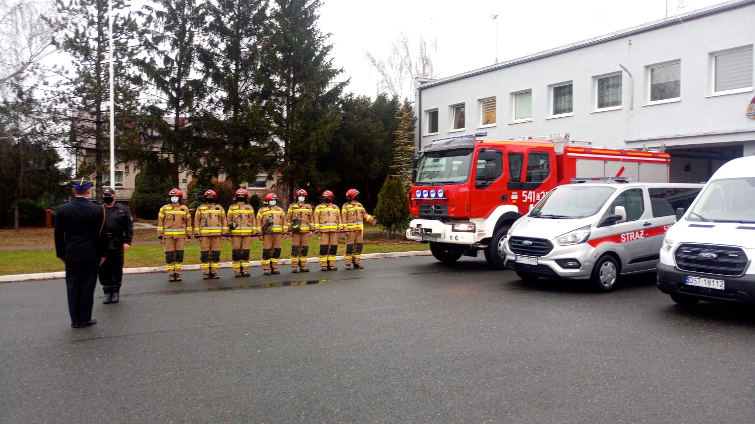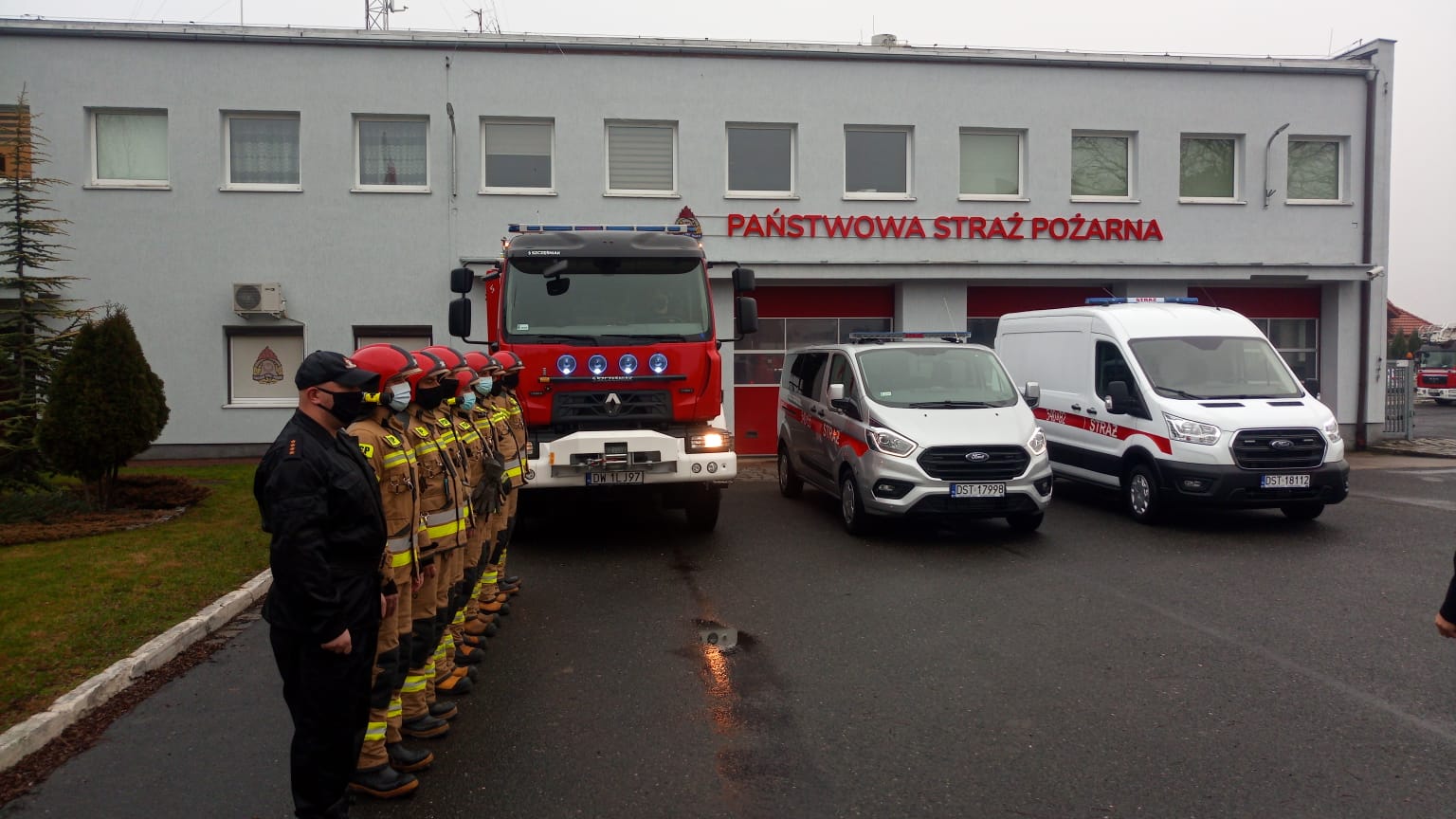 W przedświątecznej atmosferze dnia 23. grudnia 2020 r. strażacy strzelińskiej komendy PSP na czele z komendantem powiatowym przywitali, przed garażami swojej jednostki, trzy nowe samochody pożarnicze, tj.:
