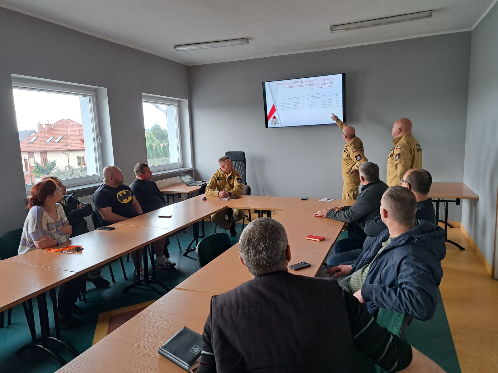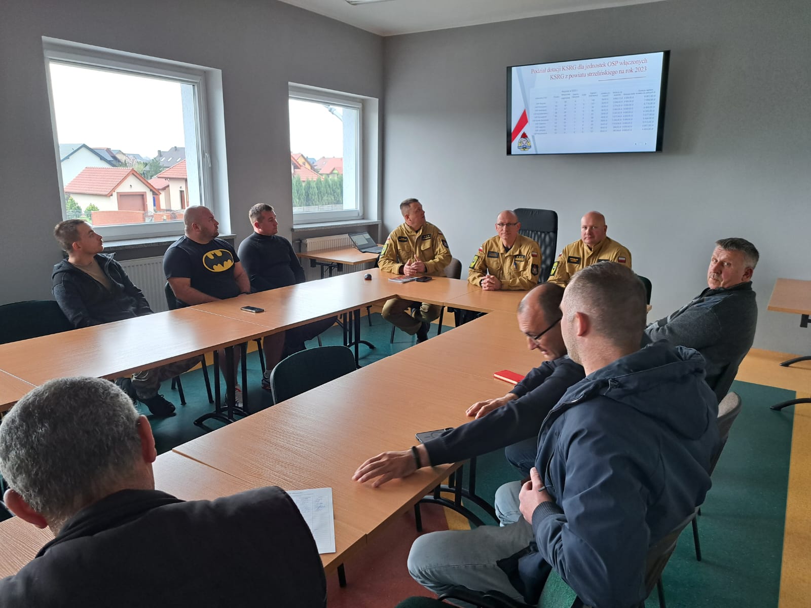 w Strzelinie odbyło się spotkanie robocze dotyczące przyznanych w roku 2023 dotacji tj. „Przygotowanie jednostek Ochotniczych Straży Pożarnych do działań ratowniczo-gaśniczych”, „Zapewnienie gotowości bojowej jednostki ochrony przeciwpożarowej włączonej do Krajowego Systemu