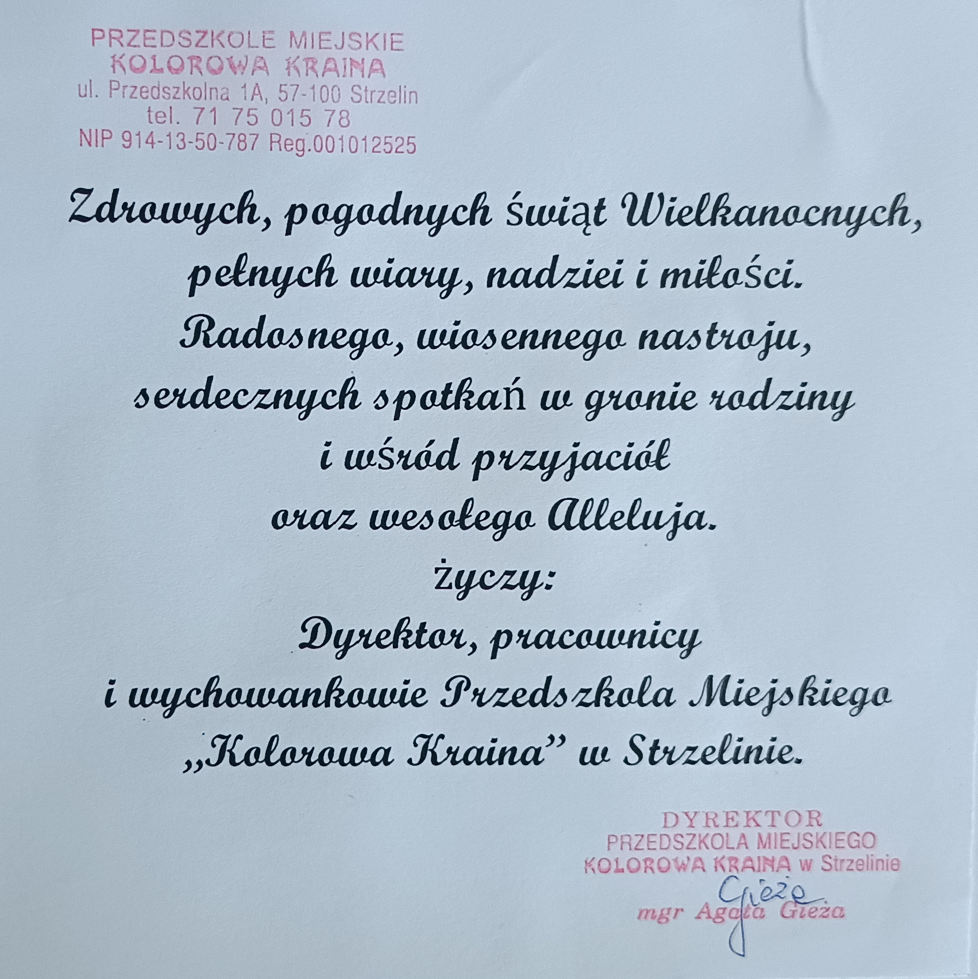 Dziękując za piękną świąteczną kartkę oraz życzenia, również życzymy Wesołych Świąt Wielkanocnych