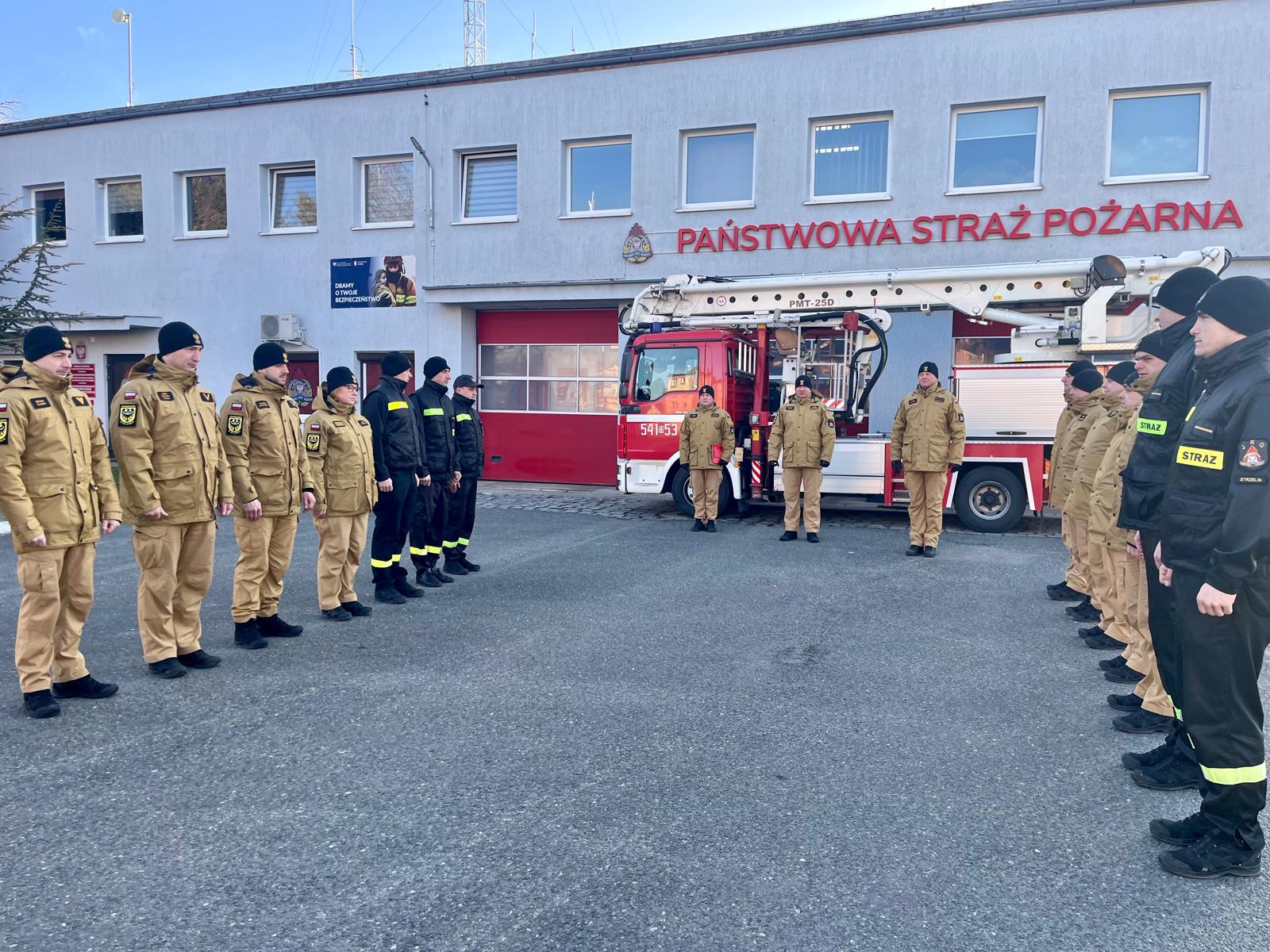 Dnia 26 lutego 2026 roku na placu Komendy Powiatowej Państwowej Straży Pożarnej w Strzelinie odbyła się uroczysta zmiana służby z okazji wręczenia Nagrody Komendanta Powiatowego PSP w Strzelinie dla st. ogn. Rafała Babiaka z uwagi na bohaterską postawę podczas pożaru budynku wielorodzinnego w Brzegu.