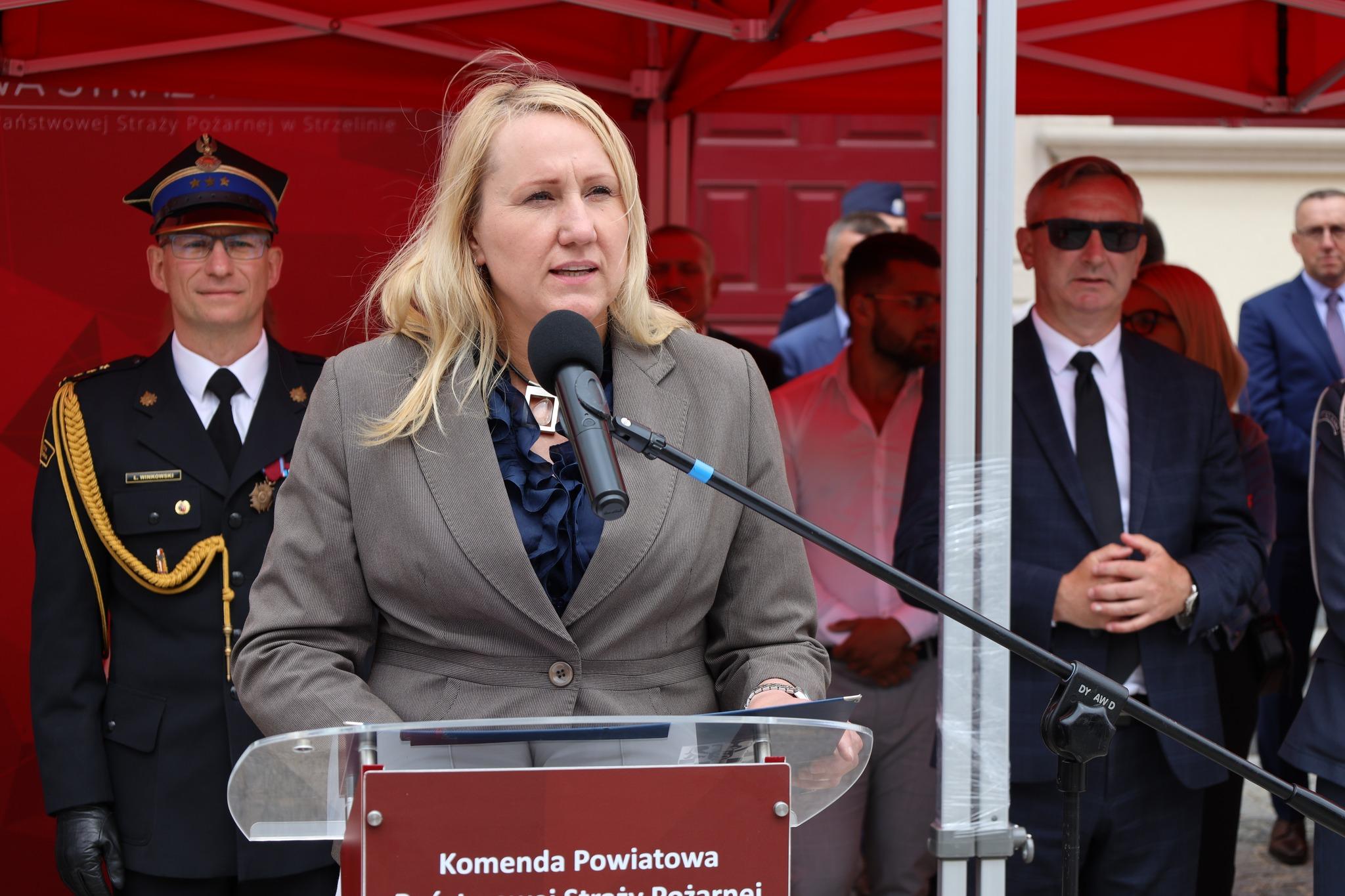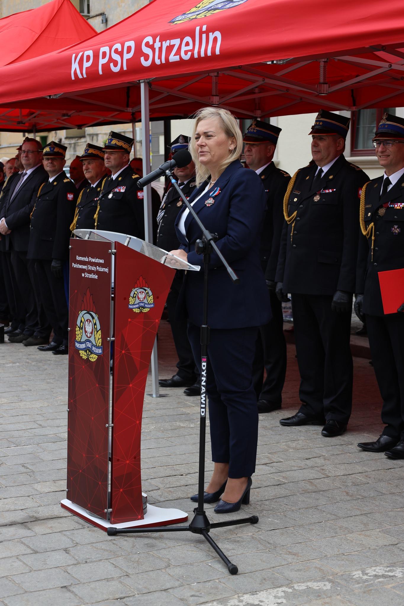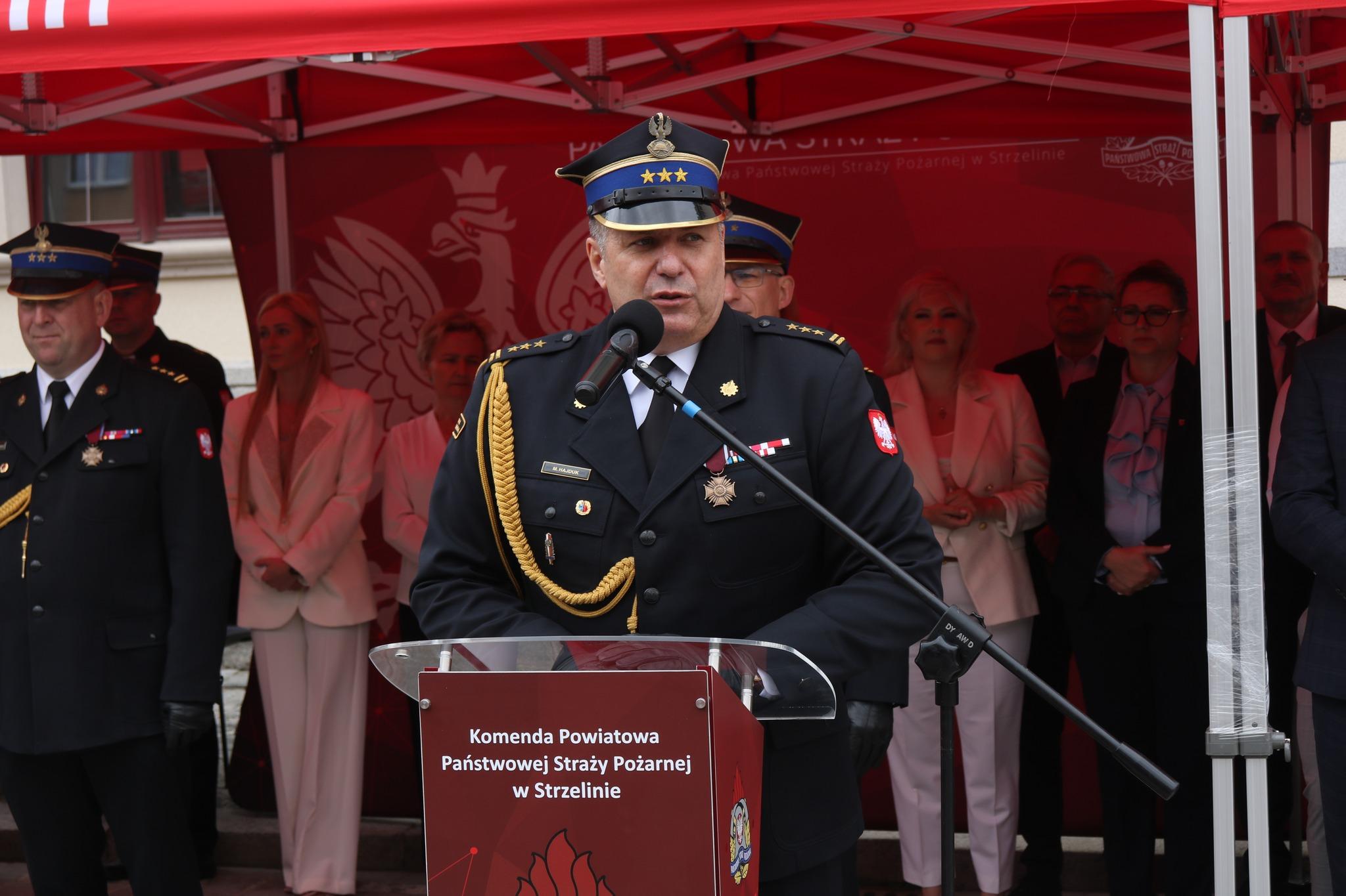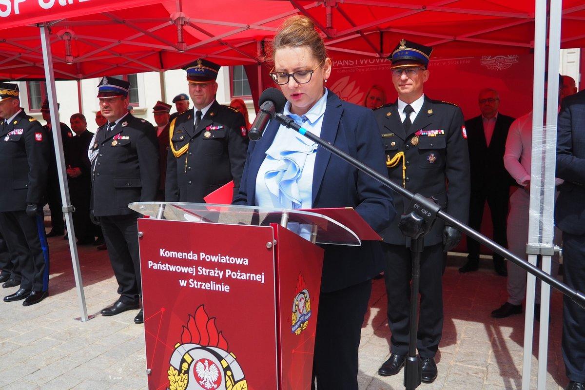 „W 25 rocznicę powołania, Komenda Powiatowa Państwowej Straży Pożarnej w Strzelinie otrzyma sztandar, który od dziś będzie wizytówką naszej jednostki. Nadanie i przekazanie sztandaru jest formą podziękowania społeczeństwa za ofiarną służbę na rzecz bezpieczeństwa mieszkańców powiatu strzelińskiego. Sztandar, który będę miał zaszczyt przyjąć w imieniu strażackiego środowiska to najważniejszy dowód więzi integrującej strażaków z lokalnym społeczeństwem. To symbol historii, tradycji a przede wszystkim zaufania.” – Komendant Powiatowy PSP w Strzelin st. bryg. Łukasz Winkowski