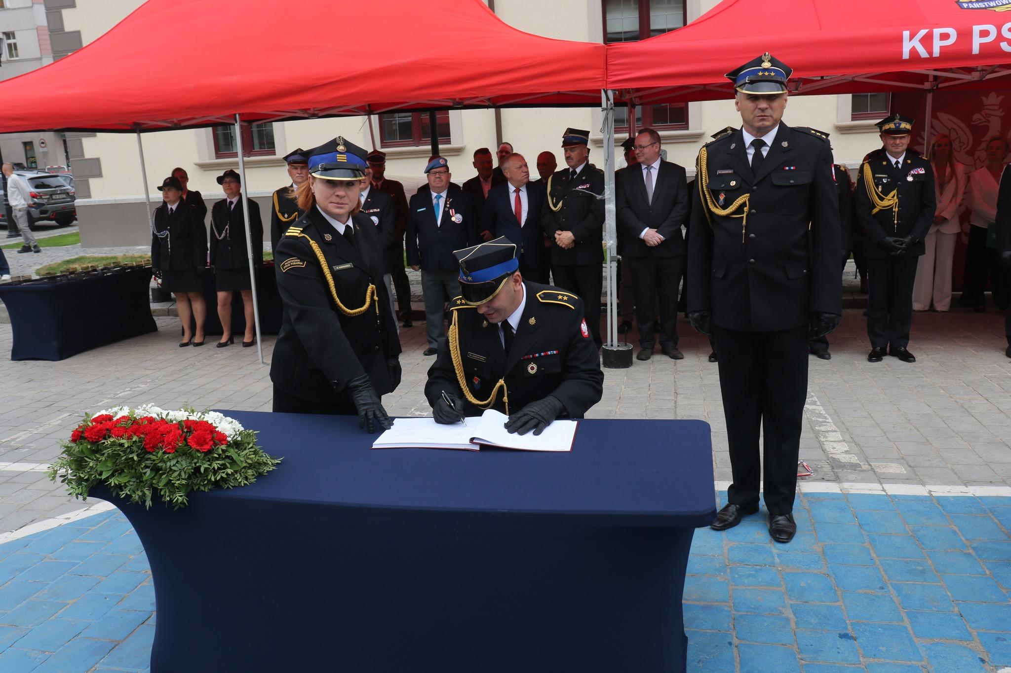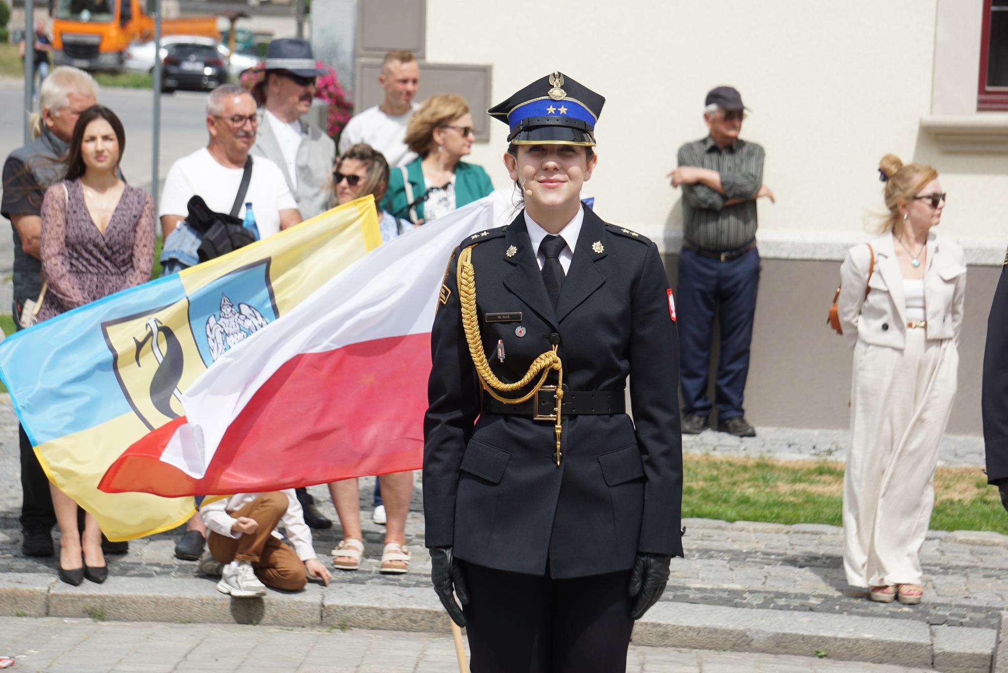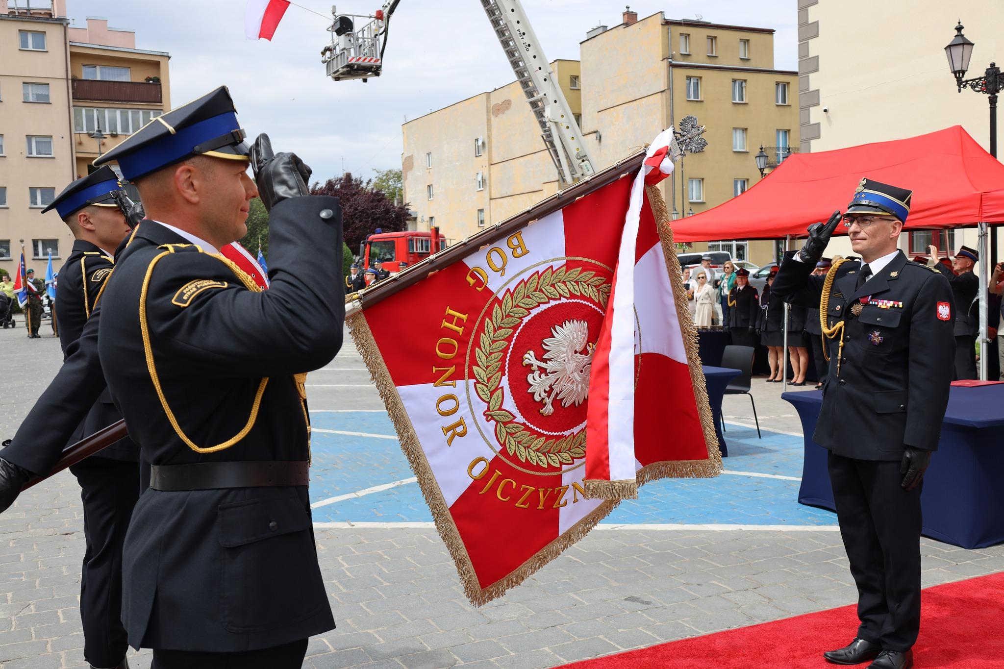 Zgodnie z ceremoniałem pożarniczym po złożeniu meldunku przez dowódcę uroczystości Dolnośląskiemu Komendantowi Wojewódzkiemu PSP st. bryg. Marka Hajduka podniesiono flagę państwową i odśpiewano hymn państwowy.