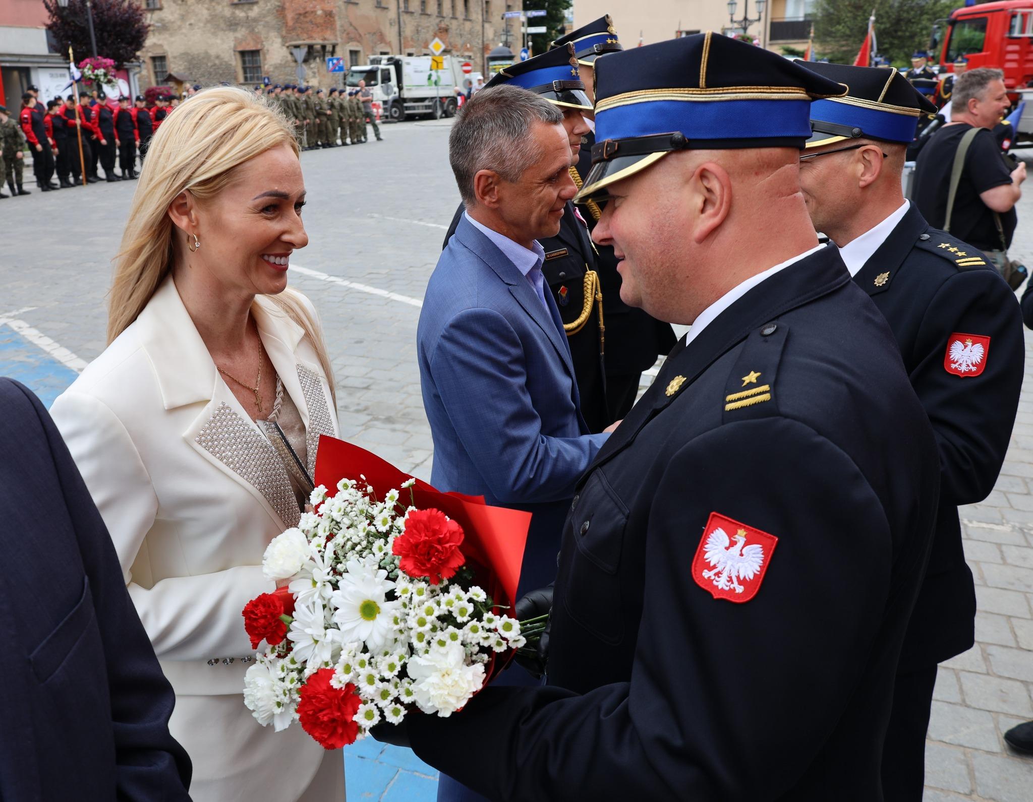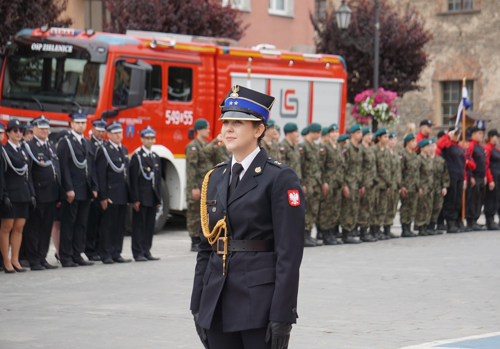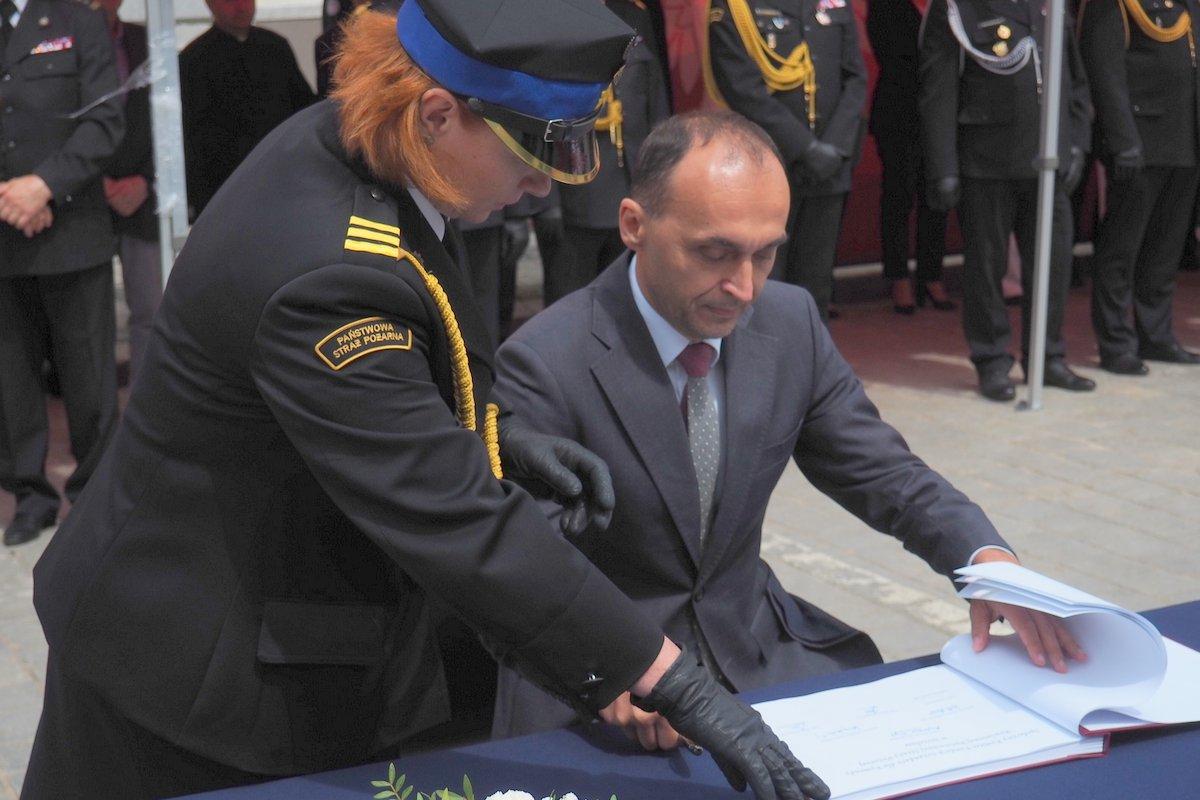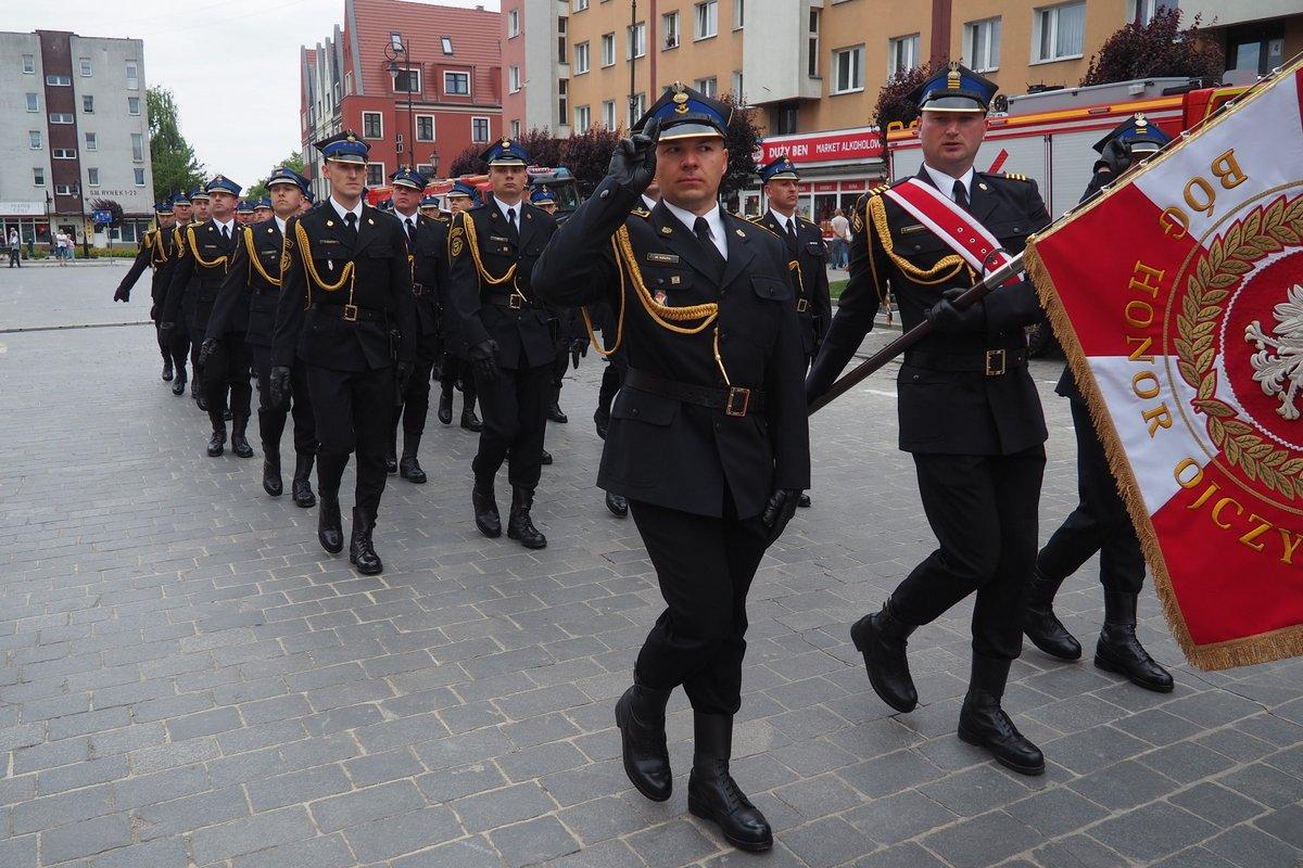 Zgodnie z ceremoniałem pożarniczym po złożeniu meldunku przez dowódcę uroczystości Dolnośląskiemu Komendantowi Wojewódzkiemu PSP st. bryg. Marka Hajduka podniesiono flagę państwową i odśpiewano hymn państwowy.