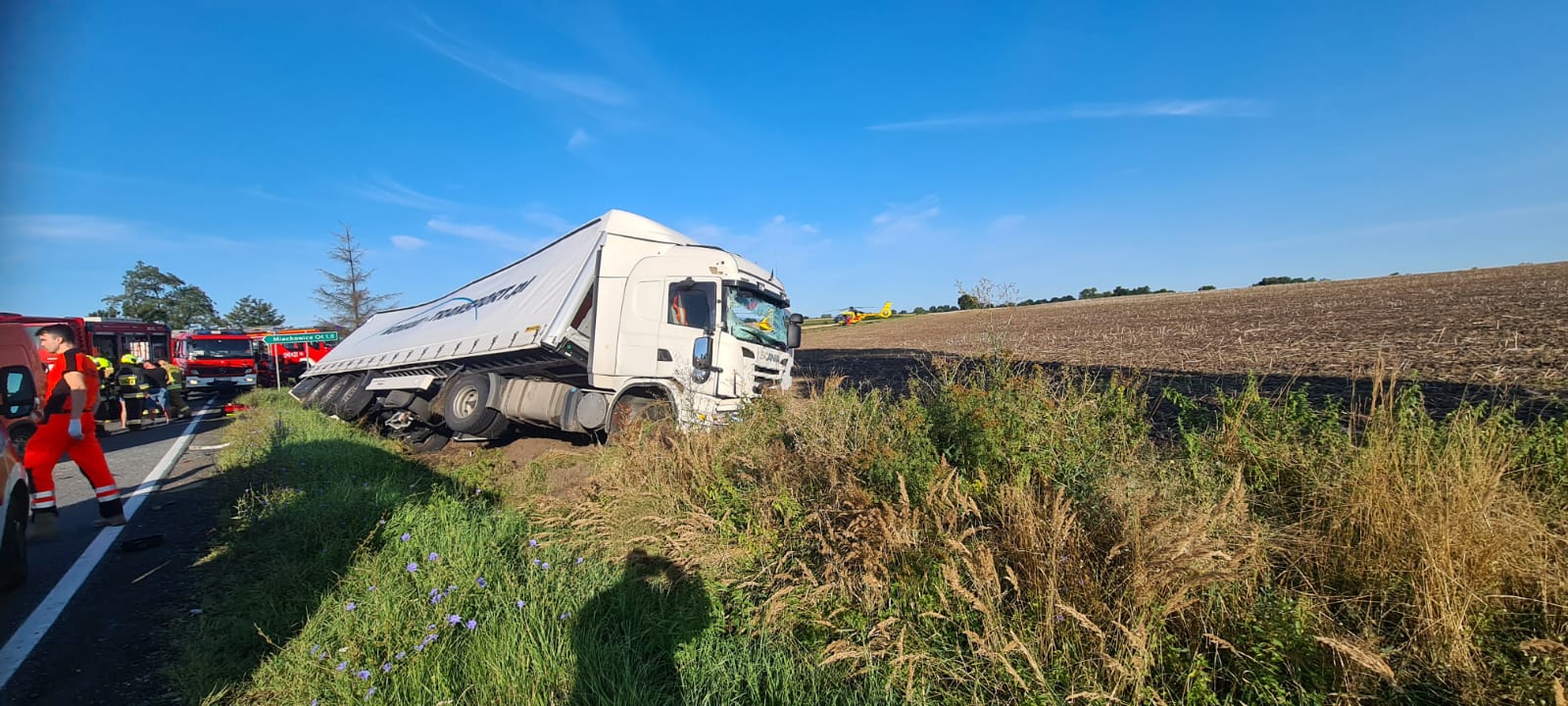 9 sierpnia 2021 roku o godzinie 6.27 służba dyżurna Stanowiska Kierowania Komendanta Powiatowego Państwowej Straży Pożarnej w Strzelinie, otrzymała zgłoszenie od dyspozytora Wrocławskiego Centrum Powiadamiania Ratunkowego dotyczące wypadku z udziałem pojazdu ciężarowego oraz samochodu dostawczego. Zdarzenie miało miejsce na skrzyżowaniu drogi krajowej 39 z drogą powiatową 3099D pomiędzy miejscowościami Wiązów - Częstocice. Dyżurny Stanowiska Kierowania natychmiastowo na miejsce wypadku skierował cztery zastępy jednostek ochrony przeciwpożarowej : dwa zastępy Państwowej Straży Pożarnej oraz trzy zastępy Ochotniczej Straży Pożarnej. Już po ośmiu minutach na miejsce zdarzenia dotarli pierwsi strażacy. Krótko potem na podstawie przeprowadzonego rozpoznania ustalono, że doszło do wypadku z udziałem samochodu ciężarowego przewożącego bloczki ceramiczne oraz samochodu dostawczego, którym podróżowało pięć osób. Pojazd ciężarowy znajdował się w przydrożnym rowie, natomiast samochód dostawczy na środku jezdni drogi krajowej. By ewakuować kierującego busem, konieczne było zastosowanie narzędzi hydraulicznych, przy użyciu, których wykonano dostęp i sprawnie przeprowadzono ewakuację. Na miejscu zdarzenia ratownicy udzielili pomocy medycznej sześciu osobom, które kolejno przewieziono transportem kołowym oraz lotniczym do szpitali .