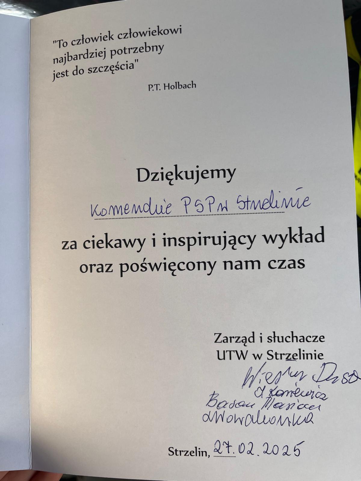 27 lutego 2025 r. o godz. 12:00 funkcjonariusze Komendy Powiatowej Państwowej Straży Pożarnej w Strzelinie na zaproszenie Zarządu Uniwesytetu Trzeciego Wieku w Strzelinie przeprowadzili zajęcia edukacyjne z zakresu bezpieczeństwa dla seniorów z powiatu strzelińskiego. W zajęciach uczestniczyli członkowie Klubu Seniora oraz członkowie Uniwesytetu Trzeciego Wieku w Strzelinie.