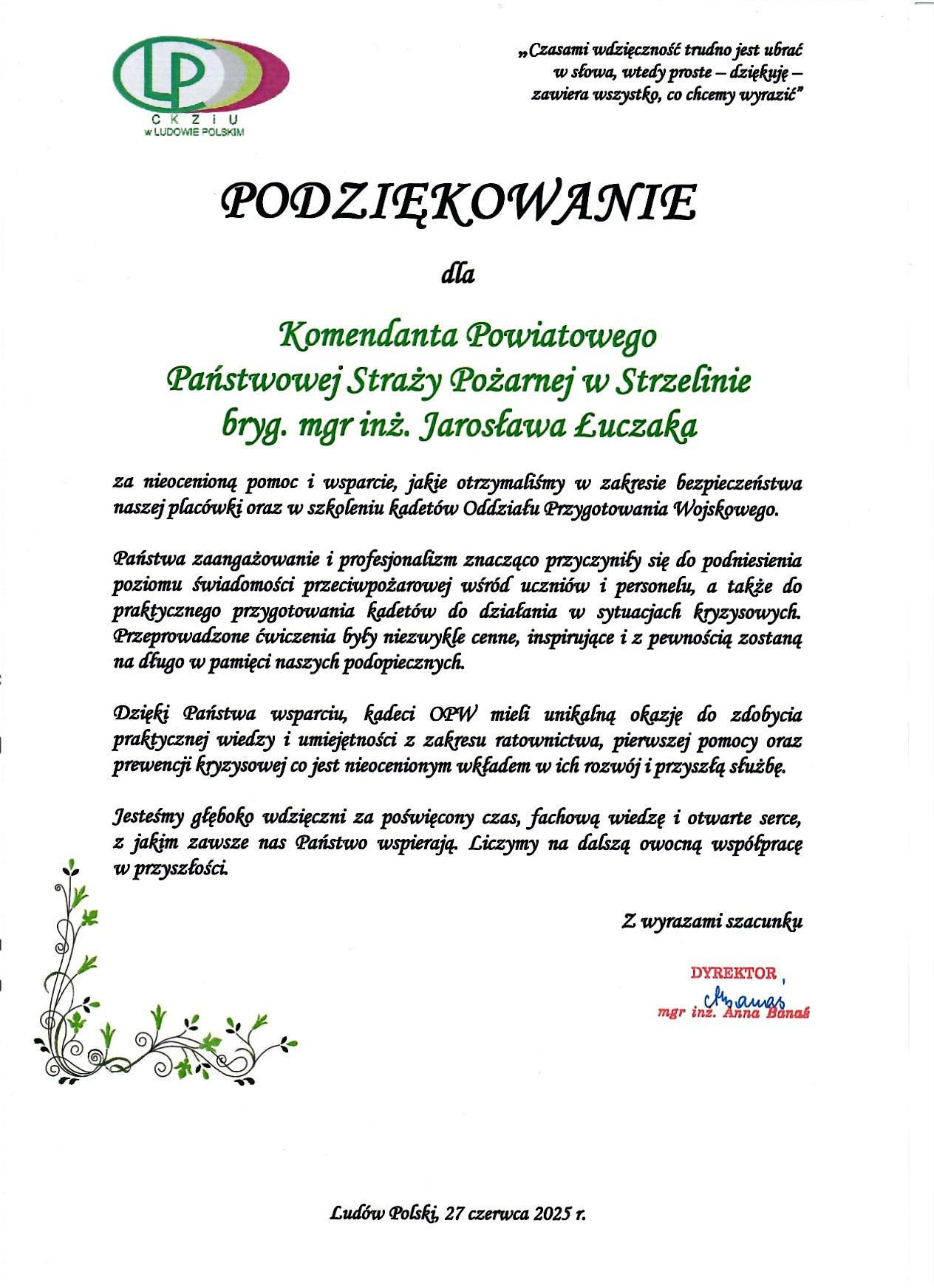 27 czerwca 2025 roku w Centrum Kształcenia Ustawicznego i Zawodowego w Ludowie Polskim odbyło się uroczyste zakończenie roku szkolnego 2024/2025. Na zaproszenie Pani Dyrektor Anna Banaś w uroczystości uczestniczyli: