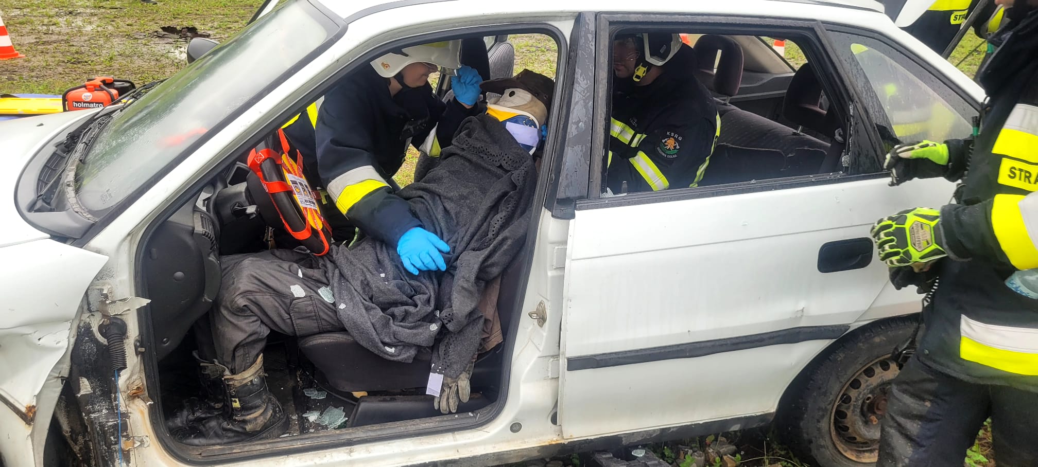 W trakcie drugiego epizodu ćwiczono prowadzenie działań z zakresu ratownictwa technicznego z użyciem sprzętu hydraulicznego. Zadaniem ratowników była ewakuacja poszkodowanej osoby z uszkodzonego wraku pojazdu a następnie udzielenie jej kwalifikowanej pomocy przedmedycznej.