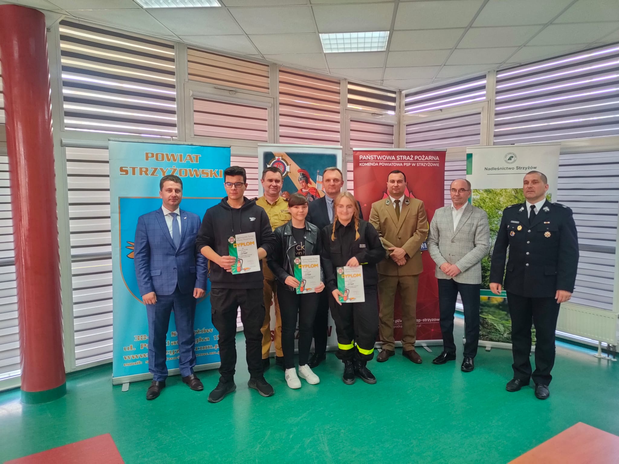 Nagrody zwycięzcom oraz wszystkim pozostałym uczestnikom wręczył Dyrektor Biura Posła Krzysztofa Sobolewskiego Paweł Ciszczoń, Wicestarosta Strzyżowski Tomasz Gancarski, Burmistrz Strzyżowa Waldemar Góra, Wójt Gminy Wiśniowa Marcin Kut, Przedstawiciel Nadleśnictwa Strzyżów Mateusz Czech, Prezes Zarządu Oddziału Powiatowego ZOSP RP w Strzyżowie dh Łukasz Gątarski, Komendant Powiatowy Państwowej Straży Pożarnej w Strzyżowie st. bryg. Rafał Rutyna.