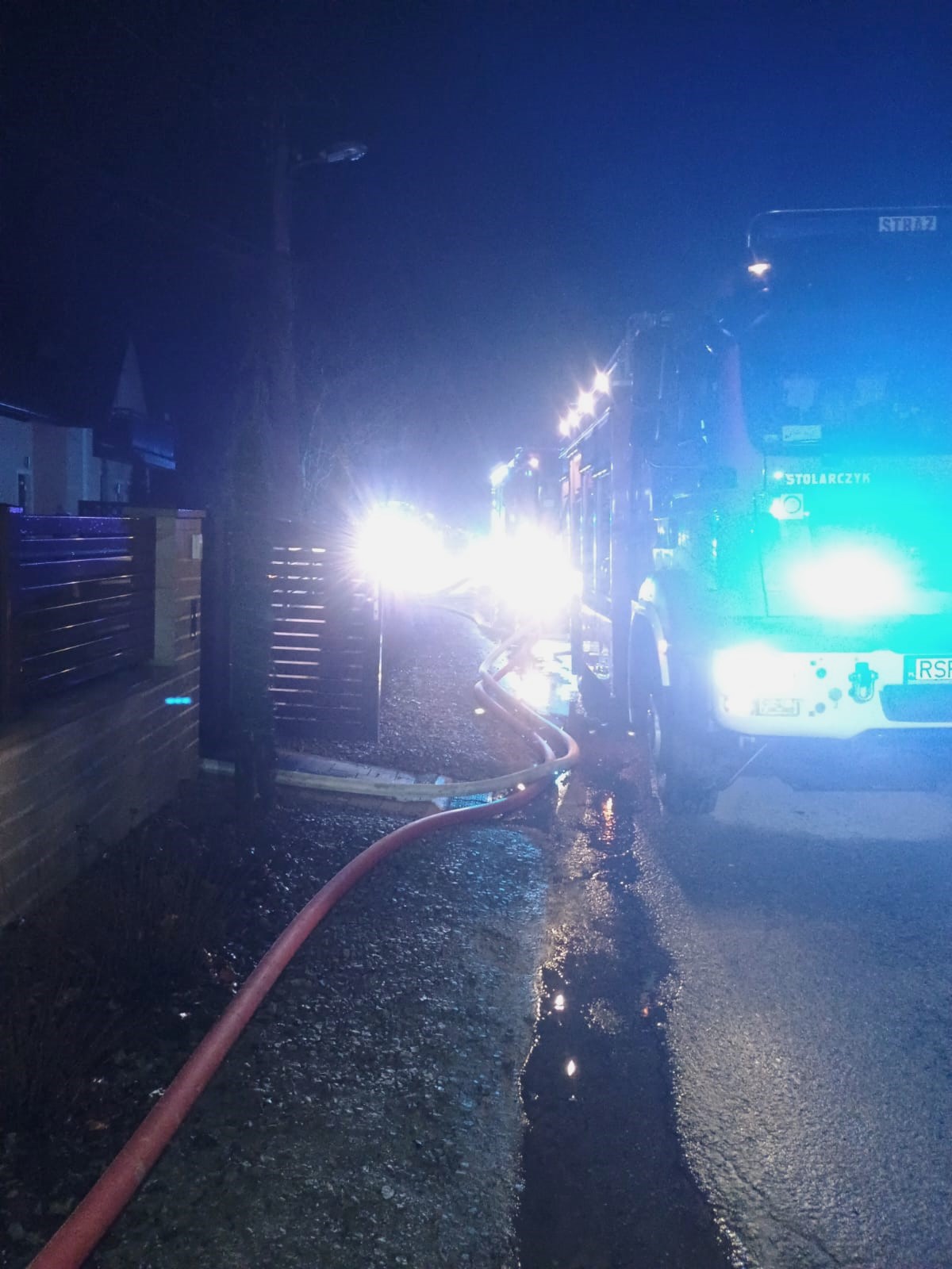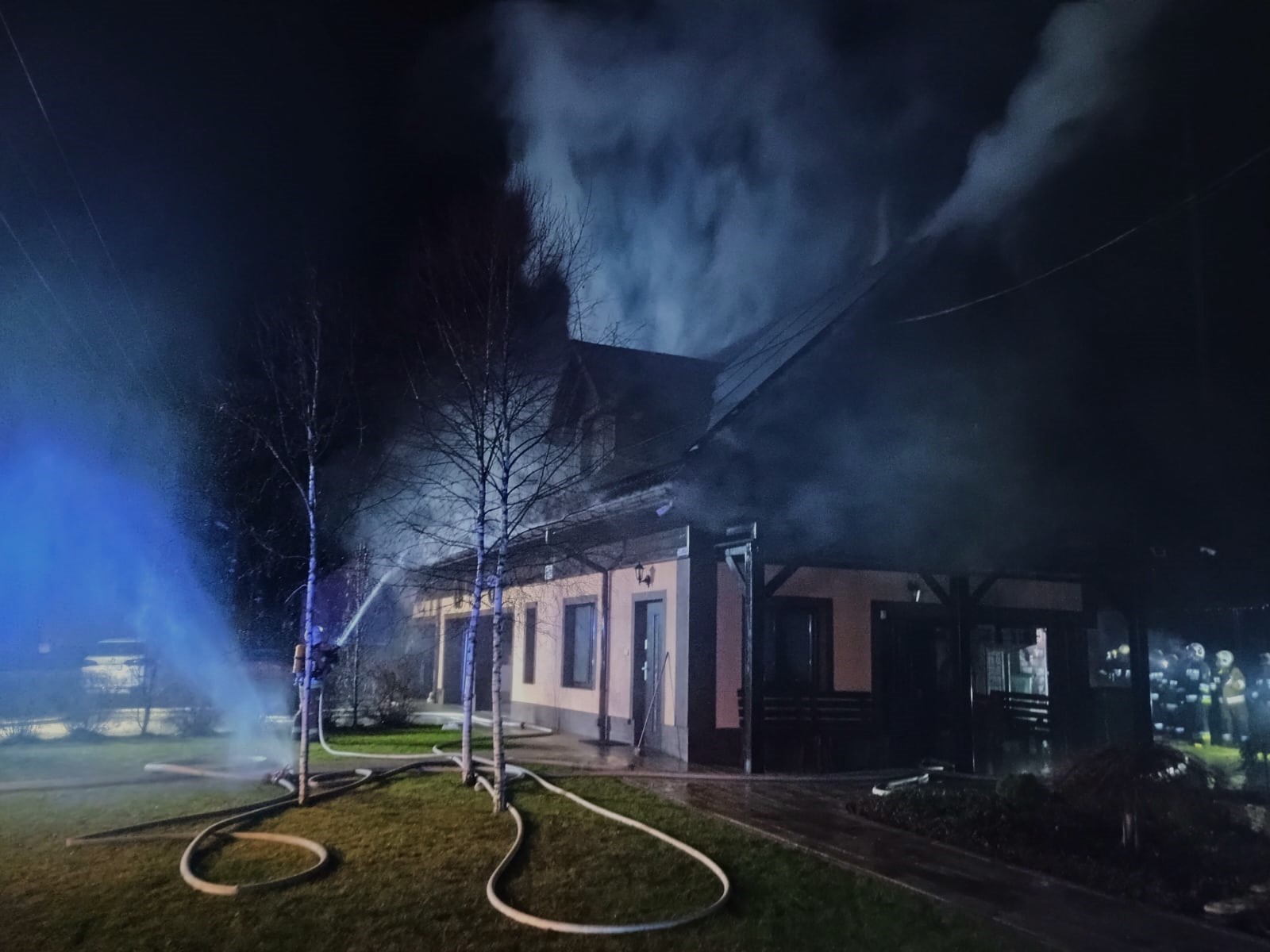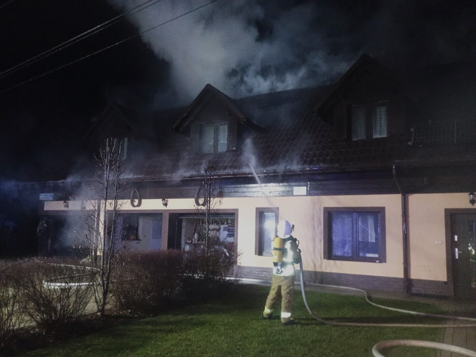 z terenu powiatu strzyżowskiego. Wszystkie osoby znajdujące się wewnątrz obiektu opuściły go przed przybyciem jednostek ochrony przeciwpożarowej i nie wymagały pomocy medycznej. Pożarem objęta była jedna ze ścian budynku a płomienie sięgały części dachu. Działania strażaków polegały na podaniu prądów gaśniczych na palący się obiekt, przeszukaniu budynku oraz chłodzeniu wodą znajdującego się w pobliżu zbiornika z gazem. Po ugaszeniu pożaru oddymiono budynek i skontrolowano za pomocą kamery termowizyjnej w celu wykluczenia ukrytych ognisk pożaru.