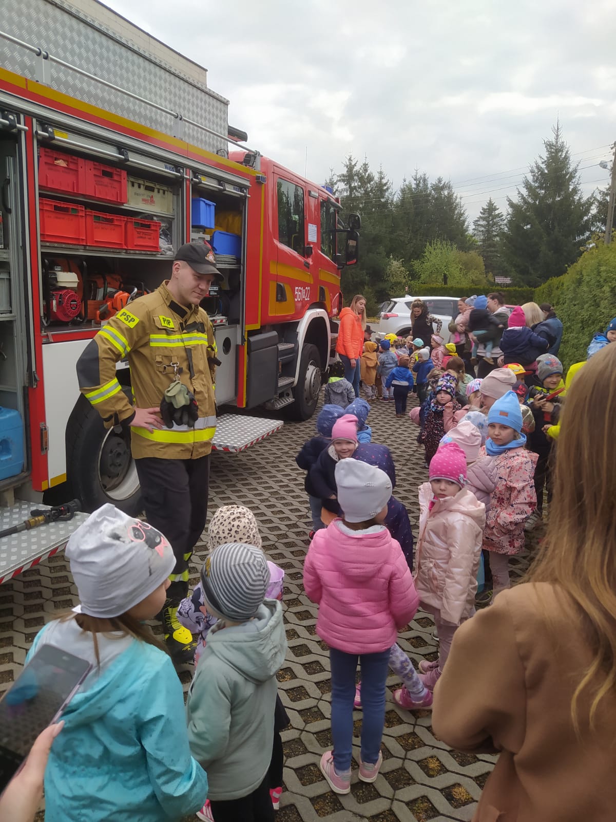 Zarówno przedszkolakom jak i uczniom zaprezentowano wyposażenie wozów strażackich, przedstawiono umundurowanie i ekwipunek strażaka-ratownika. Następnie zainteresowani mieli możliwość wejścia do samochodu ratowniczo-gaśniczego, przymierzenia przygotowanego dla nich umundurowania i własnoręcznego użycia podręcznego sprzętu gaśniczego. Oprócz zapoznania się z pracą strażaka, dzieci i młodzież uzyskały cenną wiedzę na temat zasad bezpieczeństwa, dowiedziały się jak należy zachować się w trakcie zagrożenia, a także zostały zaznajomione z numerami alarmowymi.