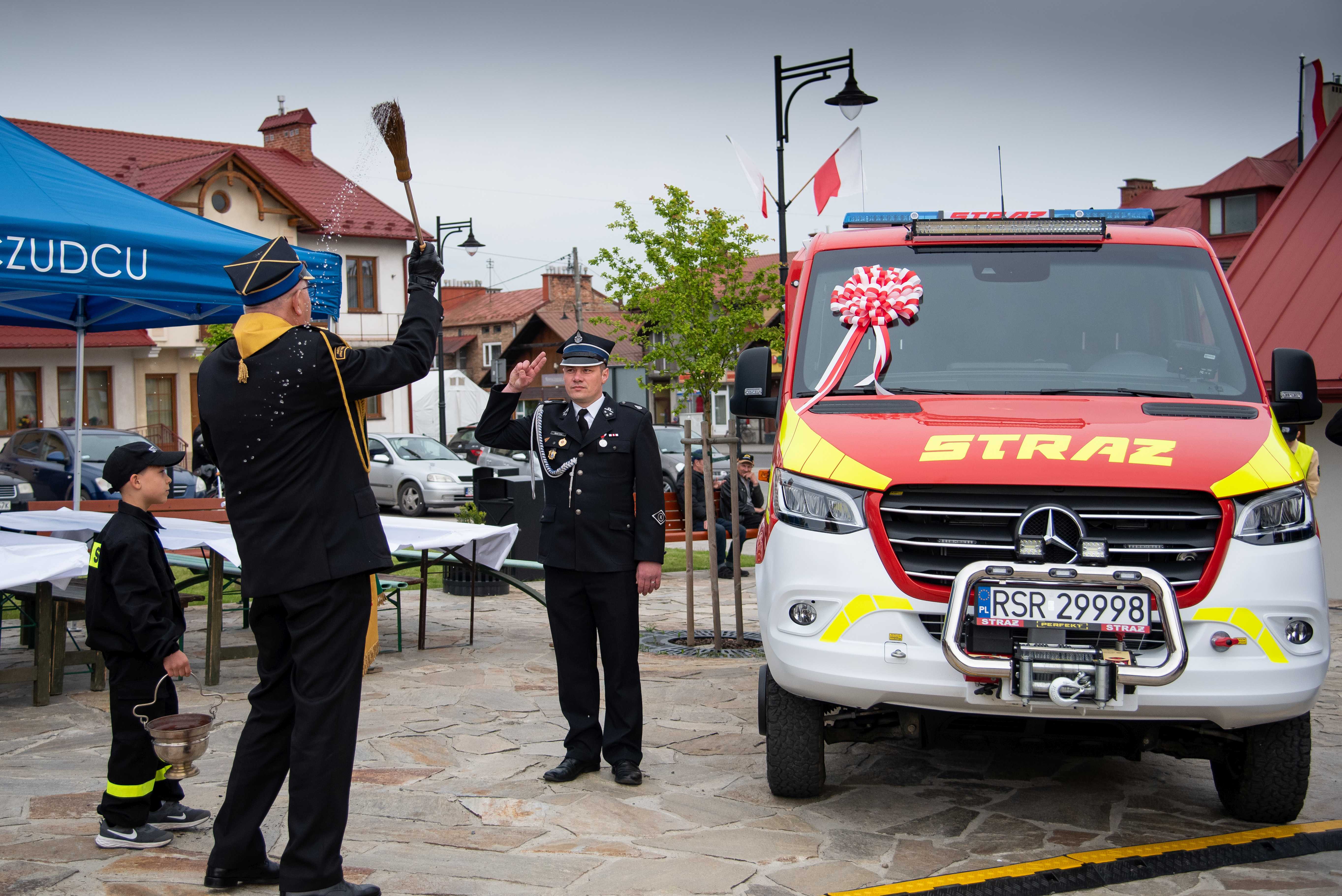 Poświęcenia nowego samochodu dokonał Krajowy Kapelan Strażaków ks. st. bryg. dr Jan Krynicki w asyście kapelanów, powiatowego i gminnego.