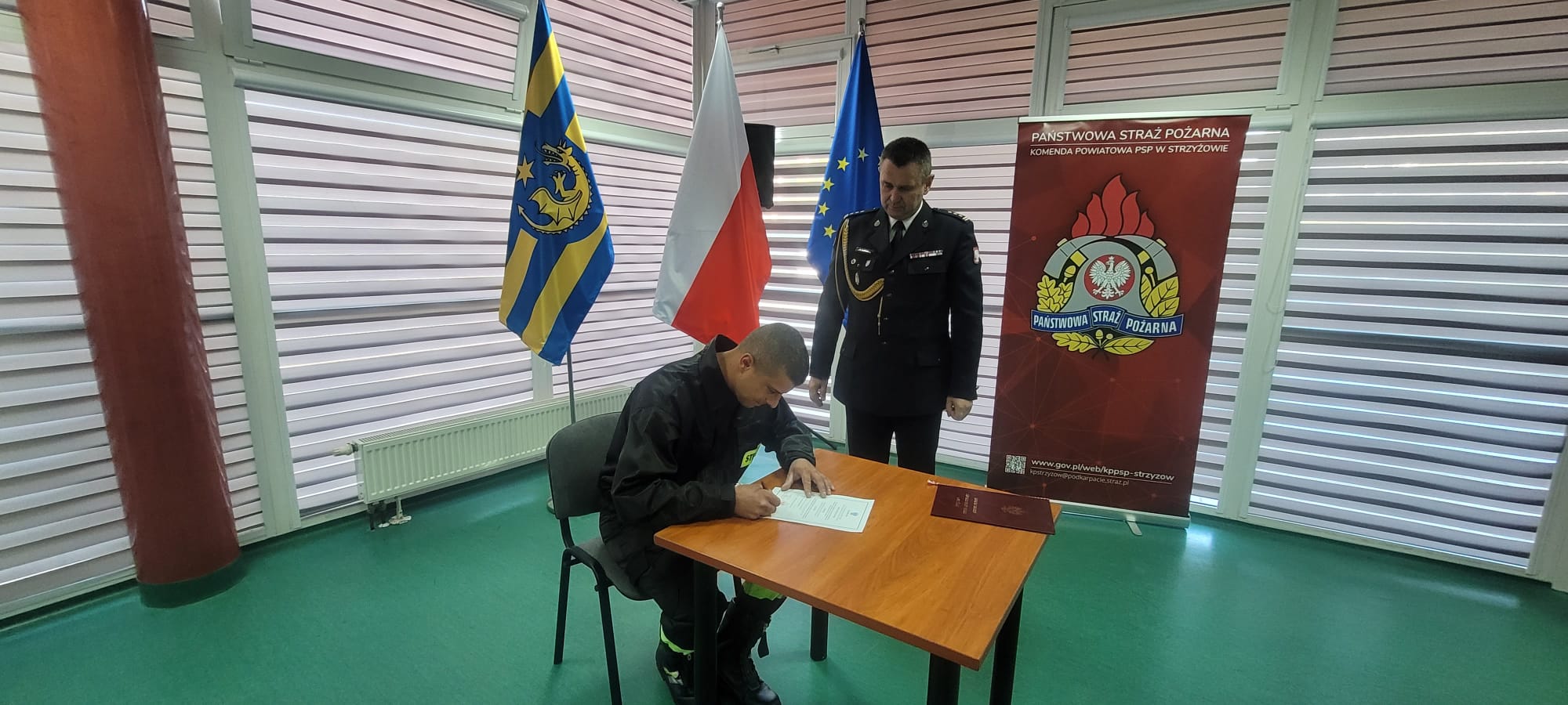 4 września odbyła się uroczysta zbiórka z okazji złożenia ślubowania przez nowo przyjętych strażaków w Komendzie Powiatowej Państwowej Straży Pożarnej w Strzyżowie.