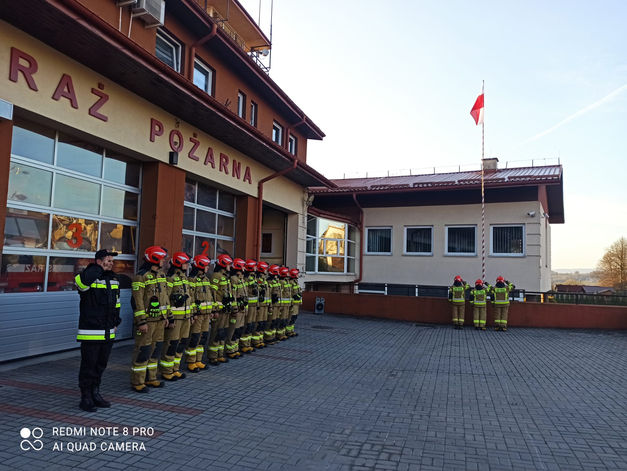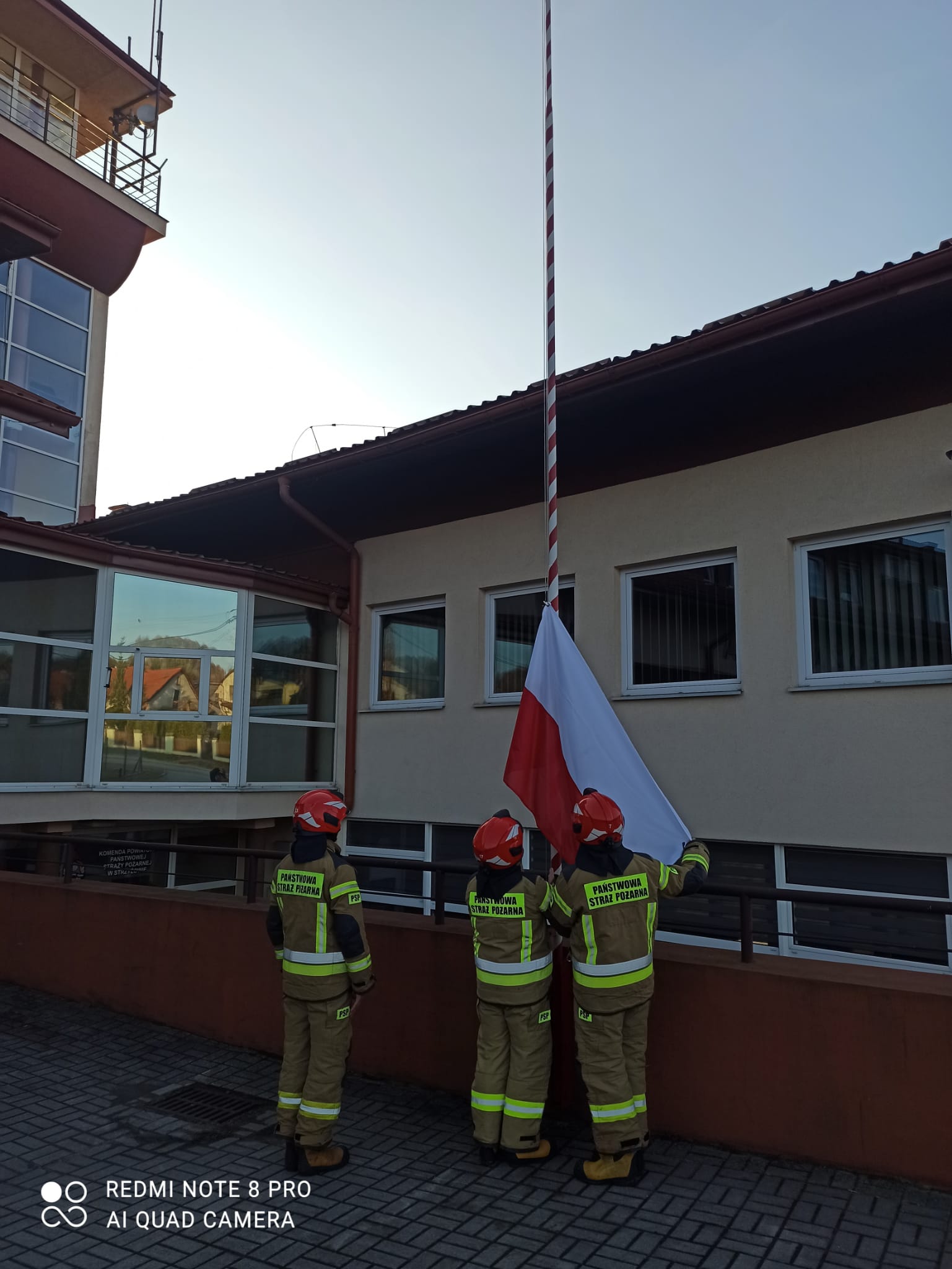Z tej okazji Strażacy Komendy Powiatowej PSP w Strzyżowie podczas uroczystej zbiórki dokonali uroczystego podniesienia Flagi Panstwowej oraz odśpiewania Hymnu Państwowgo.