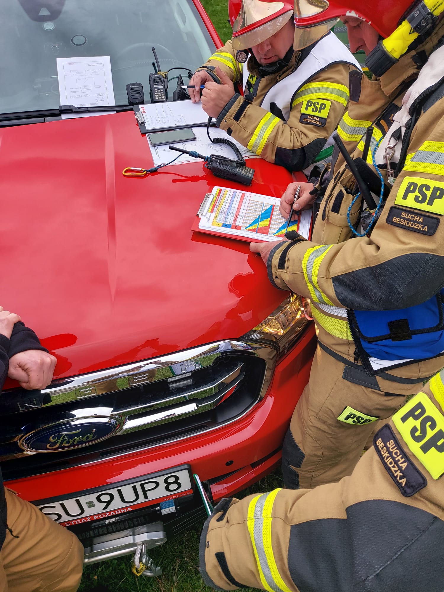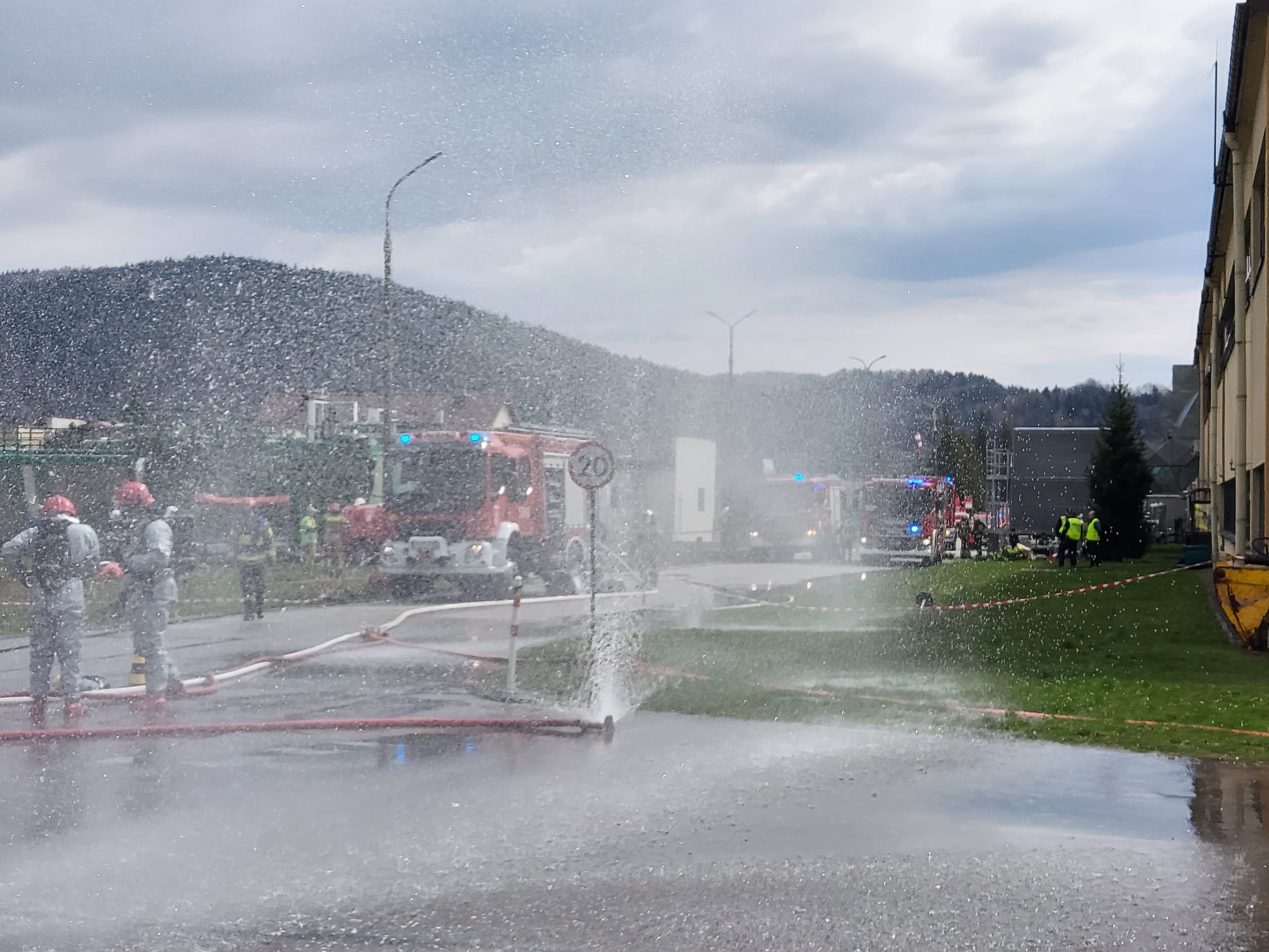 Państwowa Straż Pożarna w Suchej Beskidzkiej dziękuję Prezesowi Zarządu firmy FABIOS SA za możliwośc zorganizowania ćwiczeń na terenie zakładu oraz komendantowi powitowemu Policji za wspólne ćwiczenia.