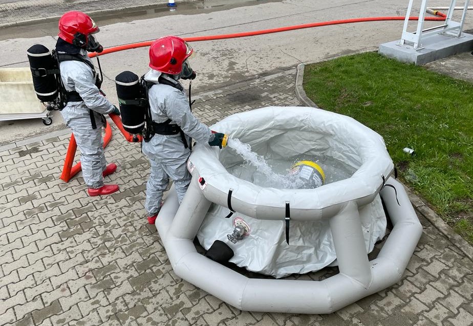 14 kwietnia 2023r. o godzinie 10:00 na terenie zakładu FABIOS SA w Białce odbyły się ćwiczenia pod kryptonimem AMONIAK 2023.