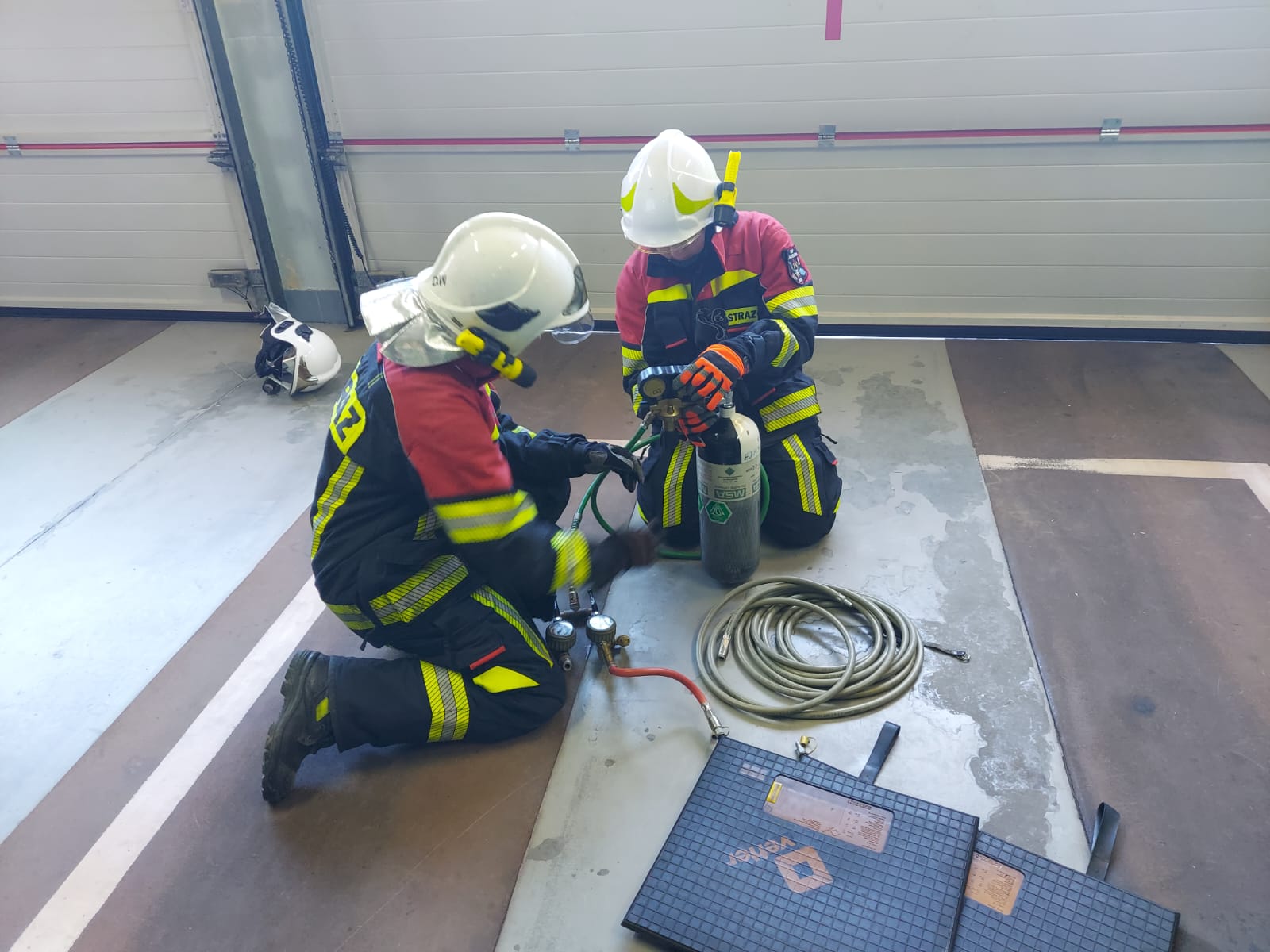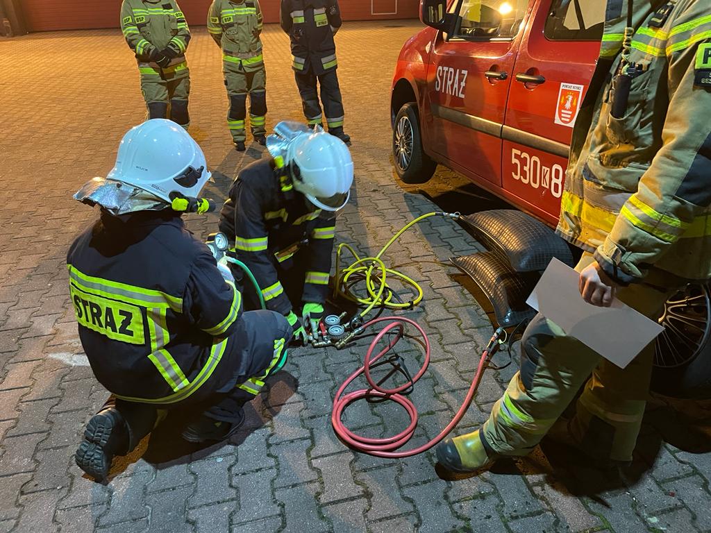- w ramach szkolenia odbyli test w komorze dymowej w Wojewódzkim Ośrodku Szkolenia PSP w Krakowie. Celem testu w komorze dymowej było przygotowanie i sprawdzenie strażaków-ratowników w zakresie umiejętności prowadzenia działań ratowniczo-gaśniczych w sprzęcie ochrony układu oddechowego i ubraniach ochronnych podczas pracy przy dużym obciążeniu psychofizycznym (zmęczenie, brak widoczności, zadymienie, ograniczona przestrzeń, podwyższona temperatura, hałas), a także poruszania się w nieznanym i skomplikowanym przestrzennym układzie komunikacji poziomej i pionowej,