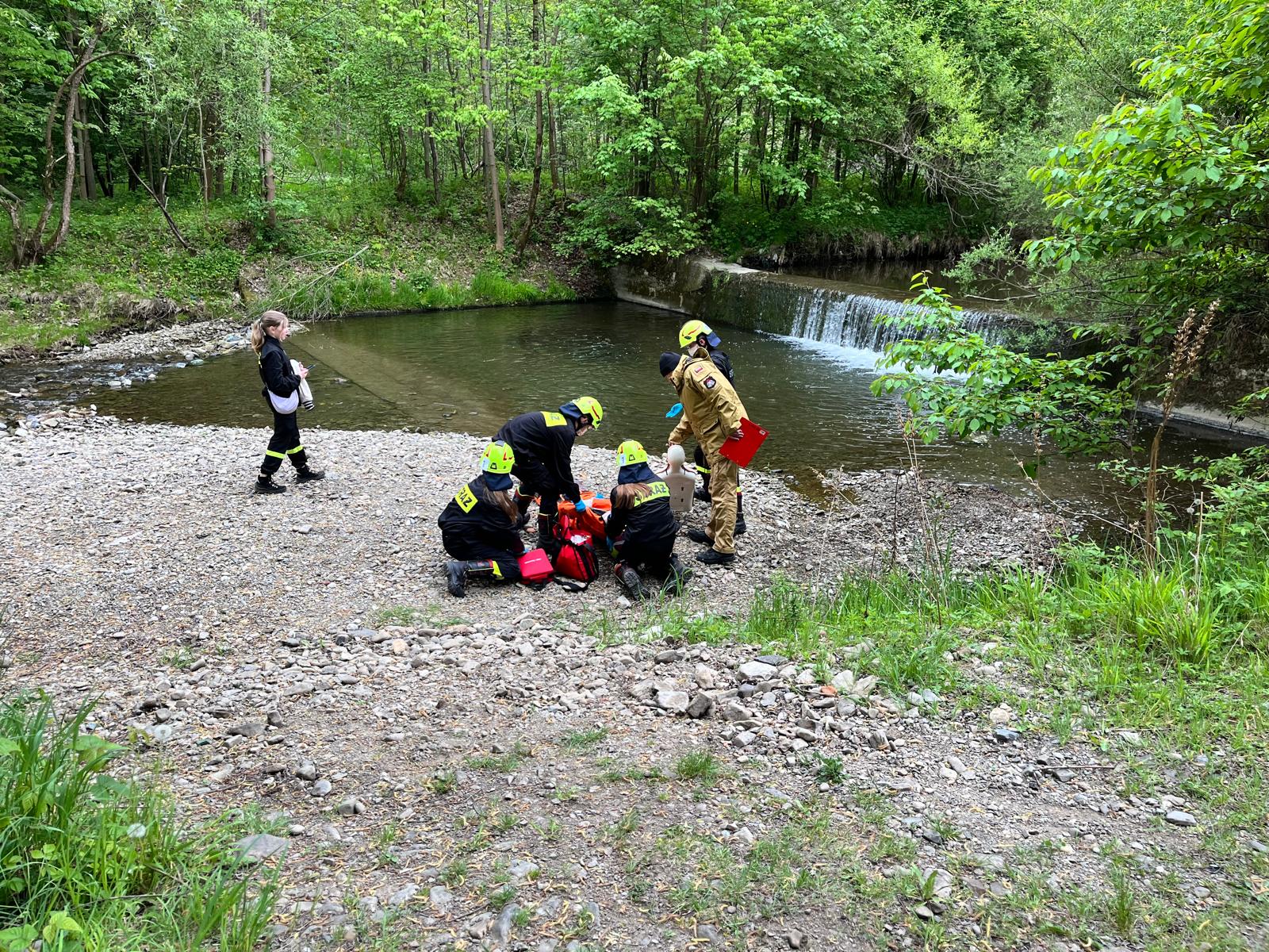 Turysta natknął się na leżącego nad rzeką, nieprzytomnego mężczyznę z nogami zanurzonymi w wodzie. Konieczna była ocena stanu poszkodowanego i podjęcie odpowiednich działań ratunkowych.