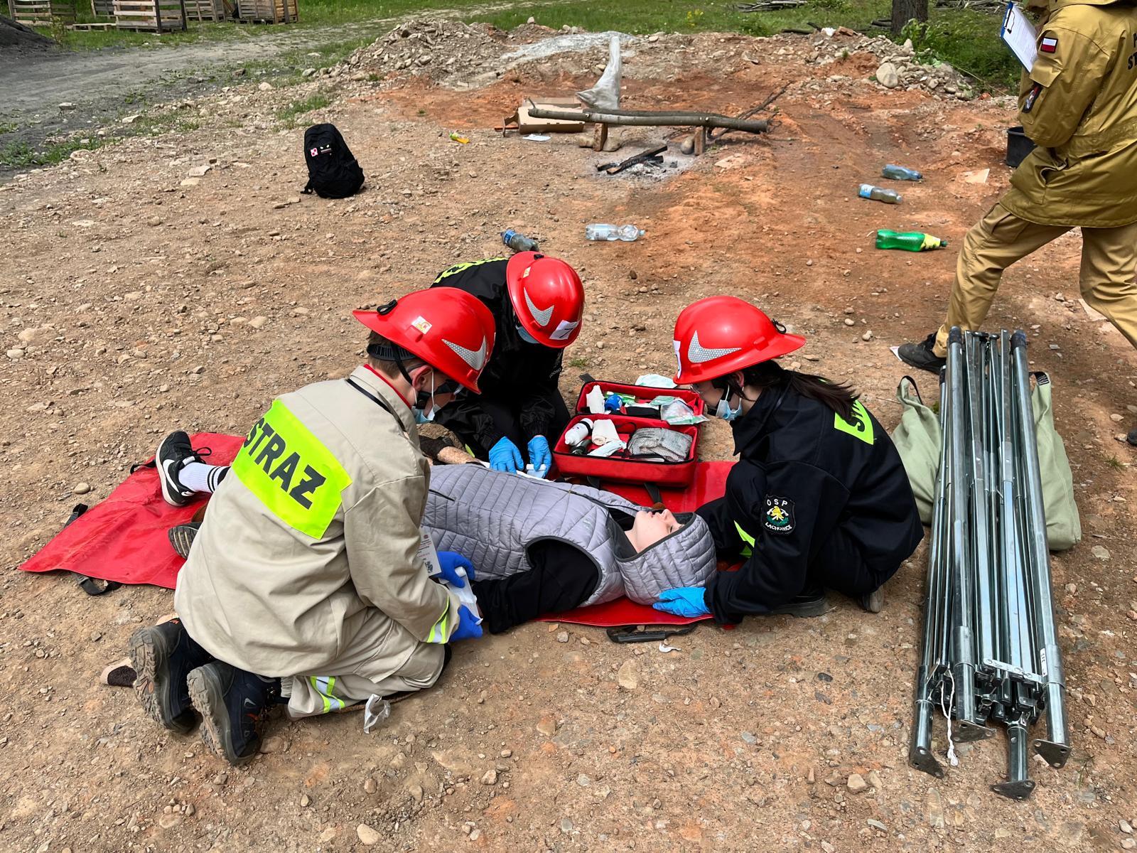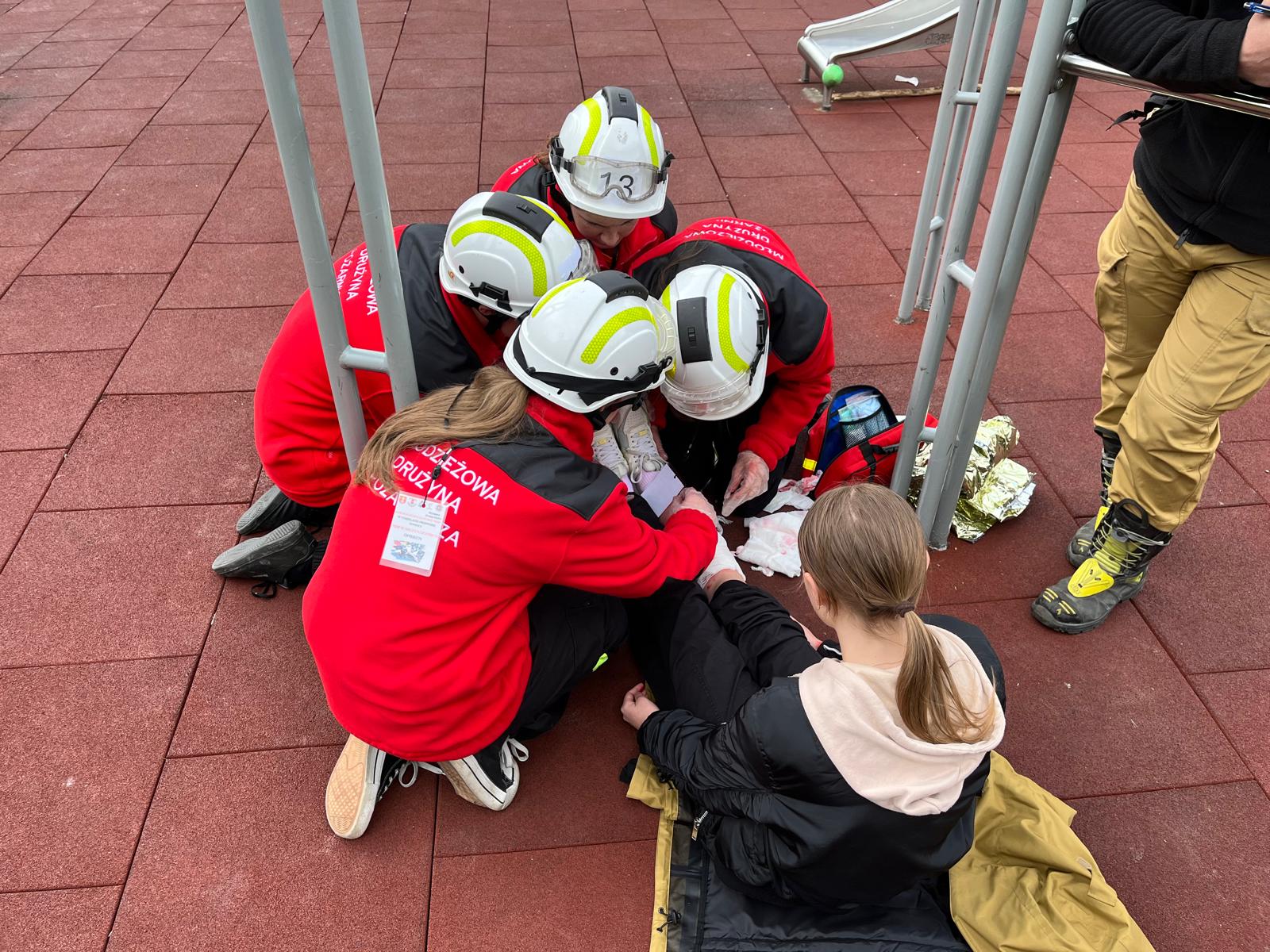 Nastolatka bawiąca się na placu zabaw spadła z drążka do ćwiczeń, doznając urazu. Uczestnicy musieli ocenić stan dziewczynki i przeprowadzić podstawowe czynności ratunkowe.