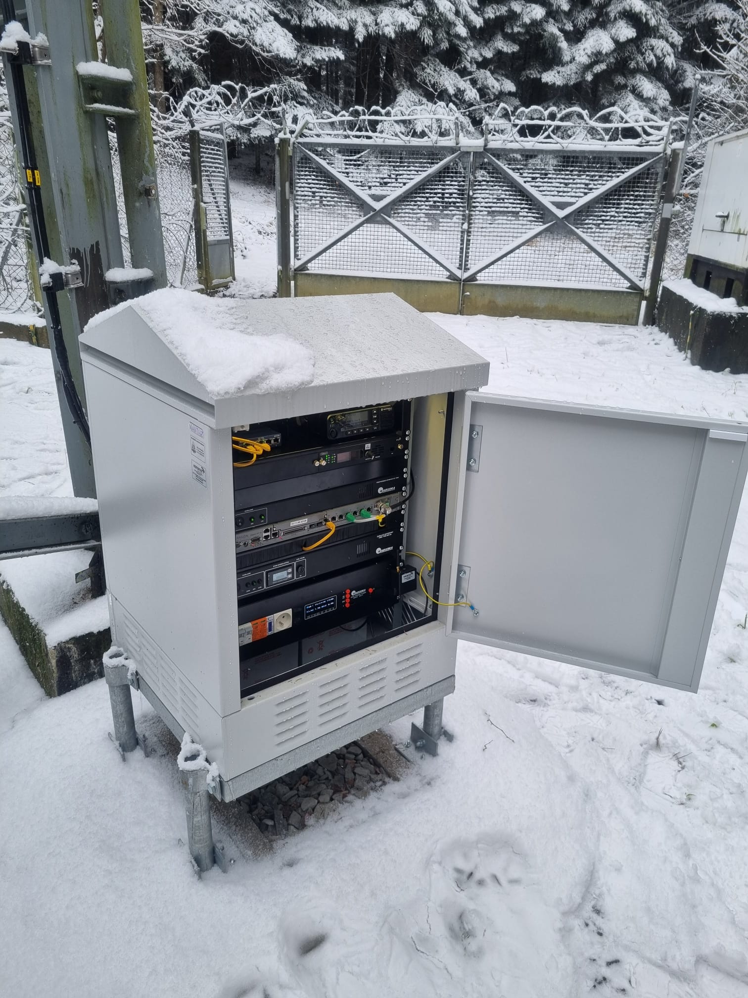 - szafę Rack 19” (Outdoor) z zapasem miejsca na przyszłą rozbudowę, wyposażoną w ochronę przed warunkami atmosferycznymi (IP54), system grzania, wentylacji oraz podest montażowy,