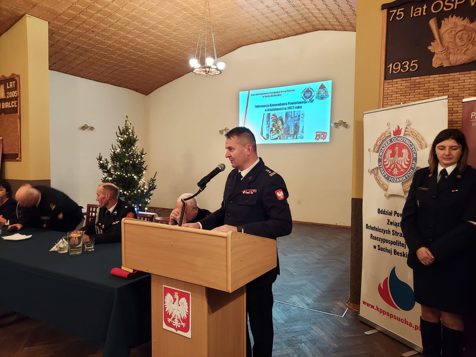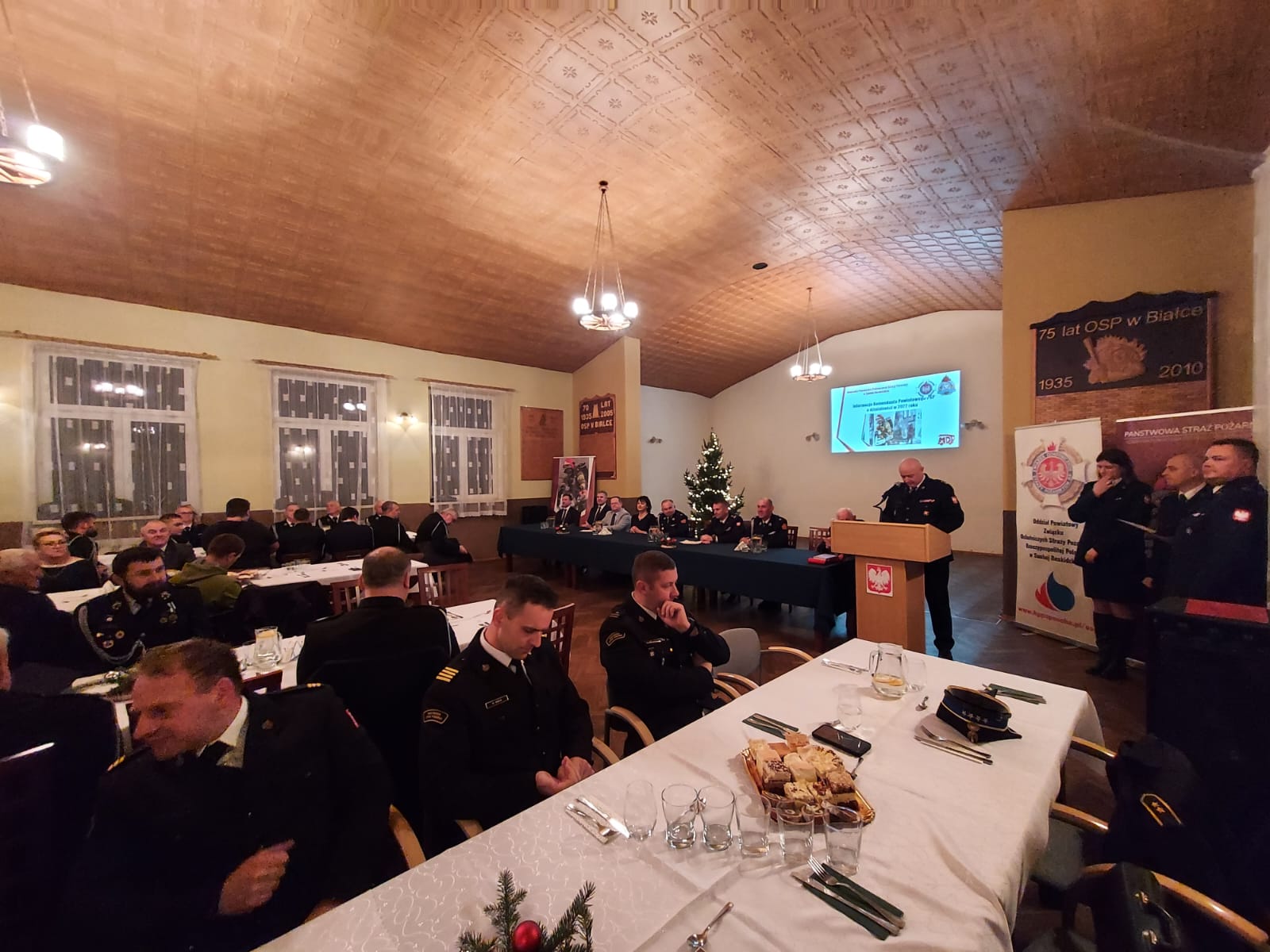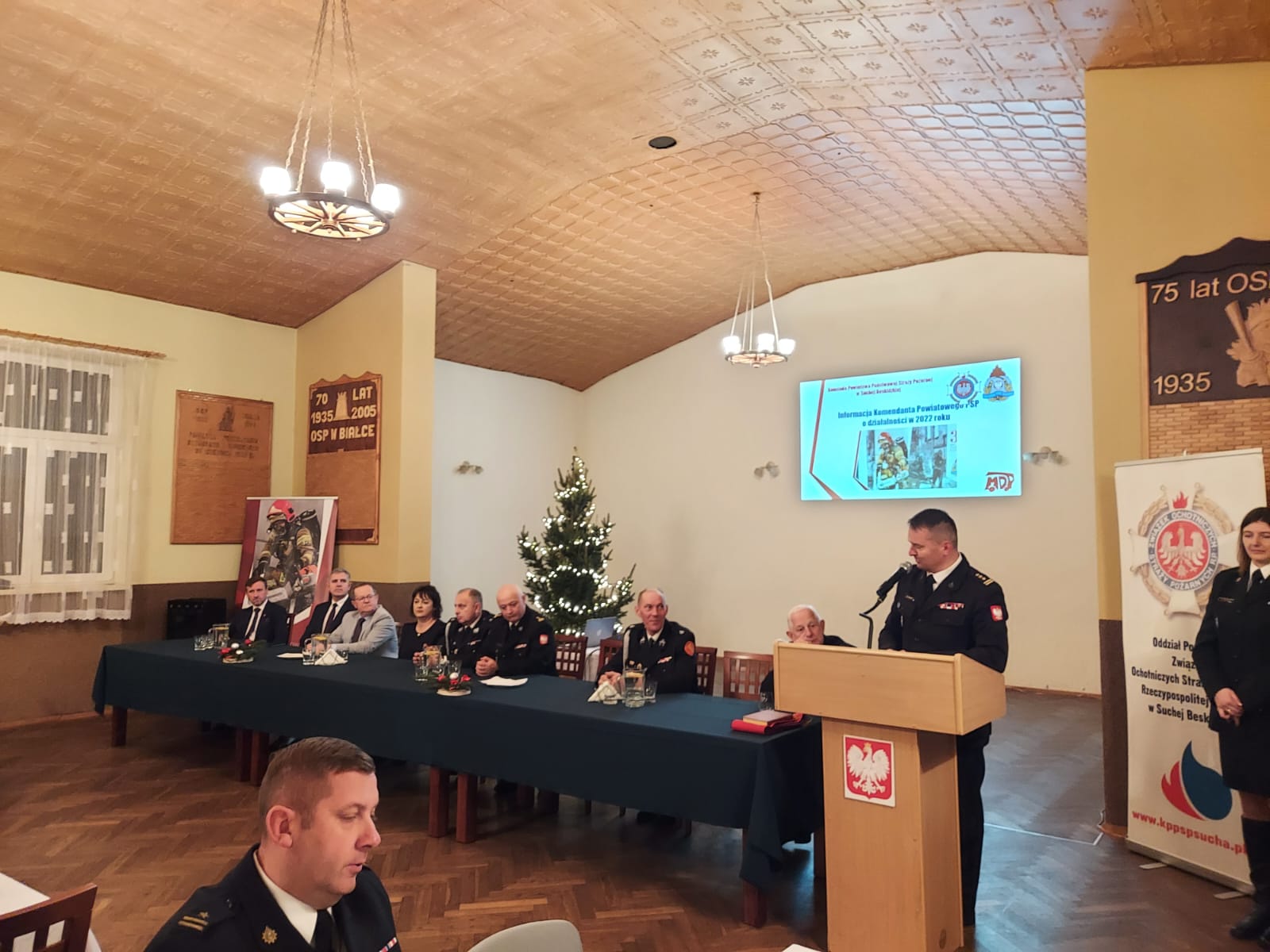 16 grudnia o godz. 16.00 na sali Ochotniczej Straży Pożarnej w Białce odbyła się uroczysta odprawa podsumowująca działalność jednostek ochrony przeciwpożarowej powiatu suskiego w 2022r. połączona ze spotkaniem świąteczno – opłatkowym. W naradzie tradycyjnie uczestniczyli Prezesi, Naczelnicy oraz Komendanci Gminni OSP.