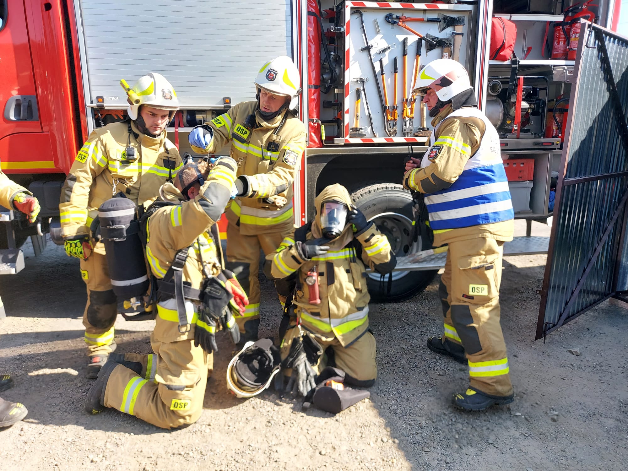 W ramach zadania pożaru, uczestnicy zmierzyli się z wyjątkowo trudnym zadaniem: symulowanym pożarem pustostanu. Zadanie to obejmowało silne zadymienie, zablokowane drzwi i brak informacji o odcięciu mediów. Jedyne możliwe wejście dla ratowników było przez dziurę w oknie. W środku znajdowała się jedna osoba poszkodowana.