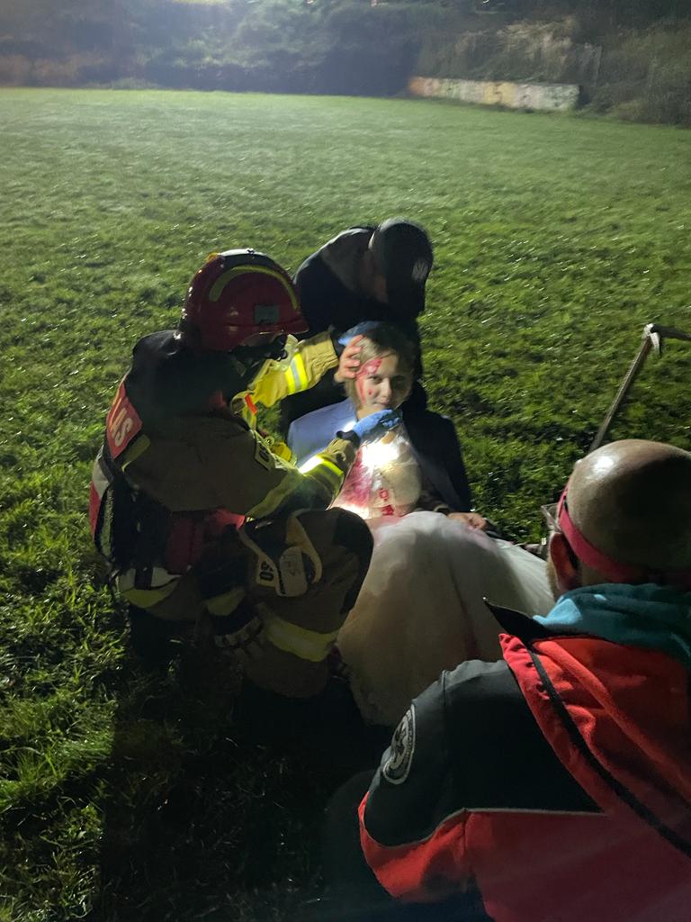 Podczas przyjęcia weselnego na uczestników spadła konstrukcja poszycia dachowego namiotu gastronomicznego. Większość uczestników zdążyła zbiec, jednak kilka osób zostało poszkodowanych. Od będących na miejscu świadków przybyły na miejsce zastęp otrzymuje informację iż brakuje jednego albo dwóch uczestników.