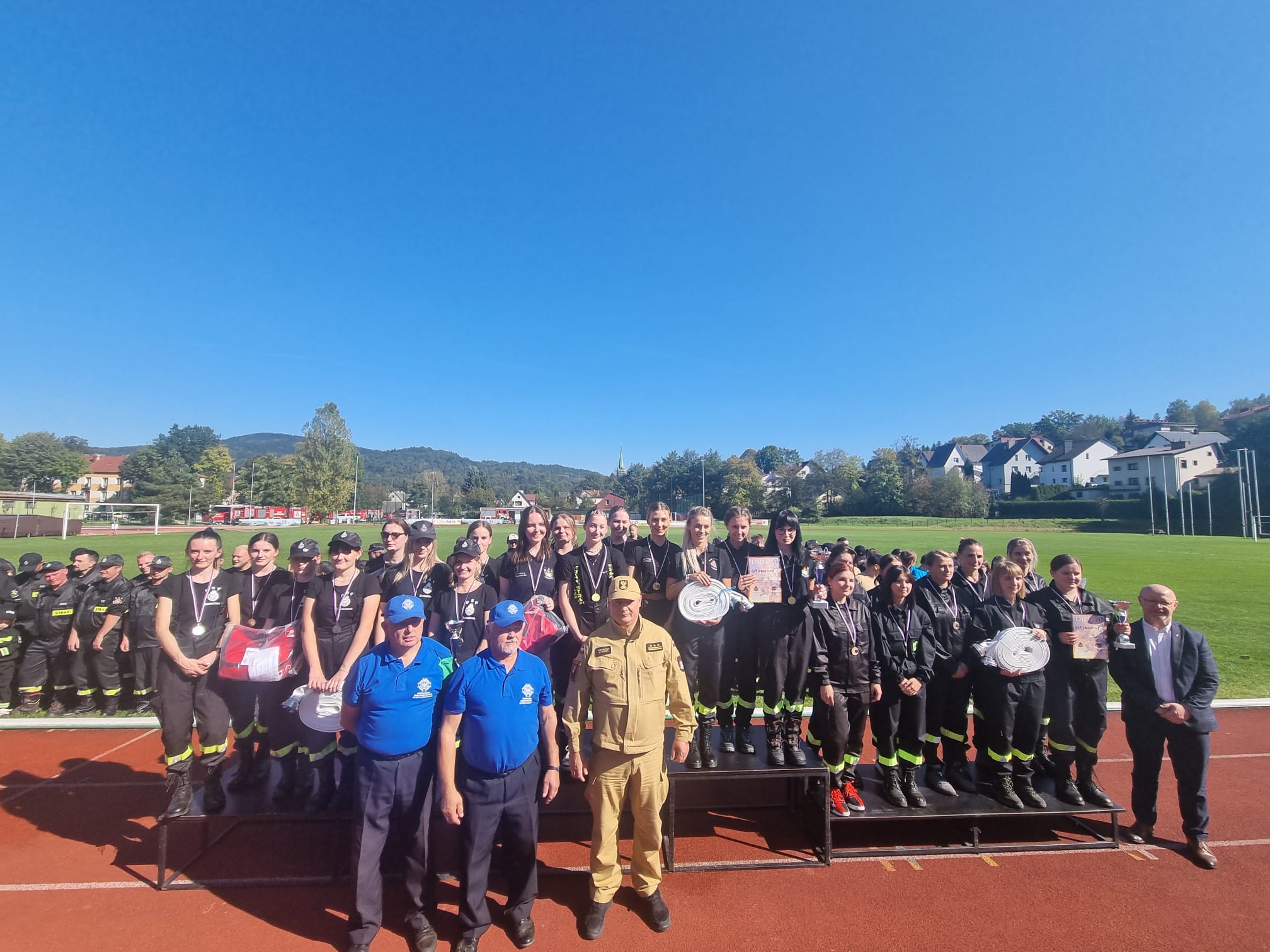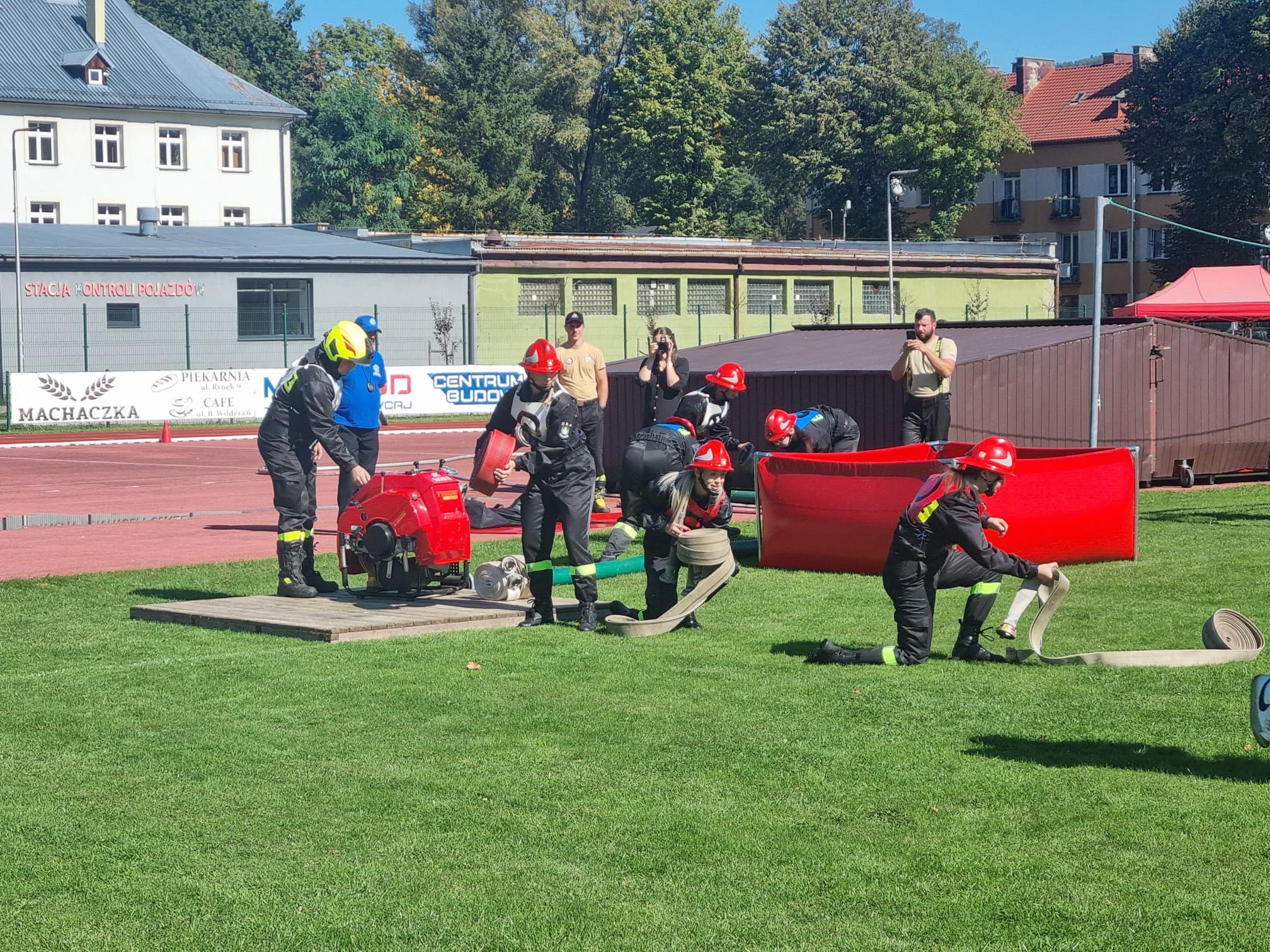 Na koniec zawodów drużyna kobieca z OSP Jordanów zaprezentowała start zgodny z międzynarodowym regulaminem CTIF.