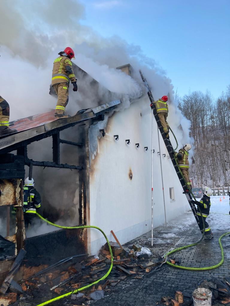 Na miejsce zdarzenia niezwłocznie skierowano cały stan osobowy z Jednostki Ratowniczo-Gaśniczej w Suchej Beskidzkiej oraz Ochotnicze Straże Pożarne z całej gminy Budzów i OSP Zembrzyce. Po dotarciu na miejsce, strażacy zastali rozwinięty pożar budynku dydaktyczno-warsztatowego, z widocznymi płomieniami na zewnątrz. Na szczęście, nie odnotowano osób poszkodowanych.