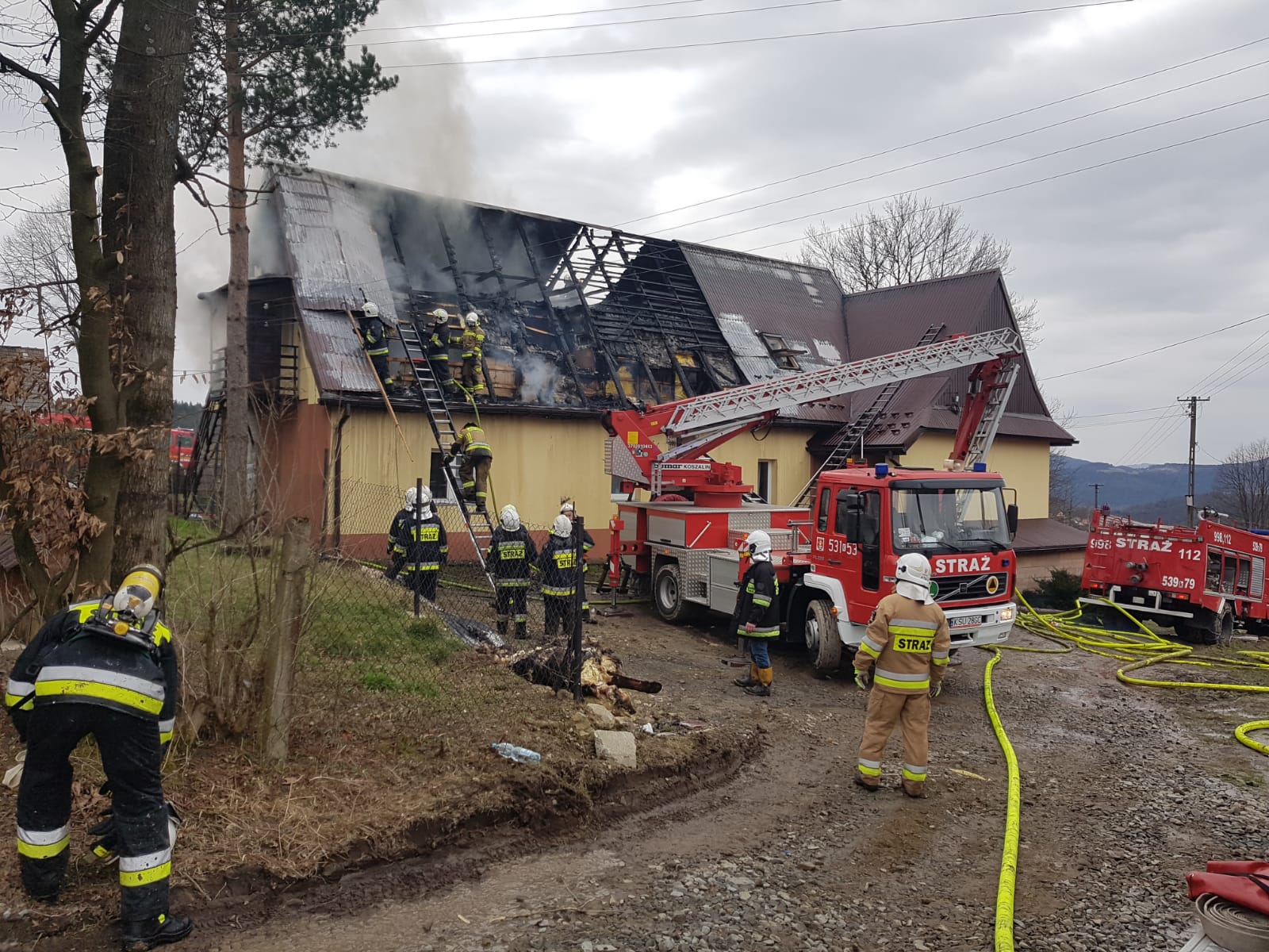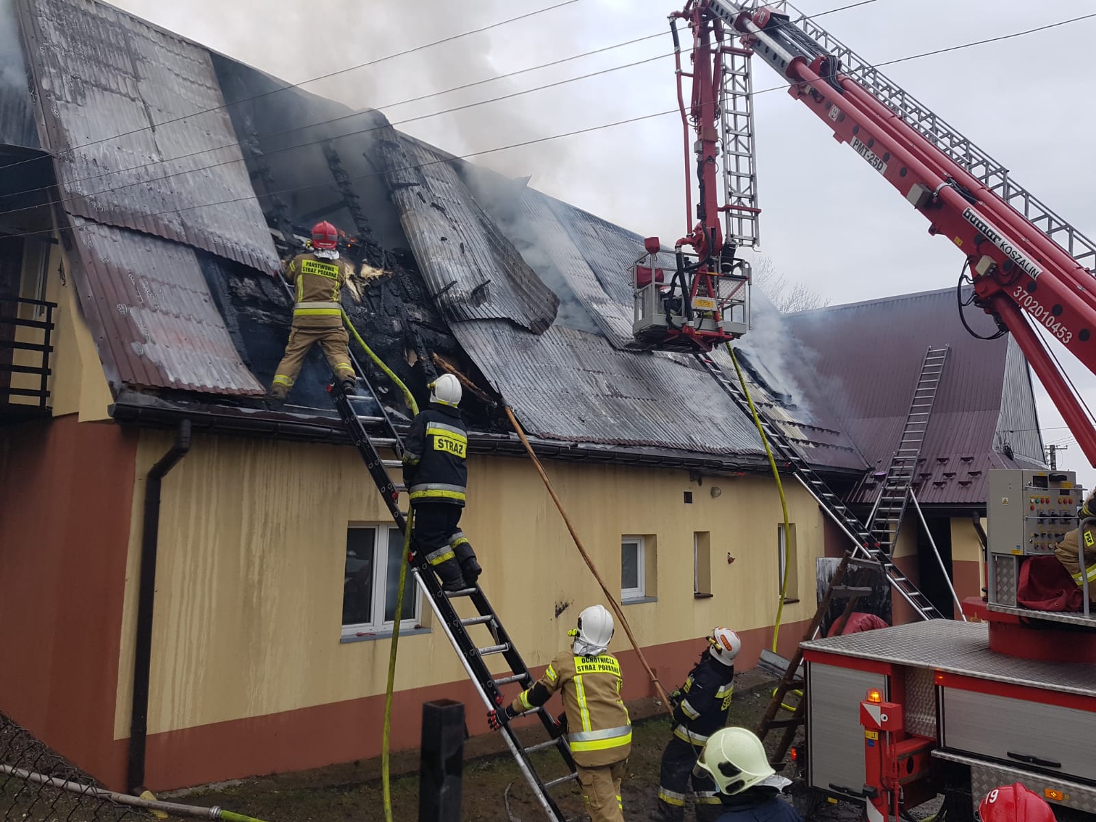 Po dojechaniu na miejsce strażacy zastali pożar na strychu i poddaszu użytkowym w budynku mieszkalnym. Dach pokryty blachą, ogień nie wyszedł na zewnątrz, blacha przegrzana na całej powierzchni powyżej poddasza użytkowego. W budynku mieszkała 15 osobowa rodzina, która opuściła budynek przed przybyciem straży. Brak osób poszkodowanych.