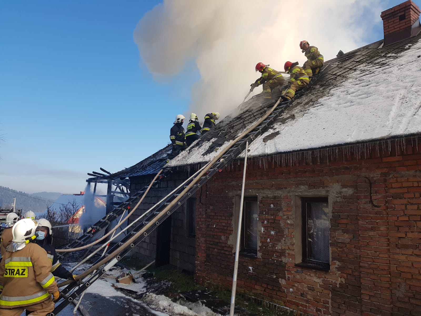 Na miejsce zostały zadysponowane zastępy z Jednostki Ratowniczo – Gaśniczej w Suchej Beskidzkiej, Ochotniczych Straży Pożarnych z: Lachowic, Kurowa, Kukowa, Stryszawy oraz Huciska.
