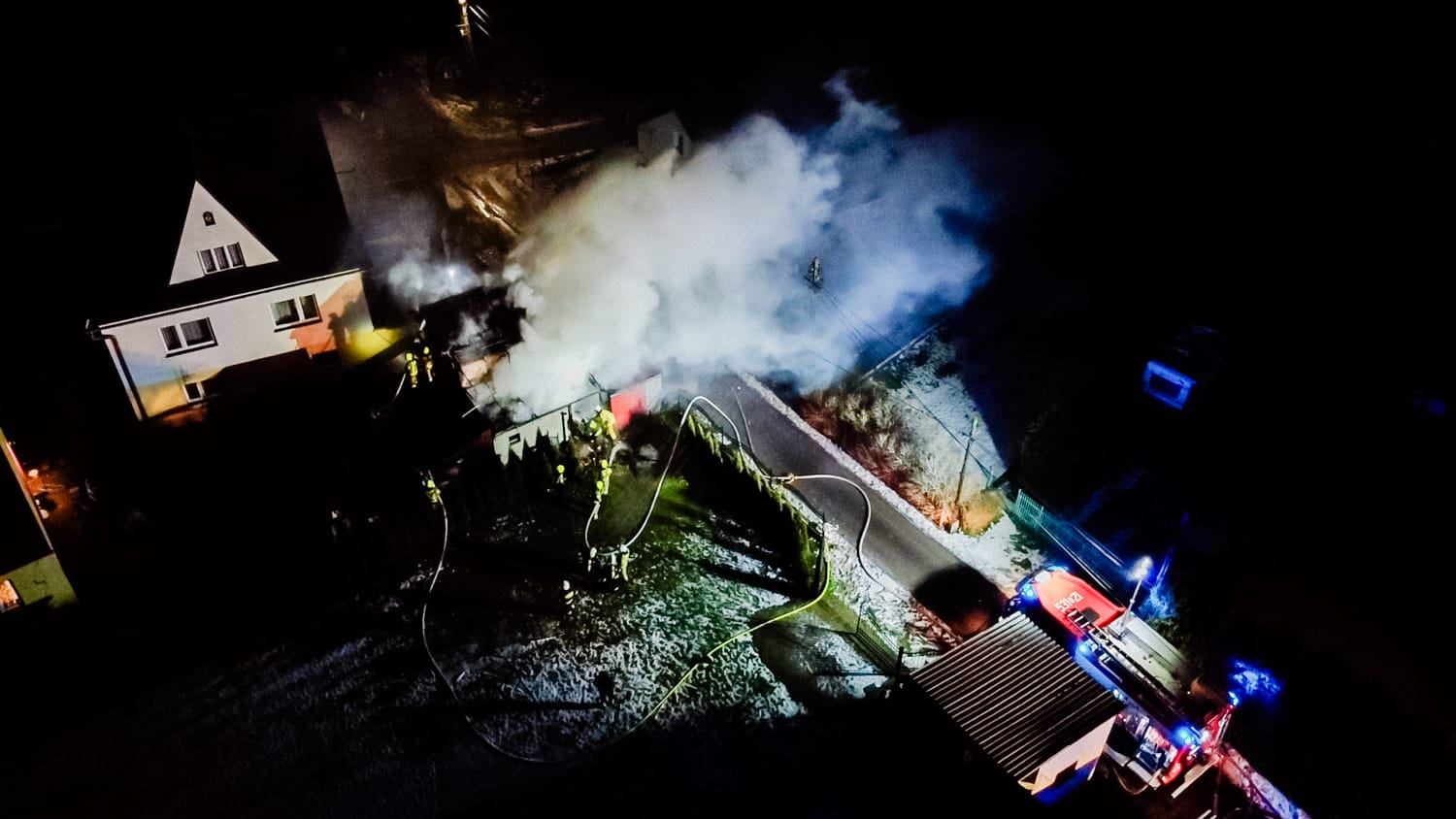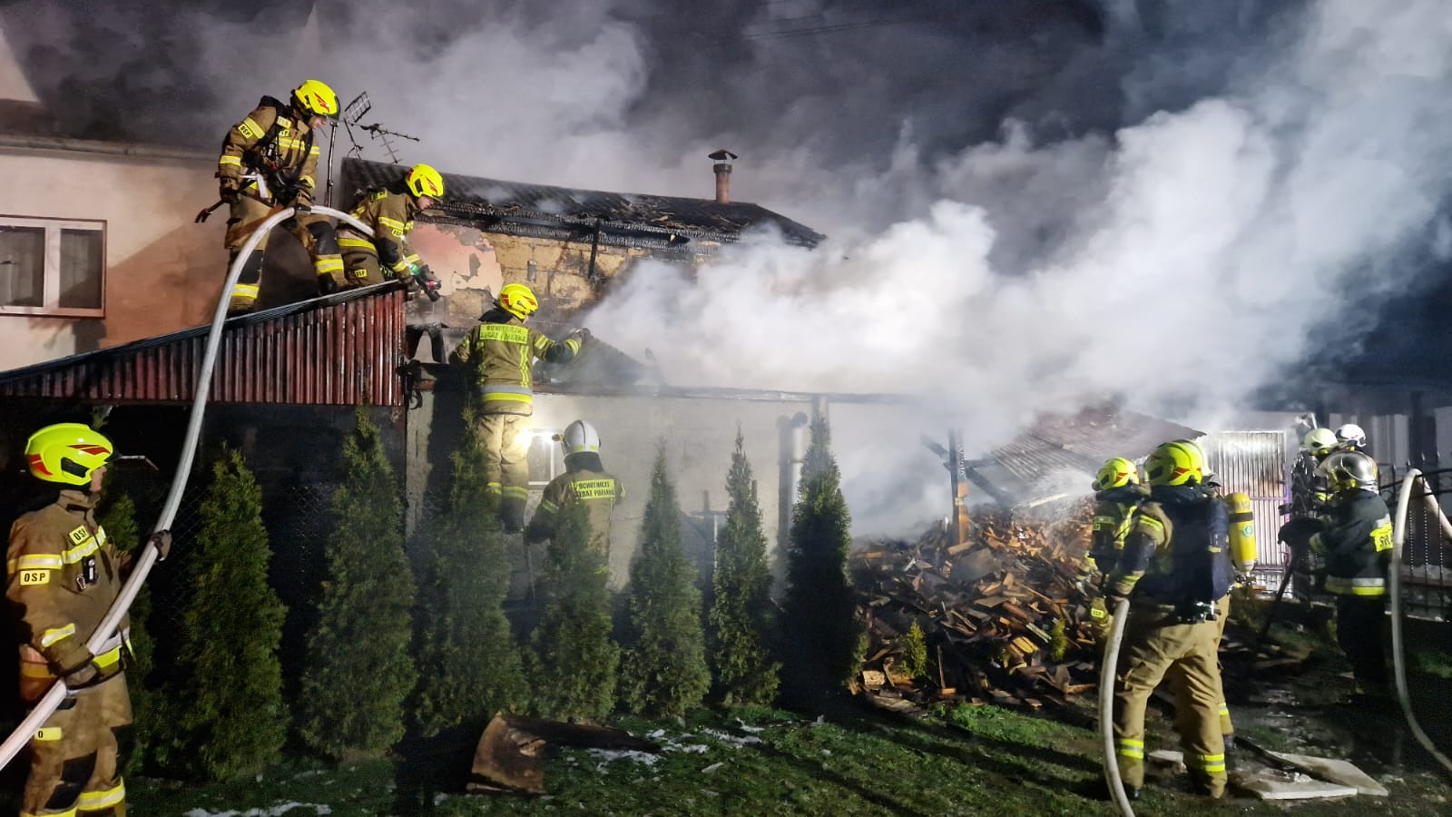 W dniu 24 stycznia 2024 roku o godzinie 19:31 dyżurny z Stanowiska Kierowania Komendanta Powiatowego Państwowej Straży Pożarnej w Suchej Beskidzkiej otrzymał zgłoszenie z Wojewódzkiego Centrum Powiadamiania Ratunkowego o wybuchu pożaru w warsztacie obok domu mieszkalnego w Stryszawie. Na miejsce natychmiast skierowano wszystkich dostępnych strażaków z Jednostki Ratowniczo-Gaśniczej w Suchej Beskidzkiej oraz pojazdy i strażaków z Ochotniczych Straży Pożarnych w Stryszawie i Kukowie.