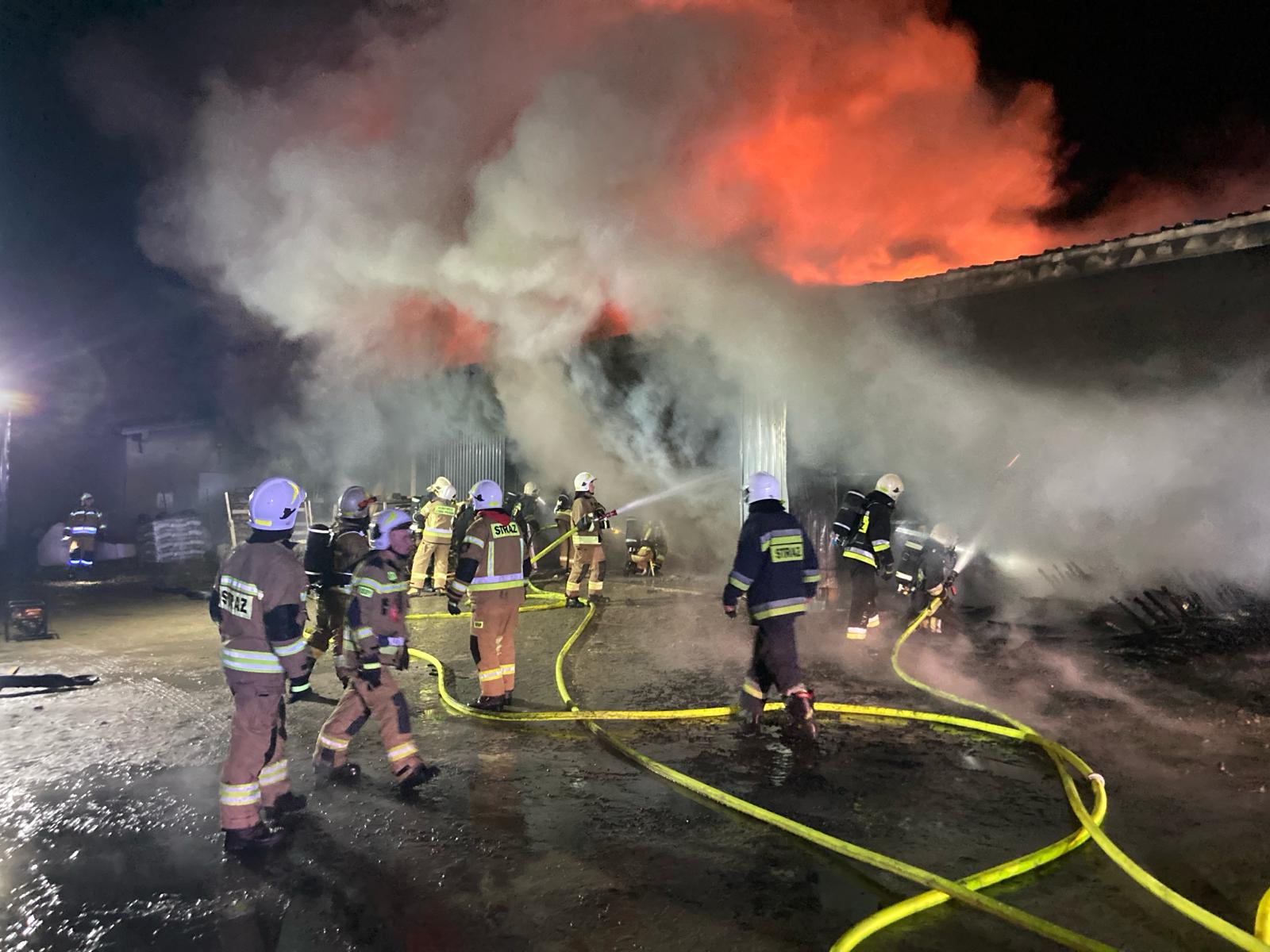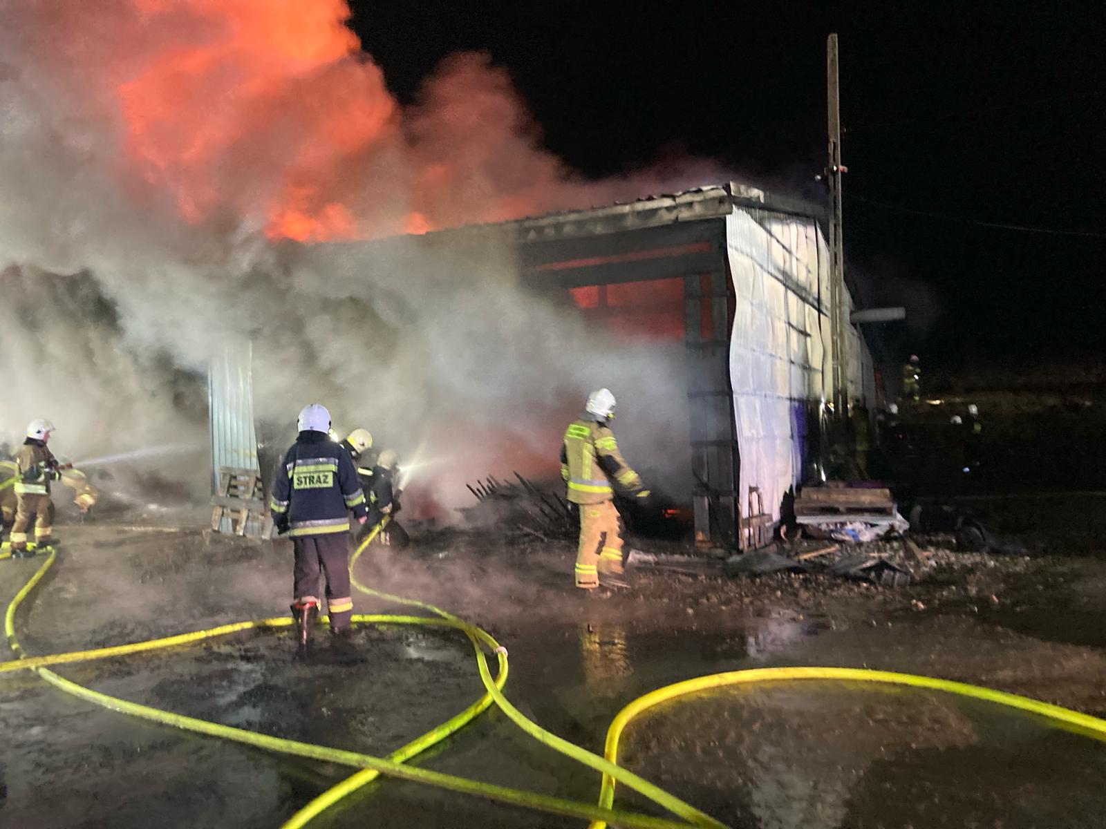 Po przyjeździe na miejsce pierwszych zastępów straż pożarna zastała budynek warsztatu stolarskiego całkowicie objęty ogniem, z widocznymi płomieniami wydobywającymi się na zewnątrz. Działania strażaków natychmiast skupiły się na opanowaniu pożaru, zabezpieczeniu miejsca zdarzenia oraz zapobieżeniu dalszego rozprzestrzeniania się ognia.