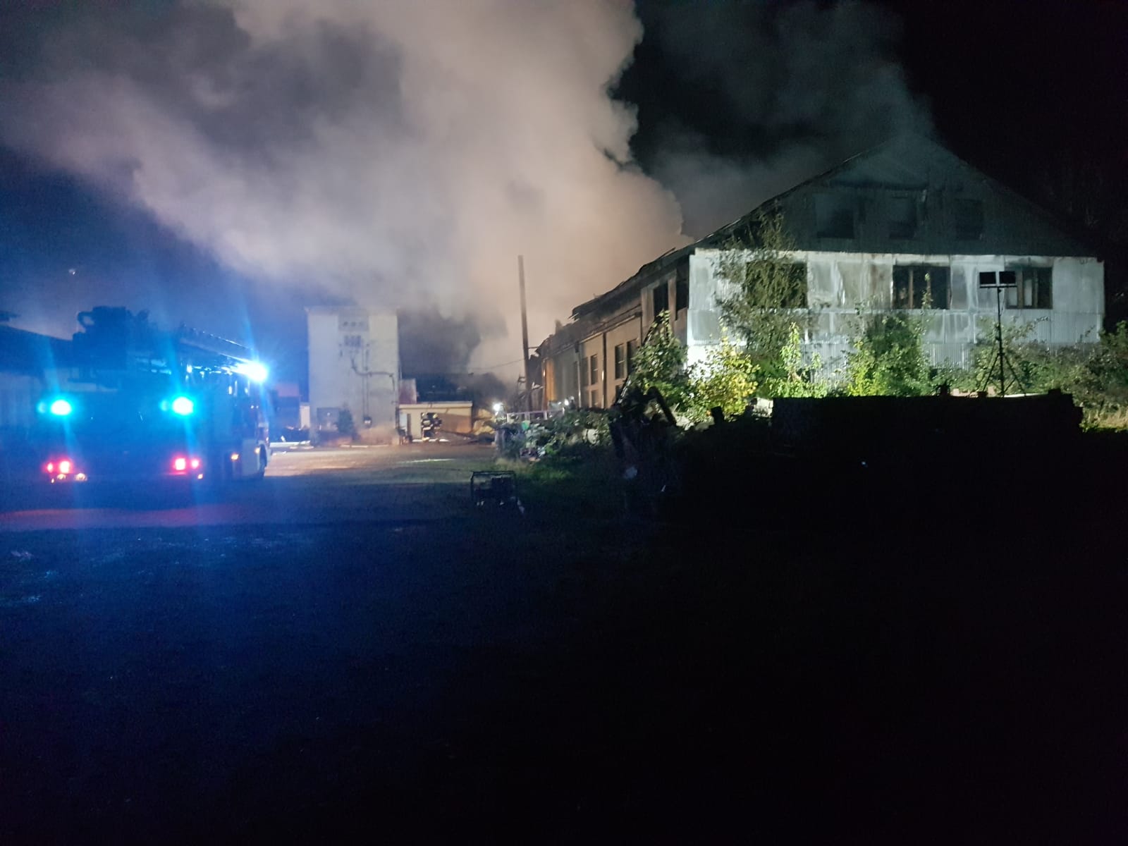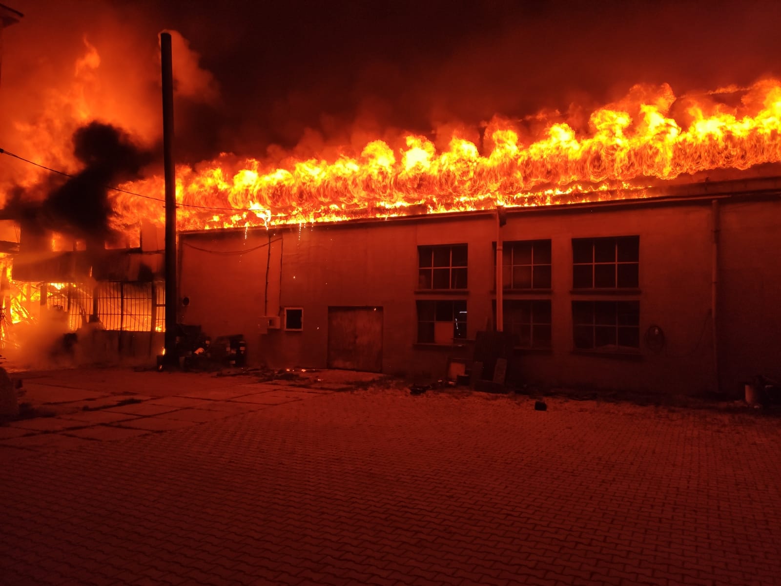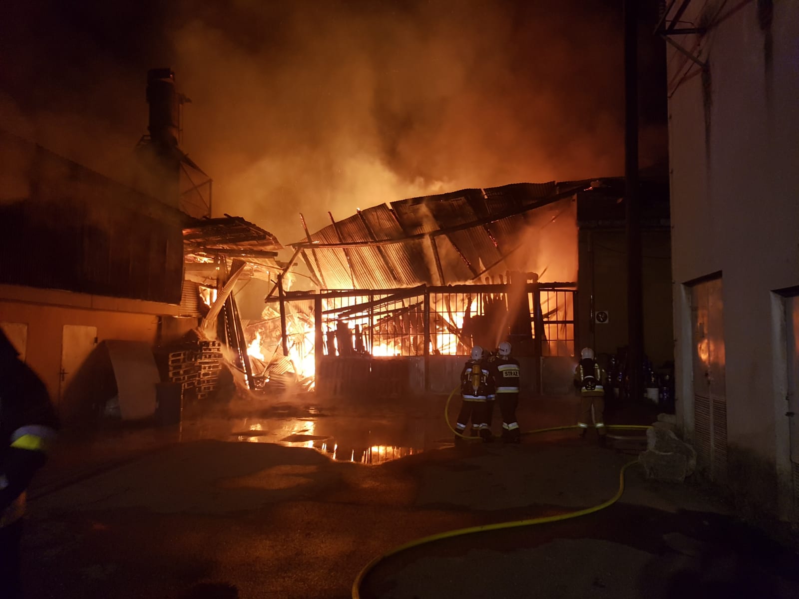 Po dojechaniu na miejsce strażacy zastali pożar budynku zakładu stolarskiego wraz z dwoma wiatami. Ogień wyszedł na zewnątrz i zagrażał dwóm samochodom zaparkowanym pod jedną z wiat oraz budynkowi mieszkalnemu. Na miejscu brak osób poszkodowanych, droga dojazdowa zamknięta bramą.