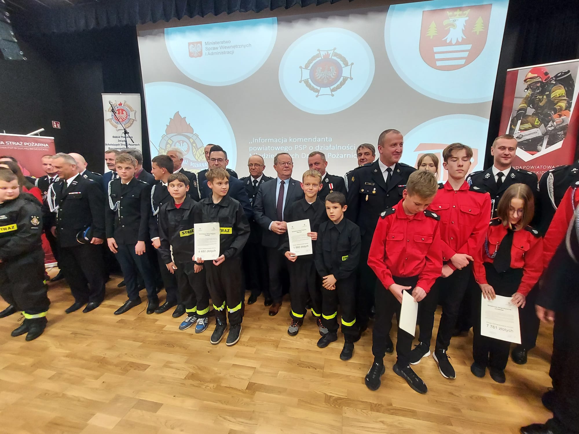 Podczas uroczystości Młodzieżowym Drużynom Pożarniczym Ochotniczych Straży Pożarnych z powiatu suskiego wręczono 35 promes na kwotę 158 461,00zł w ramach dotacji Ministerstwa Spraw Wewnętrzny i Administracji. Dotacja została podzielona proporcjonalnie do ilości członków MDP, w uzgodnieniu z Zarządem Oddziału Powiatowego ZOSP RP.