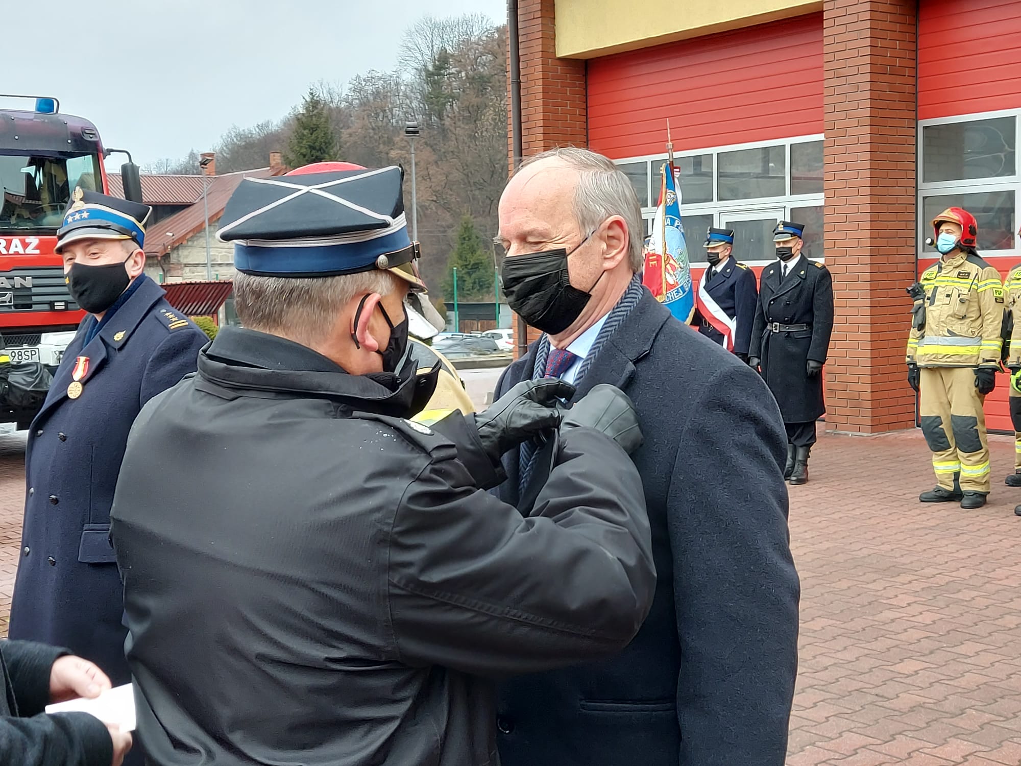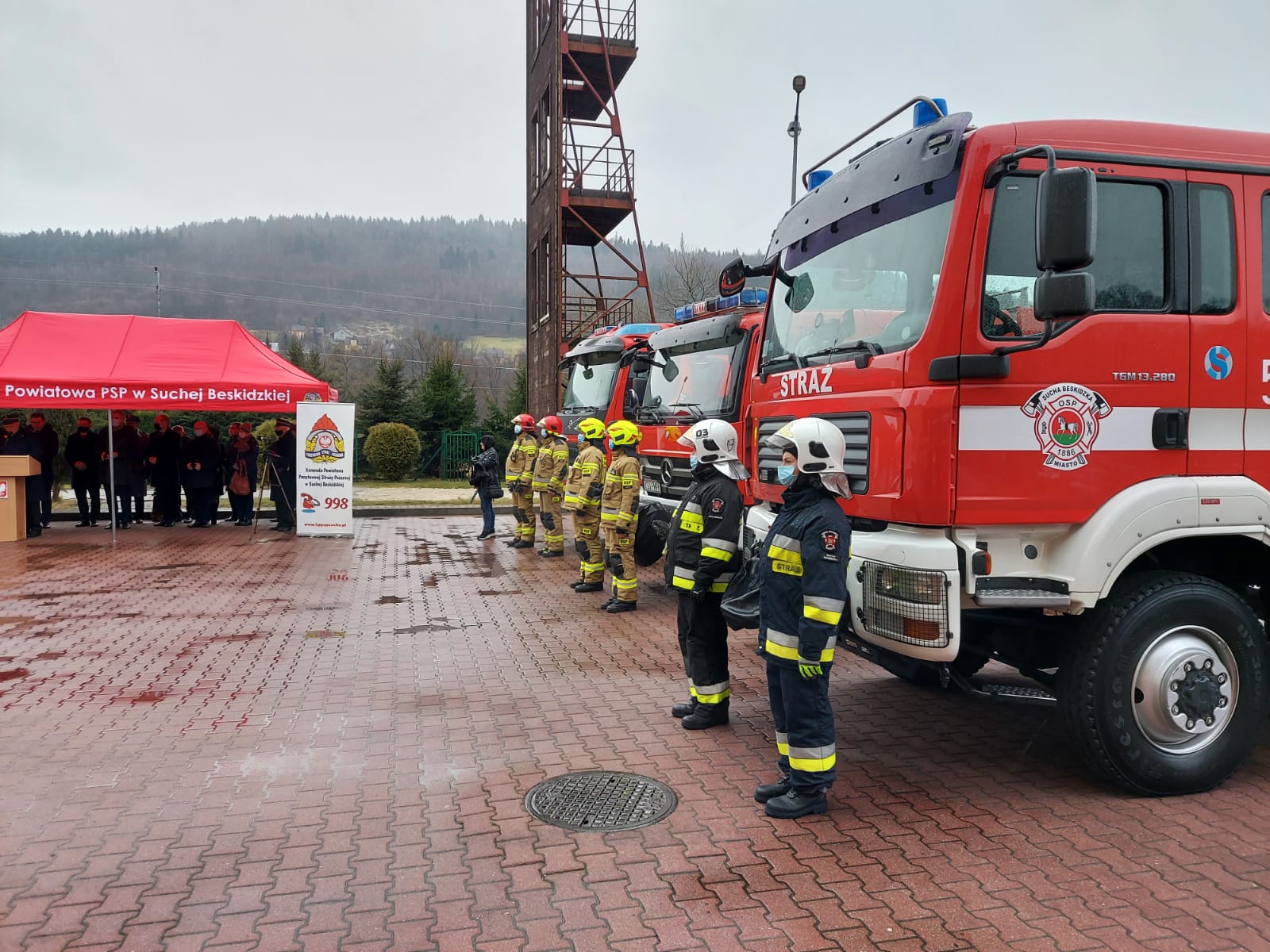 17 stycznia 2022r. o godzinie 9:00 odbył się uroczysty apel z okazji przekazania samochodów dla Państwowej Straży Pożarnej oraz Ochotniczych Straży Pożarnych. Meldunek o rozpoczęciu uroczystości przyjął Łukasz Kmita Wojewoda Małopolski w asyście st. bryg. Piotra Filipka – Małopolskiego Komendanta Państwowej Straży Pożarnej. W dalszej kolejności odbyło się podniesienie flagi państwowej oraz odegranie Hymnu. Komendant Powiatowy PSP w Suchej Beskidzkiej powitał gości przybyłych na uroczystość.