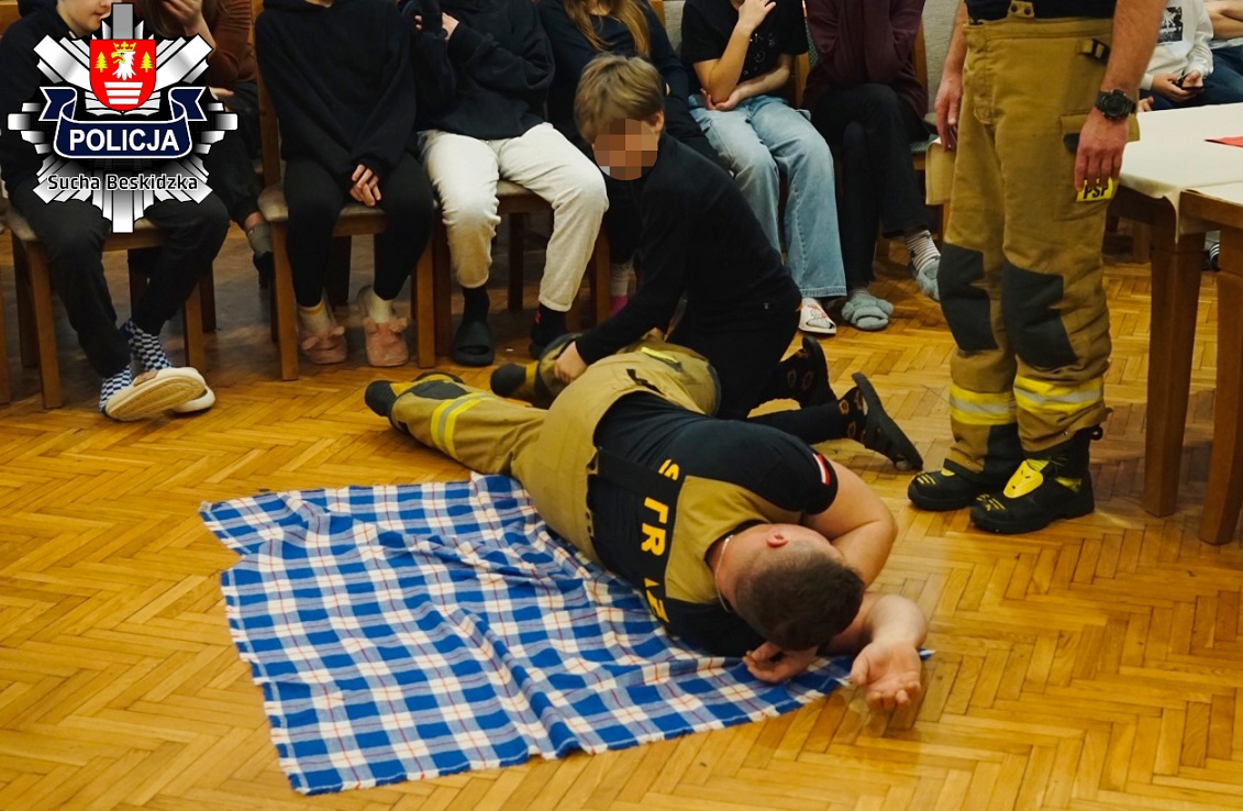W okresie ferii, kiedy wiele dzieci i młodzieży wybiera się na stoki narciarskie, strażacy i policjanci postanowili podzielić się swoją wiedzą. 16 stycznia mundurowi odwiedzili uczestników turnusu rekreacyjno-wypoczynkowego, który odbywał się w jednym z domów wczasowych w Zawoi. Podczas spotkania strażacy przeprowadzili praktyczne zajęcia związane z pierwszą pomocą, ucząc młodych ludzi postępowania w sytuacjach nagłych. Dodatkowo, podkreślali znaczenie przestrzegania zasad bezpieczeństwa na stoku, takich jak noszenie kasku ochronnego, kontrola prędkości i prawidłowy sposób jazdy. Każdy z uczestników otrzymał także ulotki oraz został zachęcony do udziału w konkursie plastyczno-filmowym pt. "Śnieżny Dekalog".
