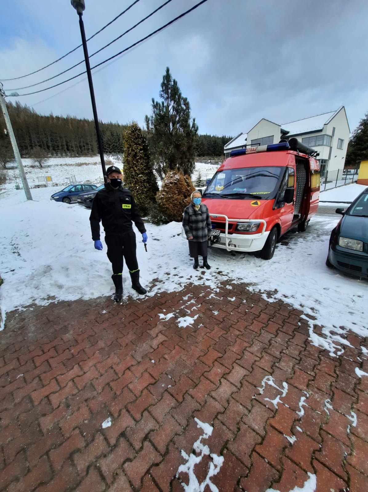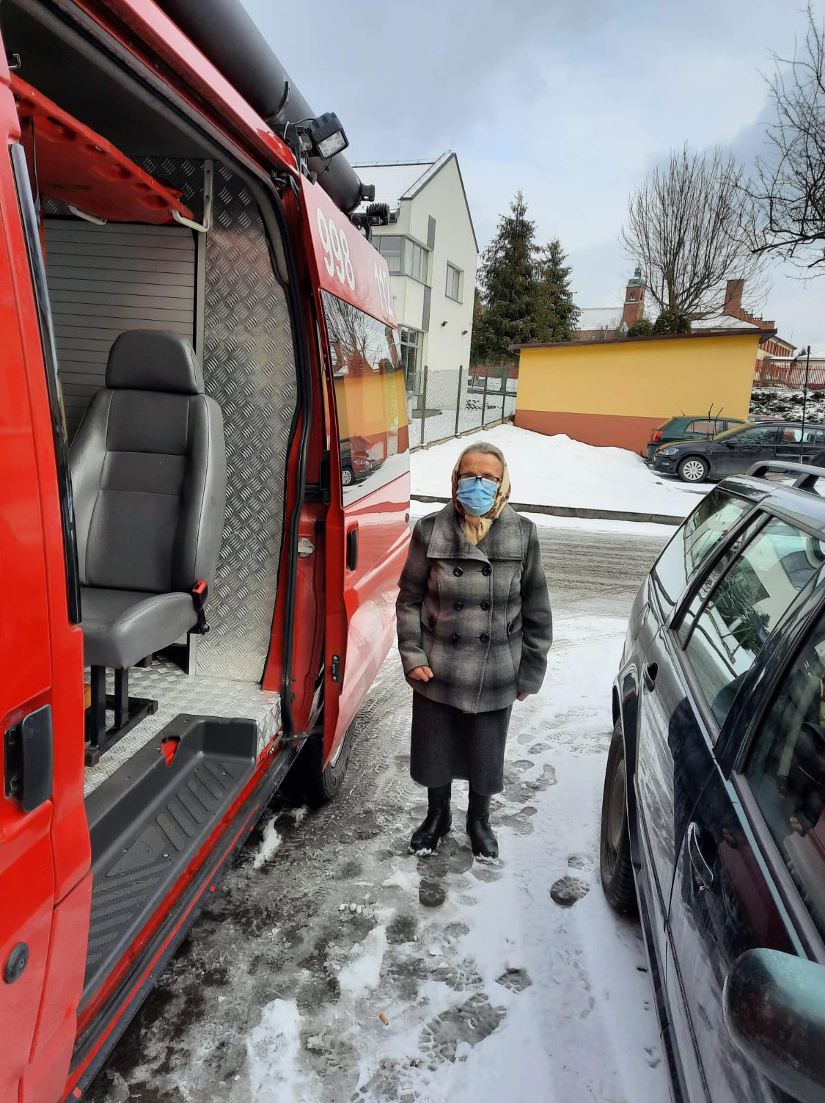 Strażacy transportują seniorów na szczepienie przeciwko SARS-COV-2