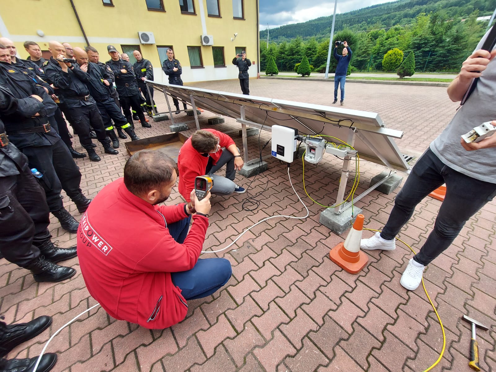 Dziękujemy Starostwu Powiatowemu w Suchej Beskidzkiej oraz wykonawcy zadania inwestycyjnego za ciekawie przeprowadzone zajęcia oraz bezinteresowną pomoc w zgłębieniu tematu zagrożeń, które mogą się pojawić podczas zdarzeń ratowniczo-gaśniczych z udziałem instalacji fotowoltaicznych.