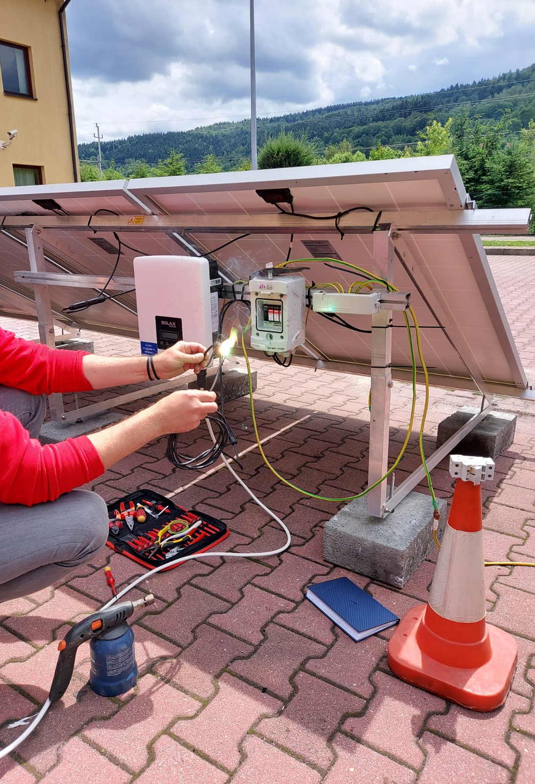 Szkolenie składało się z części teoretycznej i praktycznej. W części teoretycznej szkolenia omówiono zagadnienia związane z bezpieczeństwem prowadzonych akcji ratowniczo – gaśniczych, omówiono zasadę działania instalacji fotowoltaicznych oraz metody ich gaszenia. Natomiast podczas części praktycznej dokonano prezentacji zagrożeń związanych z łukiem elektrycznym i zachowaniem się instalacji fotowoltaicznej podczas pożaru. Dodatkowo wykonawczy wskazali najczęstsze błędy podczas montażu instalacji fotowoltaicznej, które mogą przyczynić się do powstania pożaru.
